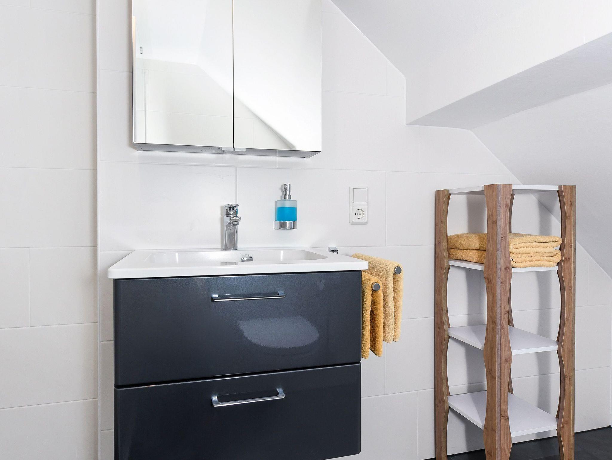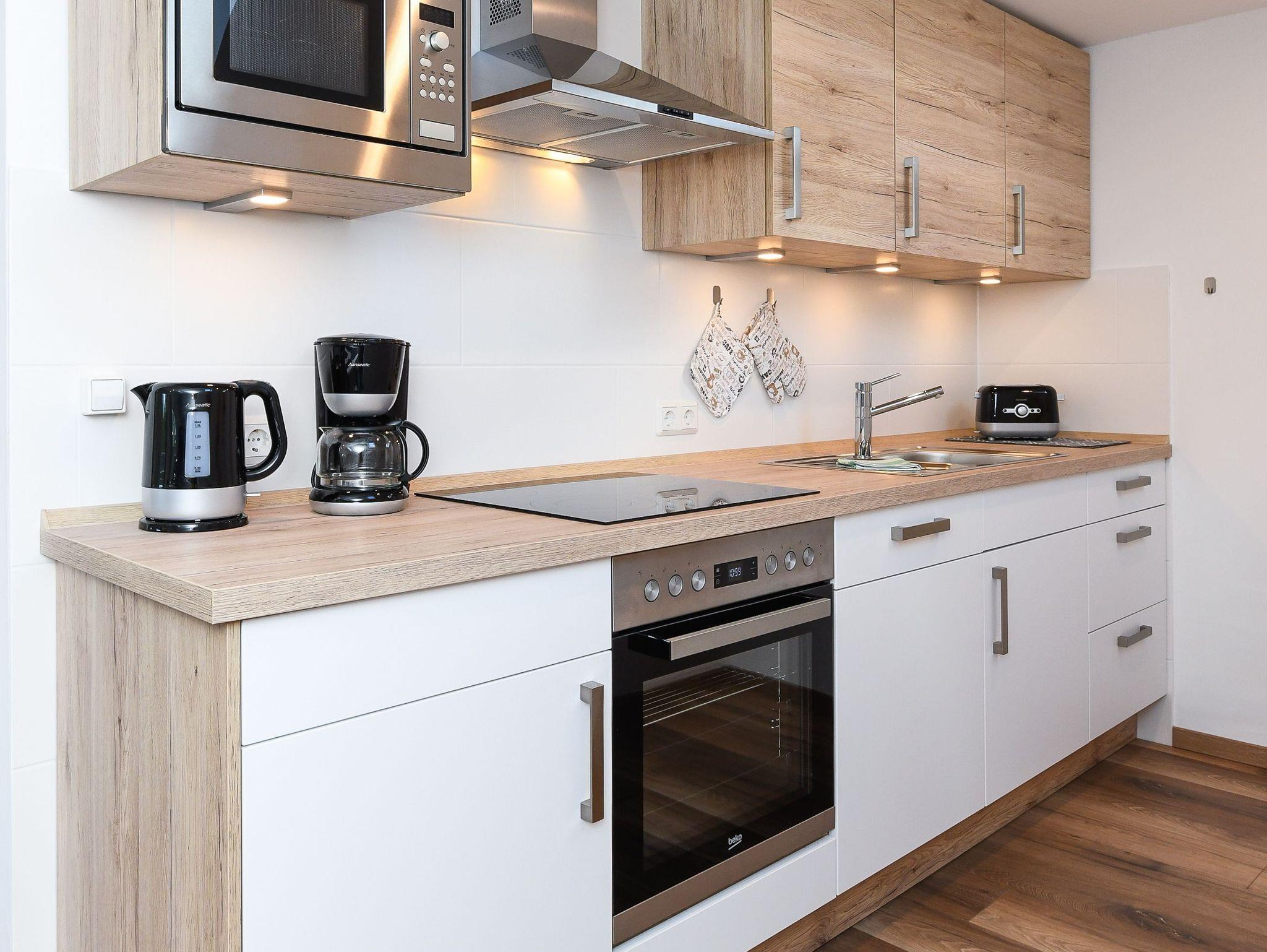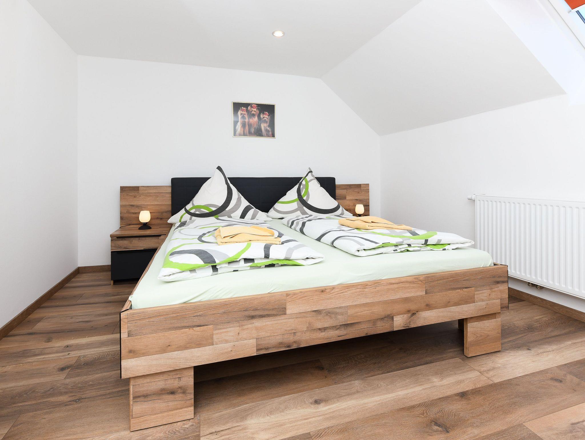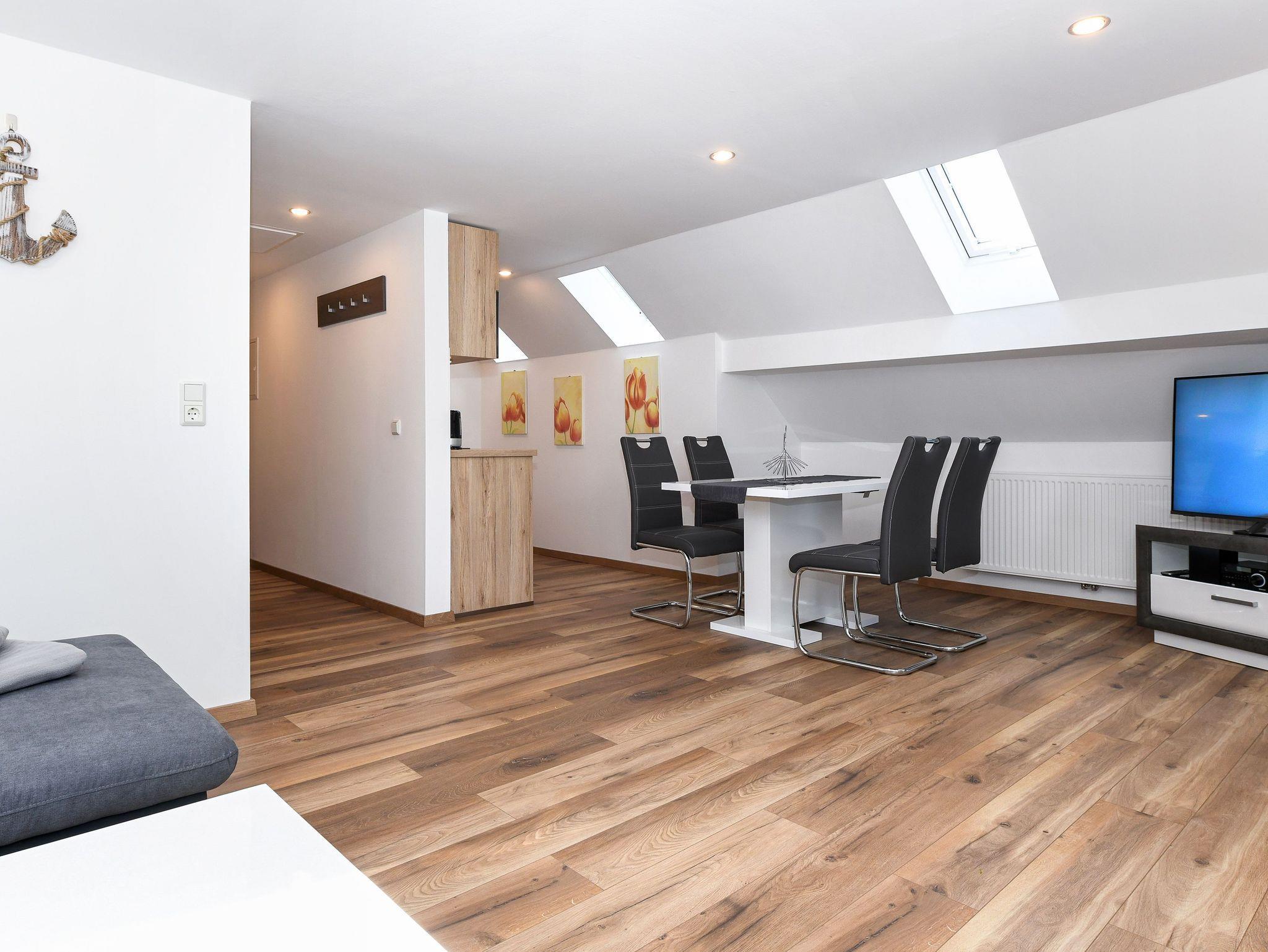 Größe ca. 55 Quadratmeter, Wohnraum mit integrierter Küche, Schlafzimmer, Badezimmer mit Dusche, Waschtisch und WC, Obergeschoss, Terrasse am Haus, optimal für 1 bis 2 Personen und zusätzlich ein Kleinkind.