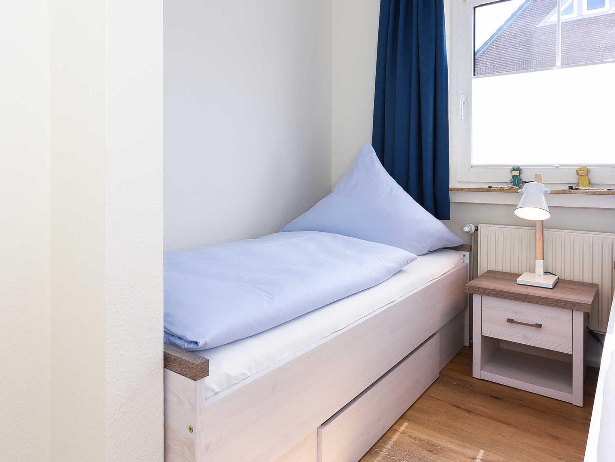 Die Schlafzimmer lassen sich mit Verdunkelungsgardinen abdunkeln.