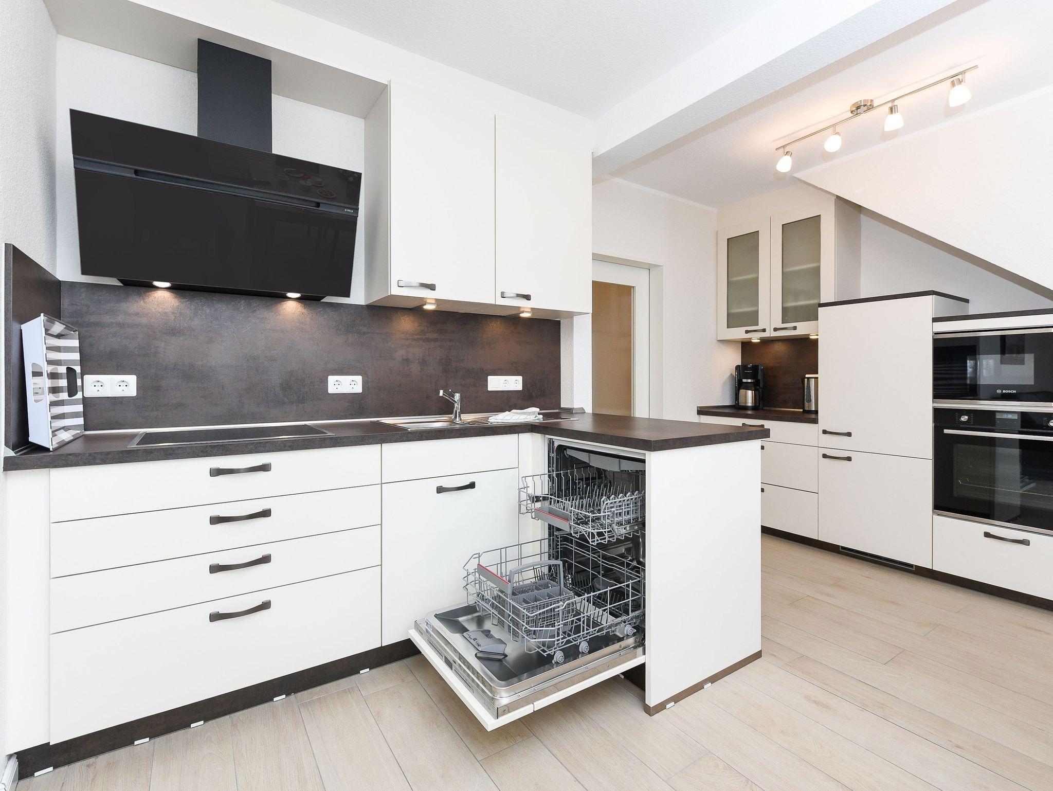 Alle vier Wohnungen haben entweder eine Terrasse oder einen Balkon. Ein Garten steht Ihnen ebenfalls zur Verfügung. Natürlich gibt es in allen Wohnungen voll ausgerüstete moderne Einbauküchen und alles, was man überhaupt im Urlaub benötigen könnte. Jede Wohnung verfügt über eine Mikrowelle, Geschirrspüler sind vorhanden und Waschmaschine sowie Wäschetrockner stehen für Sie in unserem separaten Waschhaus im Bootsweg 12, „Haus Pamir“, zur Verfügung.