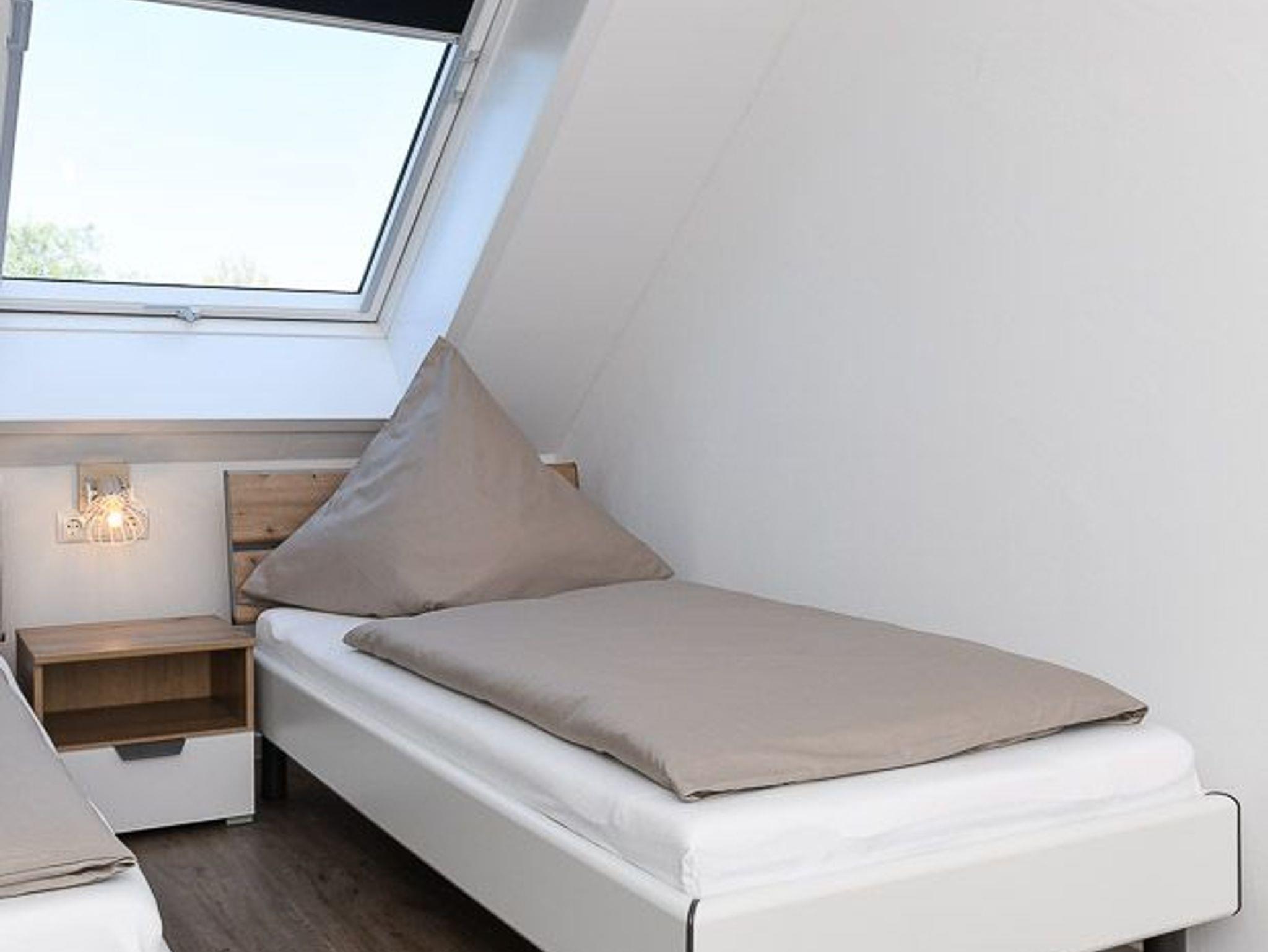 Größe ca. 64 Quadratmeter. Wohnraum mit integrierter Küche. Schlafzimmer, zweites separates Schlafzimmer/Kinderzimmer, Badezimmer mit Dusche, Waschtisch und WC, Obergeschoss, optimal für 2 bis 4 Personen.