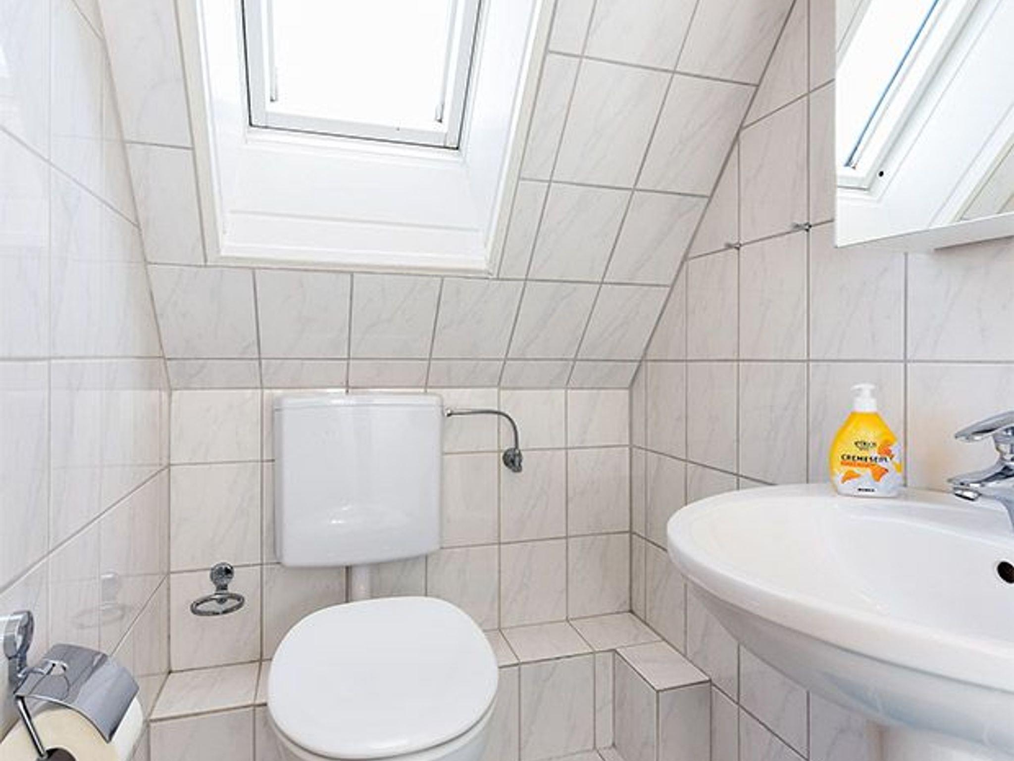 Größe ca. 30 Quadratmeter, Wohnraum mit integrierter Küche, Schlafzimmer, Badezimmer mit Dusche, Waschtisch und WC, Obergeschoss, optimal für 1 bis 2 Personen.