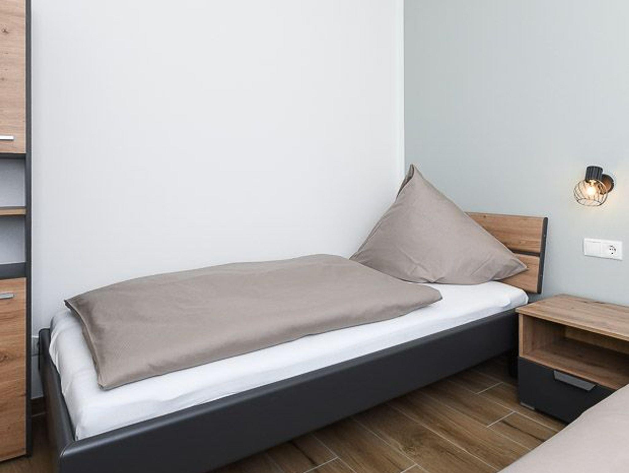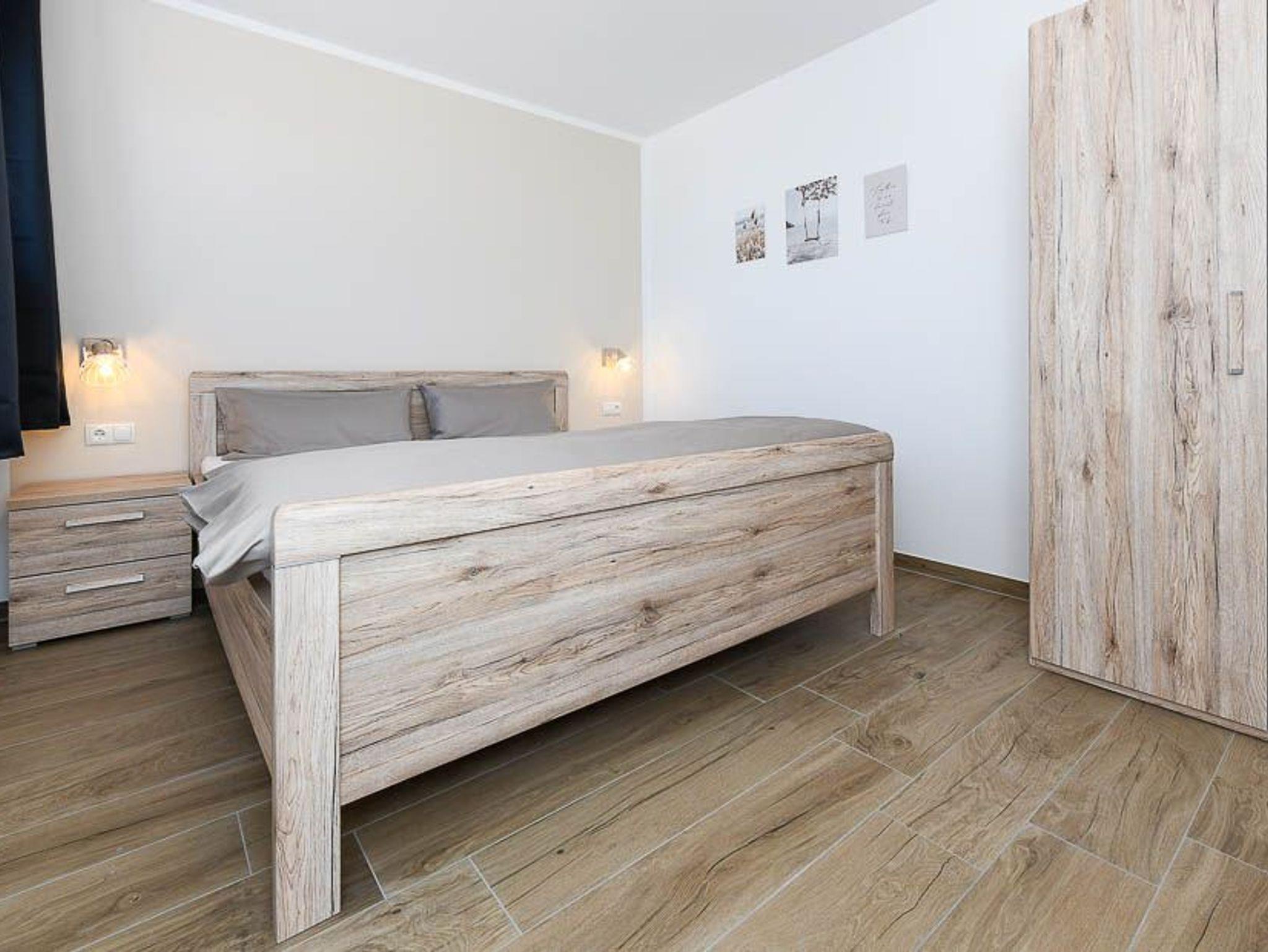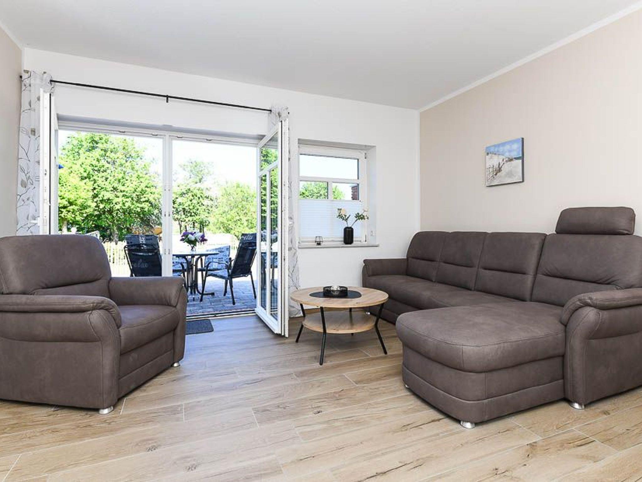 Größe ca. 60 Quadratmeter, Wohnraum mit integrierter Küche, Schlafzimmer, zweites separates Schlafzimmer/Kinderzimmer, Badezimmer mit Badewanne, Dusche, Waschtisch und WC, Erdgeschoss, Terrasse, optimal für 2 bis 4 Personen.