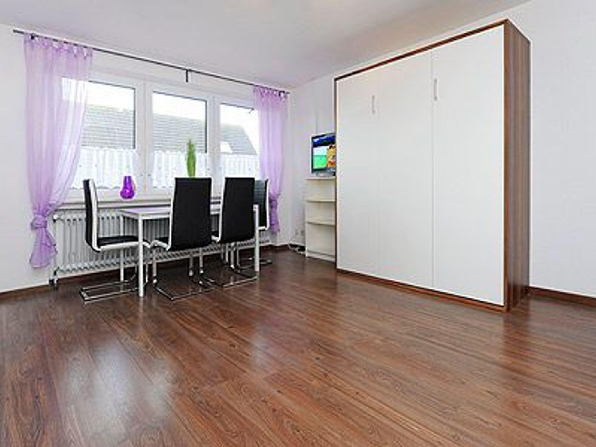 Größe ca. 42 Quadratmeter, Wohn- und Schlafraum mit integriertem Küchenbereich, zweites separates Schlafzimmer/Kinderzimmer, Badezimmer mit Dusche, Waschtisch und WC, Obergeschoss, Balkon, Internetzugang über WLAN möglich, optimal für 2 bis 4 Personen.