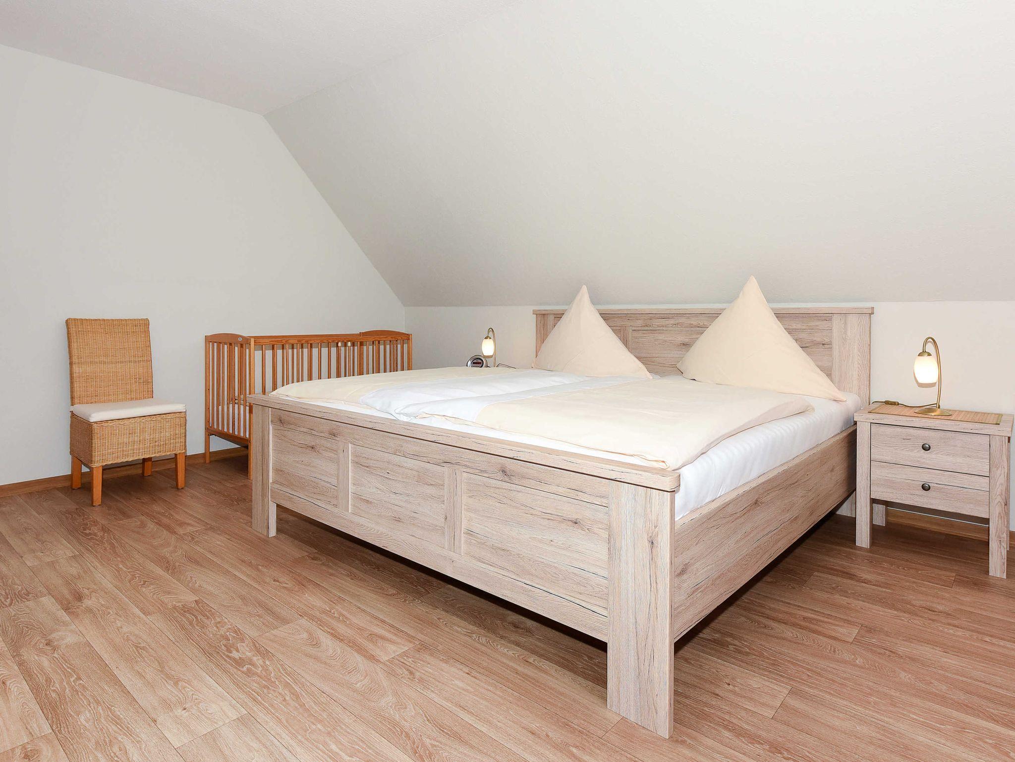 Größe ca. 65 Quadratmeter, Wohnraum mit integrierter Küche, Schlafzimmer, zweites separates Schlafzimmer/Kinderzimmer, Badezimmer mit Dusche, Waschtisch und WC, Obergeschoss, optimal für 2 bis 4 Personen und zusätzlich ein Kleinkind.