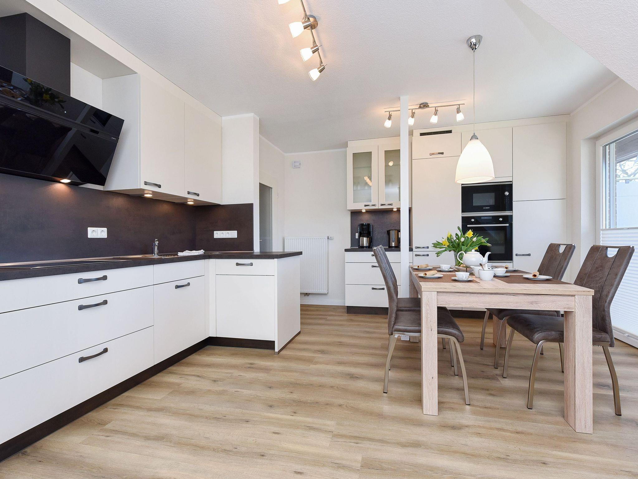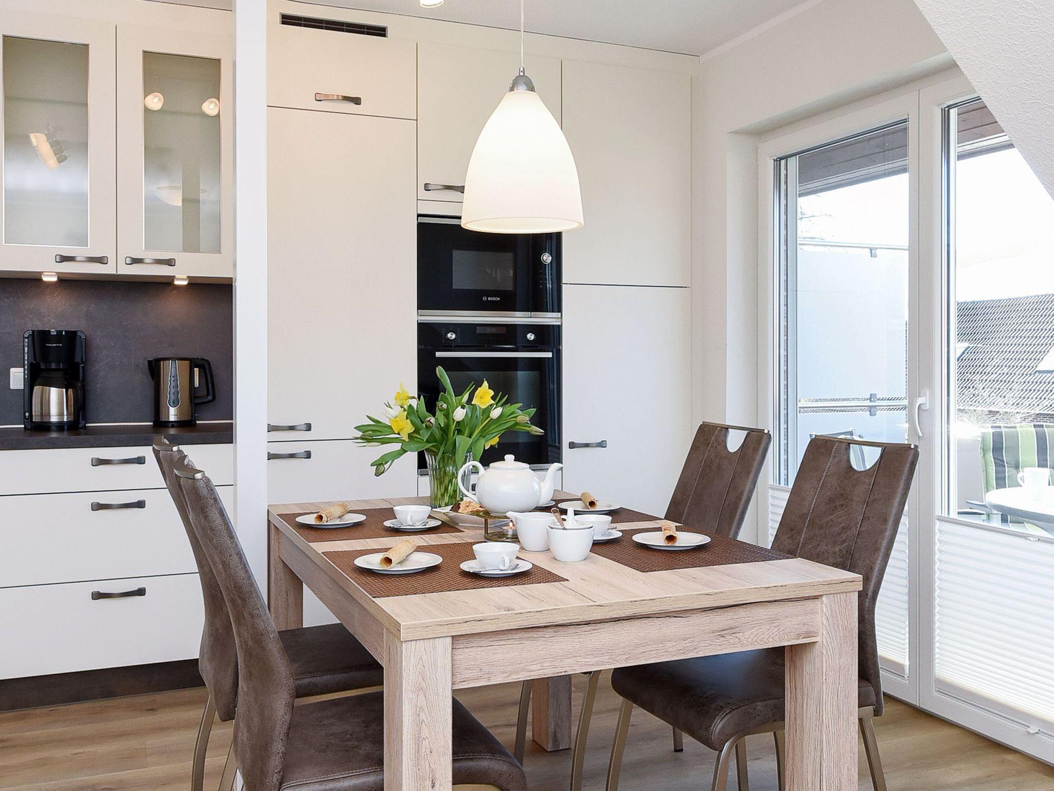 Alle vier Wohnungen haben entweder eine Terrasse oder einen Balkon. Ein Garten steht Ihnen ebenfalls zur Verfügung. Natürlich gibt es in allen Wohnungen voll ausgerüstete moderne Einbauküchen und alles, was man überhaupt im Urlaub benötigen könnte. Jede Wohnung verfügt über eine Mikrowelle, Geschirrspüler sind vorhanden und Waschmaschine sowie Wäschetrockner stehen für Sie in unserem separaten Waschhaus im Bootsweg 12, „Haus Pamir“, zur Verfügung.