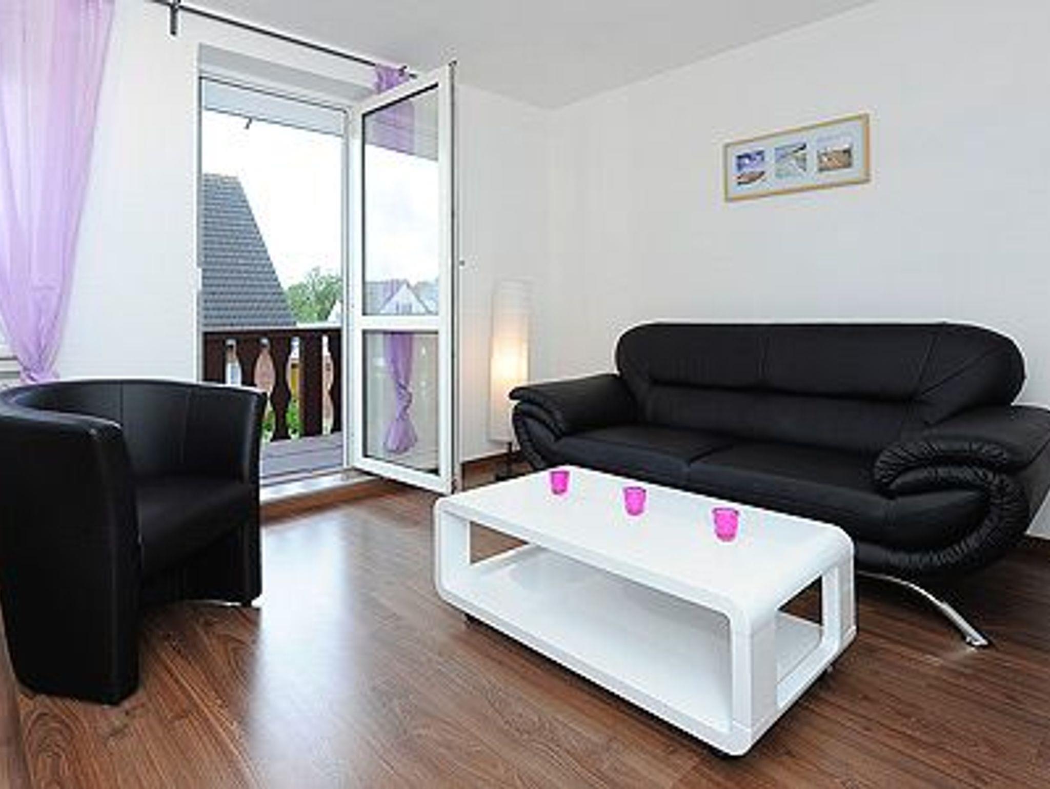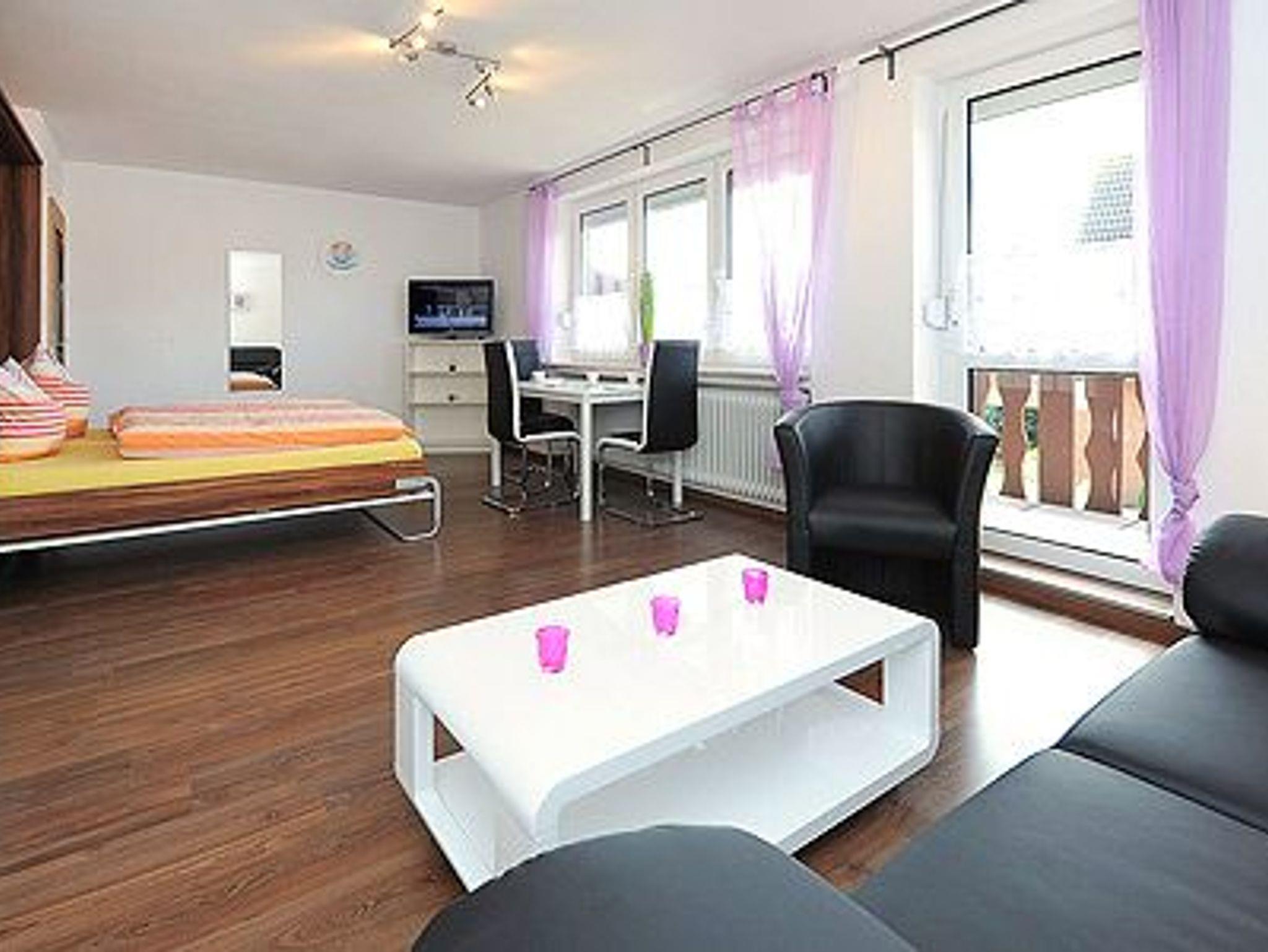 Größe ca. 40 Quadratmeter, Wohn- und Schlafraum mit räumlich abgeteiltem Küchenbereich, Badezimmer mit Dusche, Waschtisch und WC, Obergeschoss, Balkon, Internetzugang über WLAN möglich, optimal für 2 Personen.