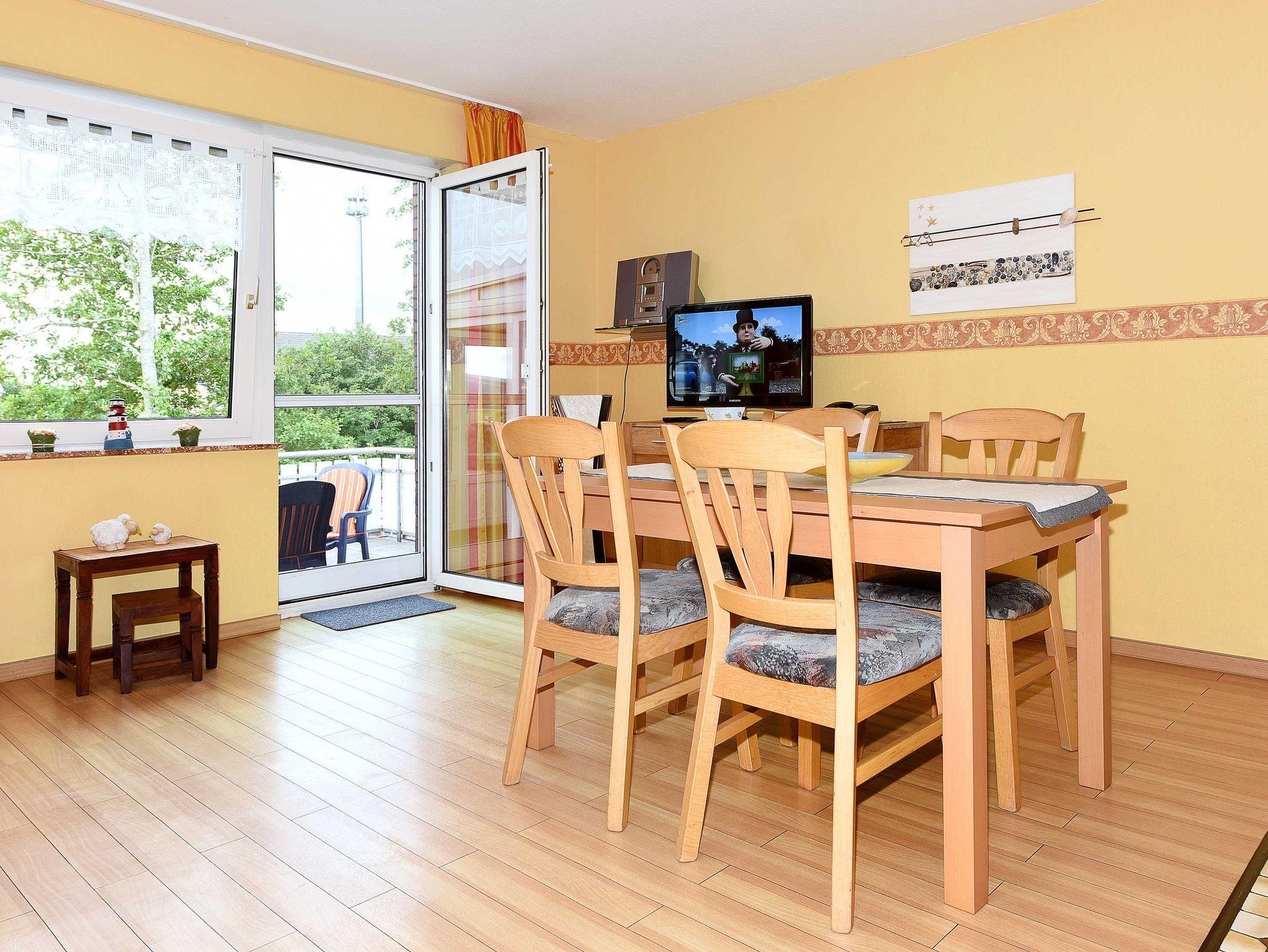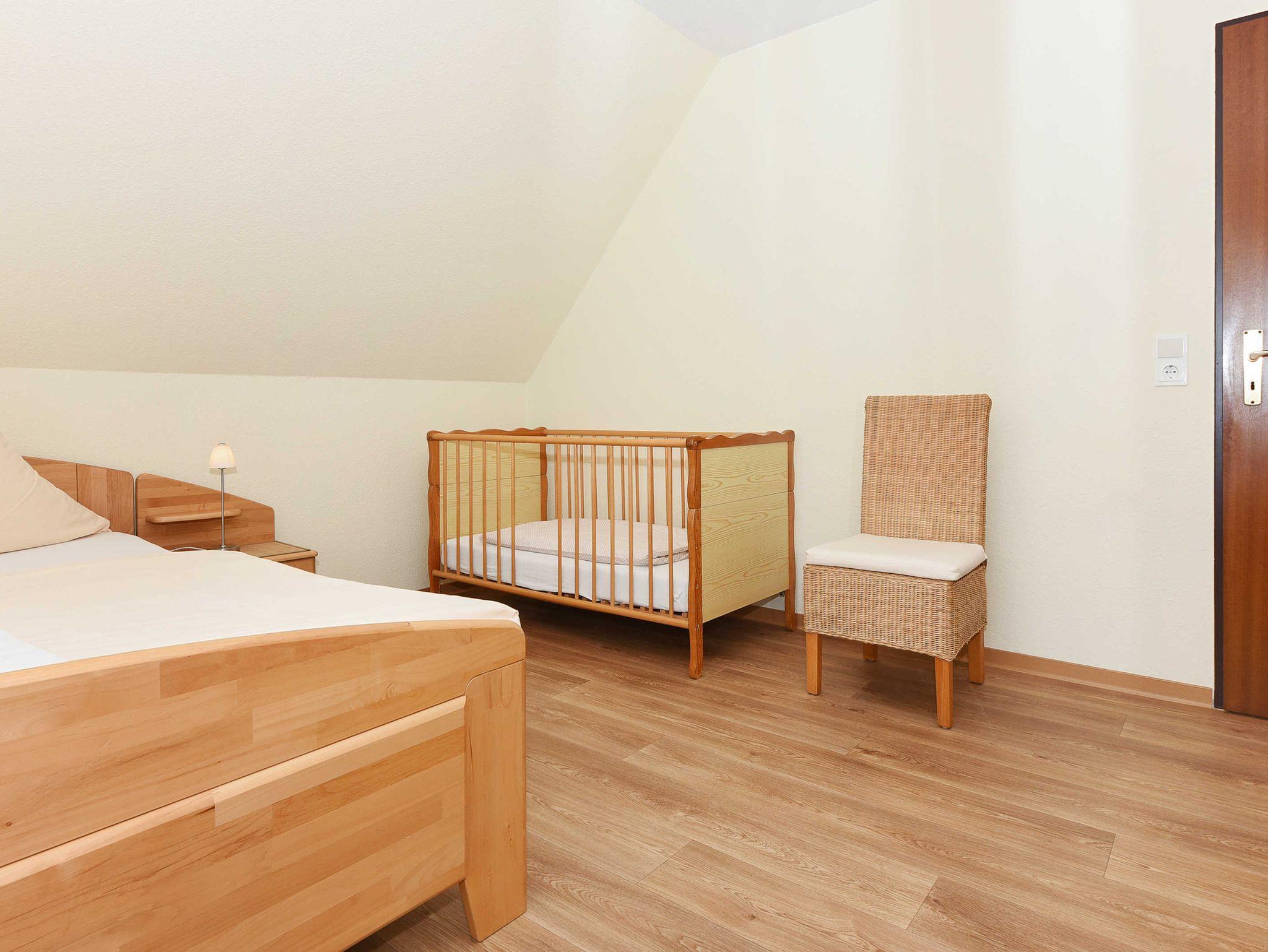 Größe ca. 65 Quadratmeter, Wohnraum mit integrierter Küche, Schlafzimmer, zweites separates Schlafzimmer/Kinderzimmer, Badezimmer mit Dusche, Waschtisch und WC, Obergeschoss, Balkon, optimal für 2 bis 4 Personen und zusätzlich ein Kleinkind.