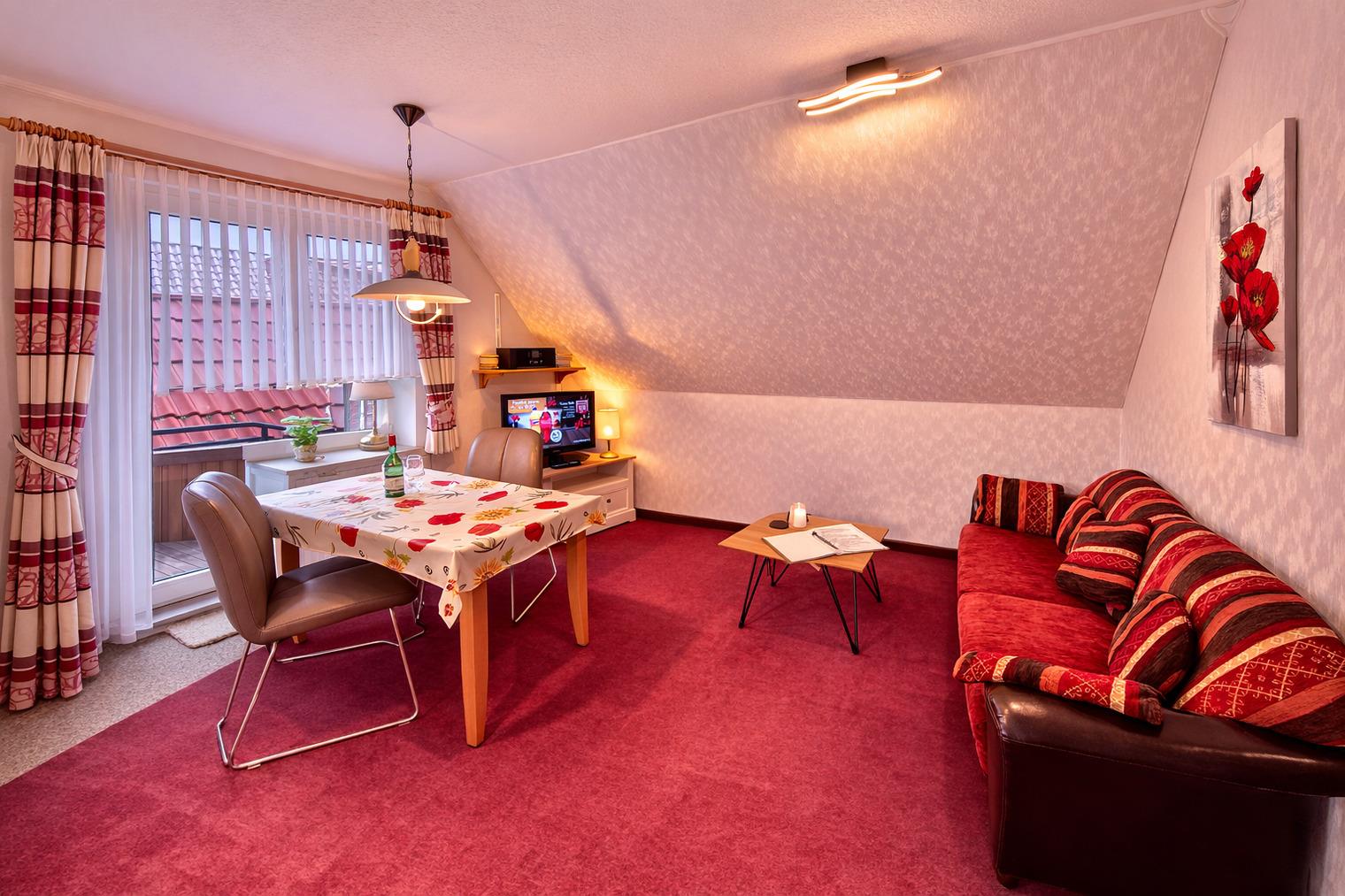 Willkommen in der gemütlichen Ferienwohnung Süd im Haus Delphin! Auf 43 Quadratmetern erwartet Sie im ersten Stock ein behagliches Zuhause für zwei Personen.
