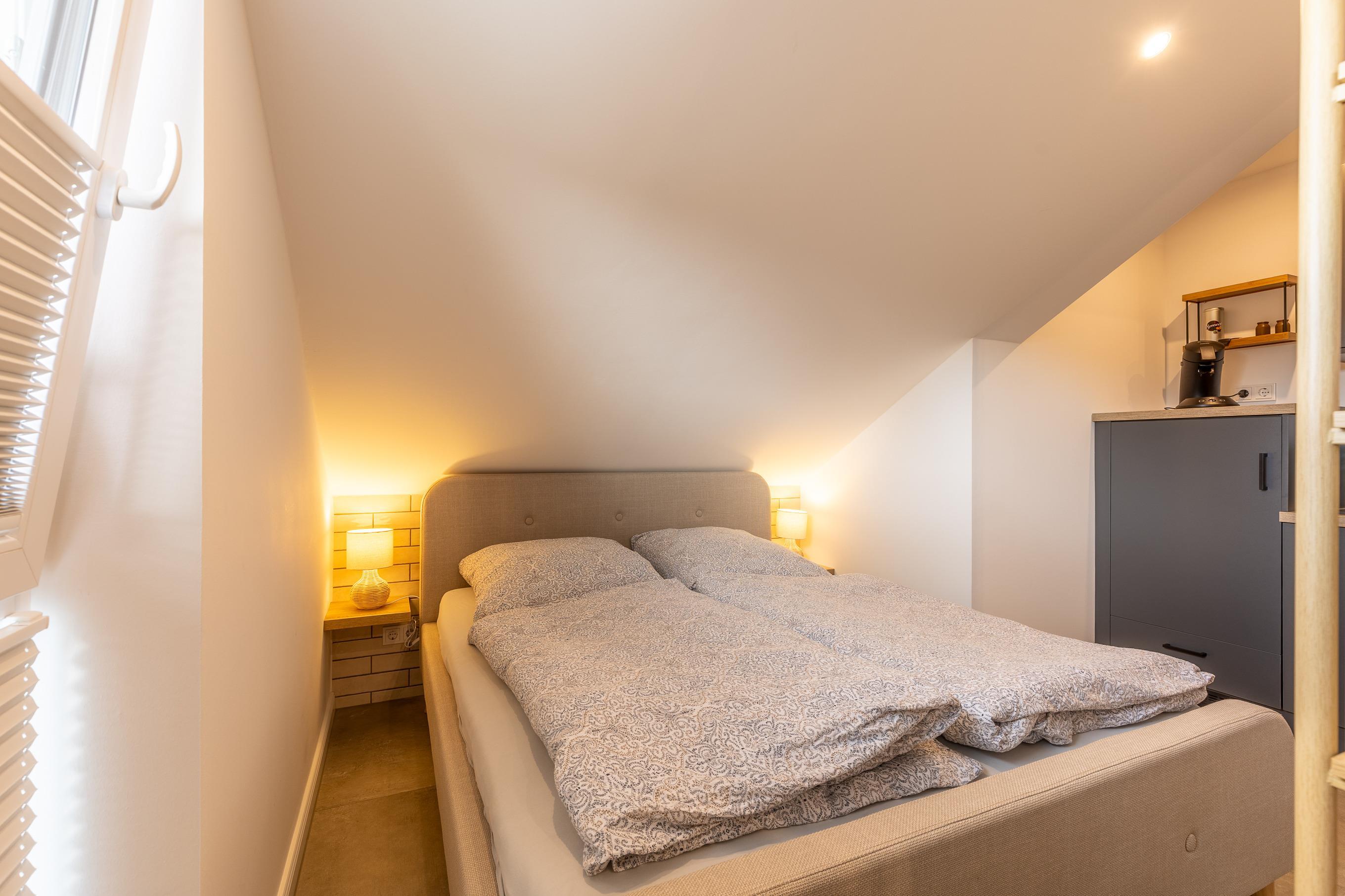 Das Schlafzimmer bietet Ihnen einen ruhigen Rückzugsort für erholsame Nächte. Hochwertige Matratzen und weiche Kissen sorgen für einen tiefen, erholsamen Schlaf - damit Sie am nächsten Morgen voller Energie in einen neuen Urlaubstag starten.