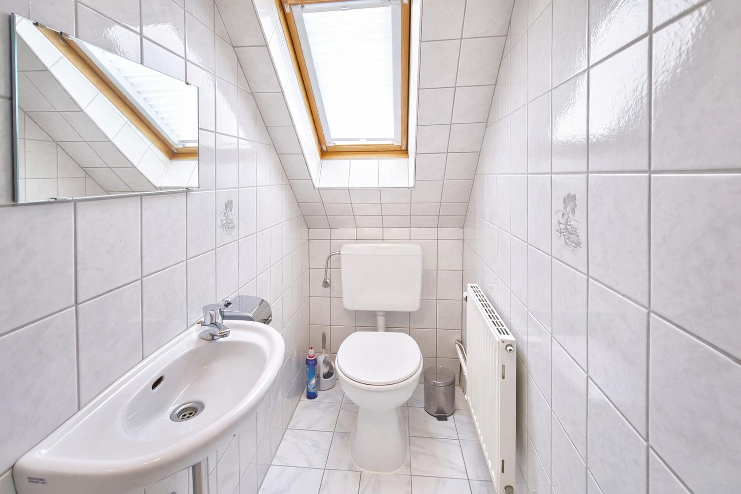 Im Obergeschoss gelegen, empfängt Sie ein heller Wohnraum mit integrierter, voll ausgestatteter Küche – perfekt für gemeinsame Kochabende. Ein liebevoll eingerichtetes Schlafzimmer sowie ein separates kleines Schlafzimmer/Kinderzimmer sorgen für erholsame Nächte. Das moderne Badezimmer verfügt über eine Dusche und einen Waschtisch, ein zusätzliches WC rundet den Komfort ab.