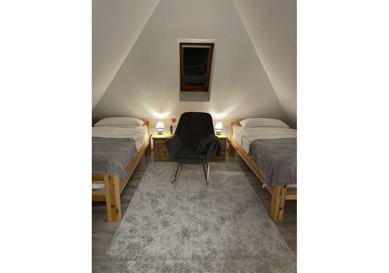 Zwei Zimmer (je ca. 20 m²) mit je 2 Einzelbetten (100 × 200 cm), orthopädischen Matratzen und Memory-Schaum-Kissen