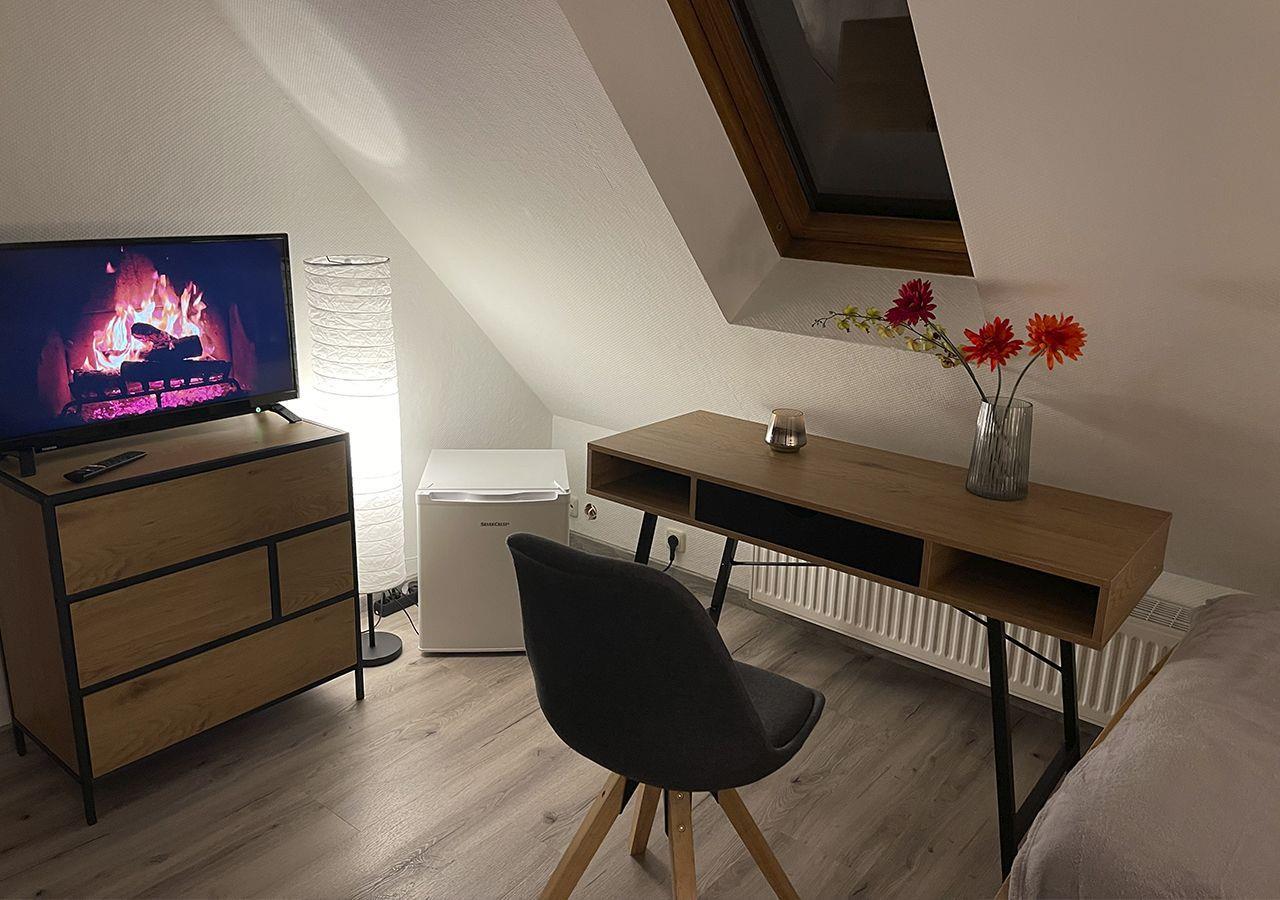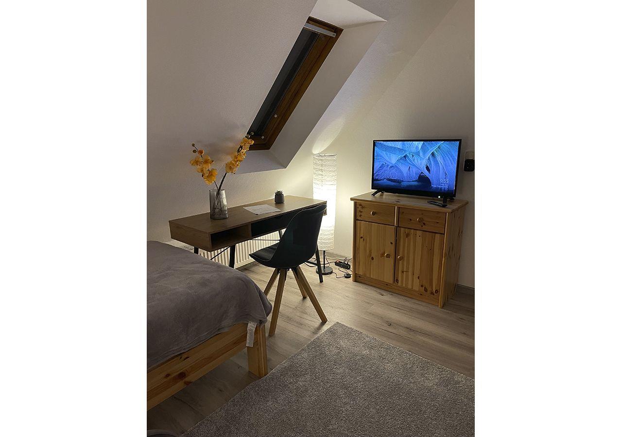 Jedes Zimmer mit Schreibtisch und TV