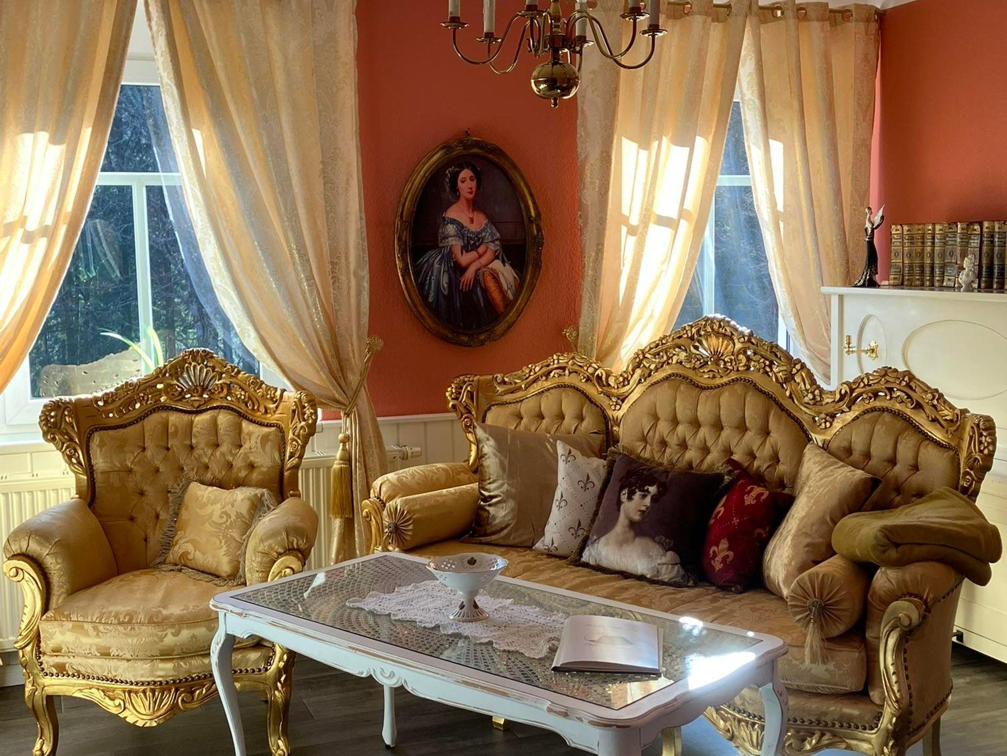 Highlights: Klavier, italienische Barockmöbel, Elektrokamin, traumhafter Blick aus Erkerfenstern