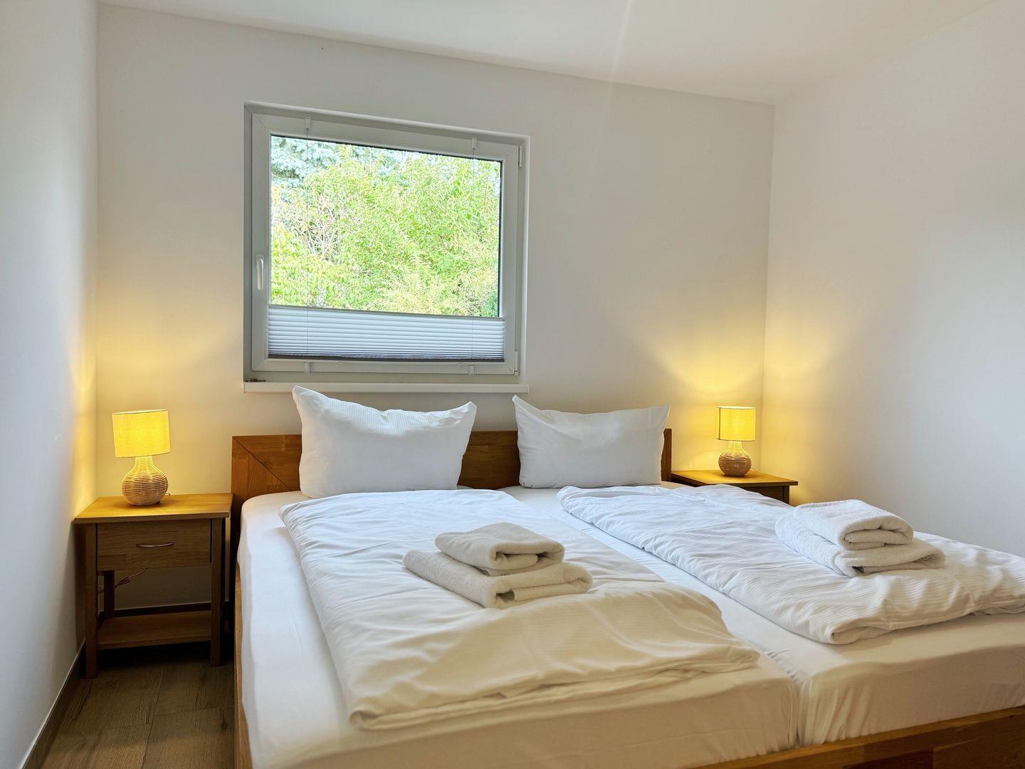 "Min Hütt II" befindet sich direkt neben dem reetgedeckten Ferienhaus auf dem gleichen Grundstück und ist ein ca. 55 qm großer Bungalow. Dieser unterteilt sich in 2 separate Schlafzimmer mit jeweils einem Doppelbett, einen Wohn- und Essbereich mit Sitzgelegenheit, Esstisch und Flachbildfernseher, eine kleine Kochnische mit Kühlschrank, 2-Plattenherd, Badezimmer mit Dusche und Toilette.