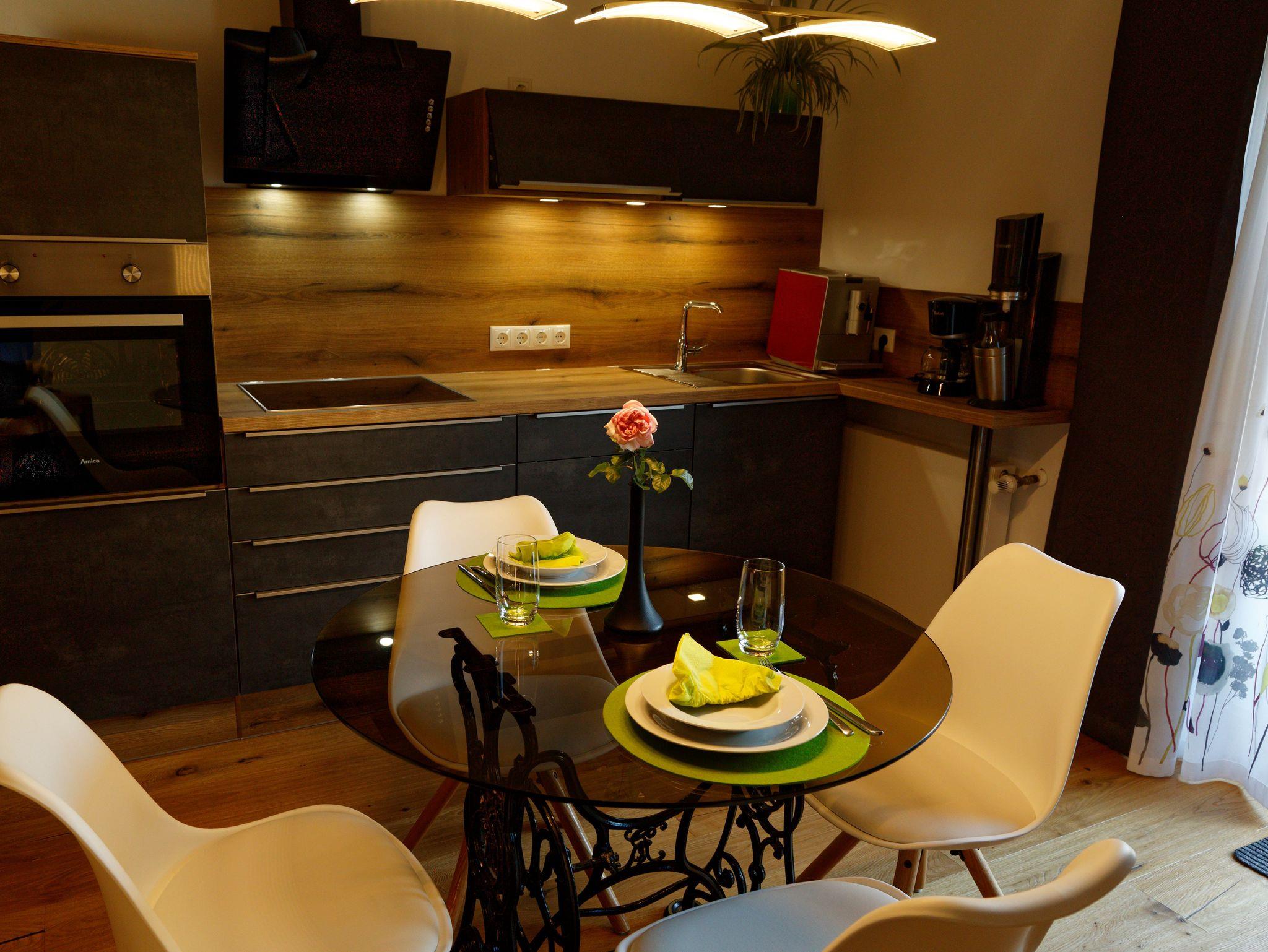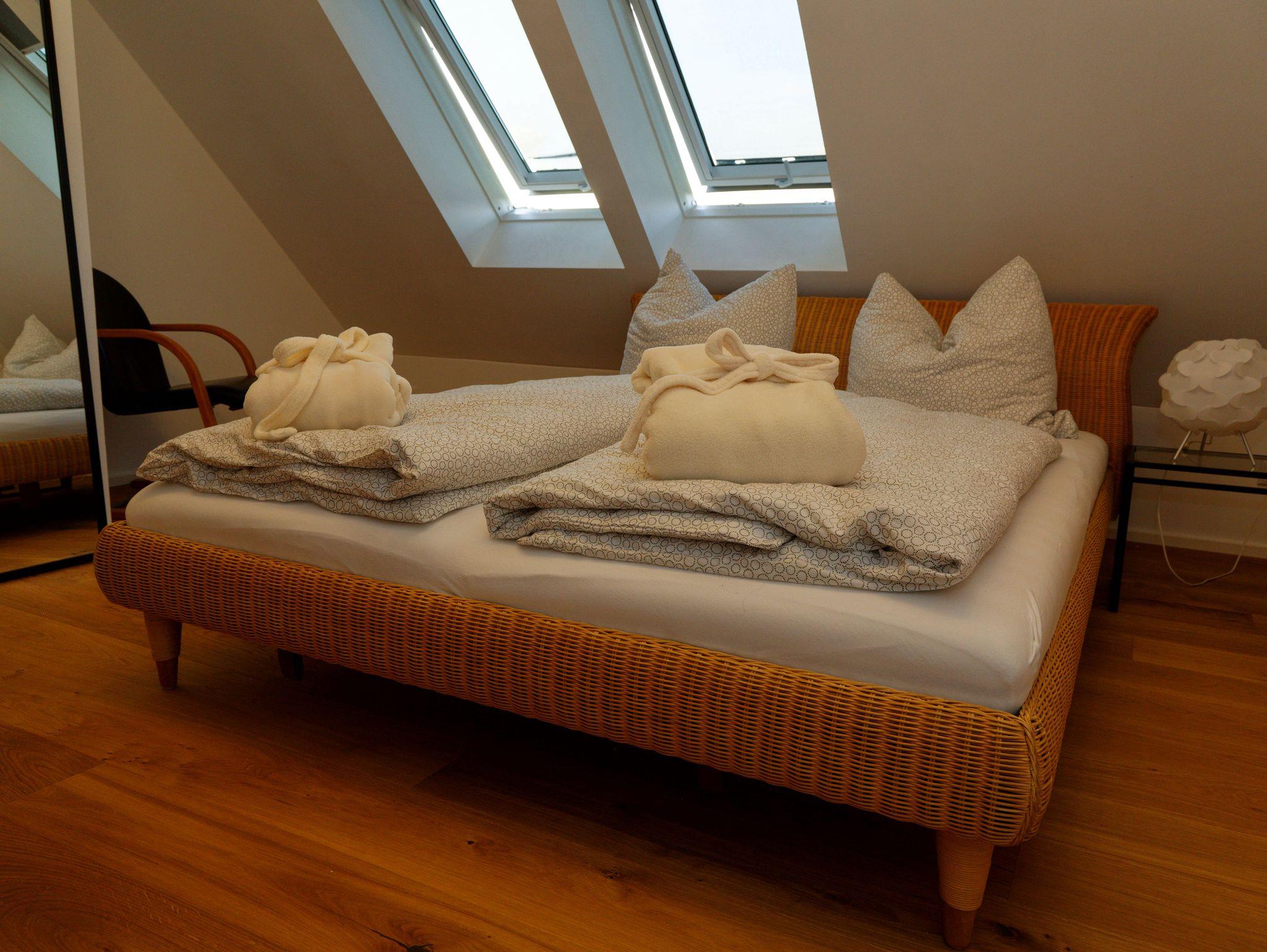 Die 55 m2 große Wohnung befindet sich im ersten Obergeschoss unseres Hauses. Sie bietet Platz für 2 Personen und alles, was Sie für einen entspannten Urlaub benötigen. Es erwartet Sie eine moderne, voll eingerichtete Küchenzeile mit Backofen, Mikrowelle, Toaster, Spülmaschine, Kaffeemaschine und Kühlschrank mit 3* Gefrierfach.