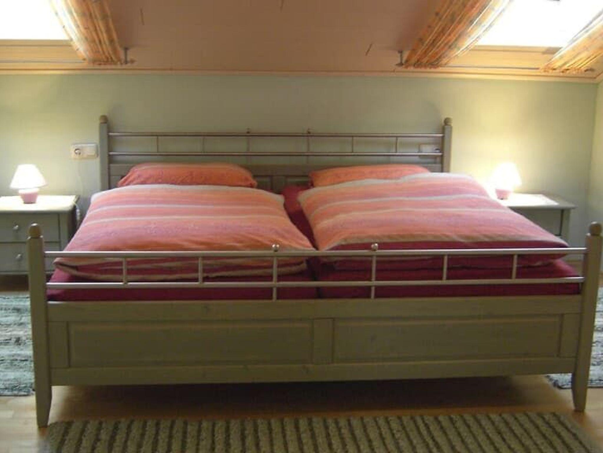 Ferienwohnung mit gemütlichem Ambiente und tollem Blick auf den Kolmstein. Die Ferienwohnung verfügt über einen großen Balkon mit Gartenmöbeln. Hier können Sie Ihren Tag beginnen oder ausklingen lassen. Die Wohnung verfügt über 2 Schlafzimmer. Ein Schlafzimmer ist mit einem Doppelbett ausgestattet. Das zweite Schlafzimmer ist mit einem Doppelbett und einem Einzelbett ausgestattet. Außerdem verfügt die Wohnung über einen kombinierten Wohn- und Essbereich. Hier finden Sie einen großen Esstisch mit Eckbank und drei Stühlen vor. Die Küche ist komplett ausgestattet (Herd, Backofen, Mikrowelle, Spülmaschine, Kühschrank mit Gefrierfach, Kaffeemaschine, Toaster, Wasserkocher, Geschirr, Besteck, Eierkocher, Küchenwäsche und viele weitere Küchenutensilien). Das Badezimmer ist mit Wanne, Dusche, Haartrockner und WC ausgestattet. Handtücher liegen bereit und die Betten sind bei Anreise bezogen. Das Parken ist kostenfrei vor dem Haus möglich. Die Nutzung des WLANs ist im Preis inklusive.