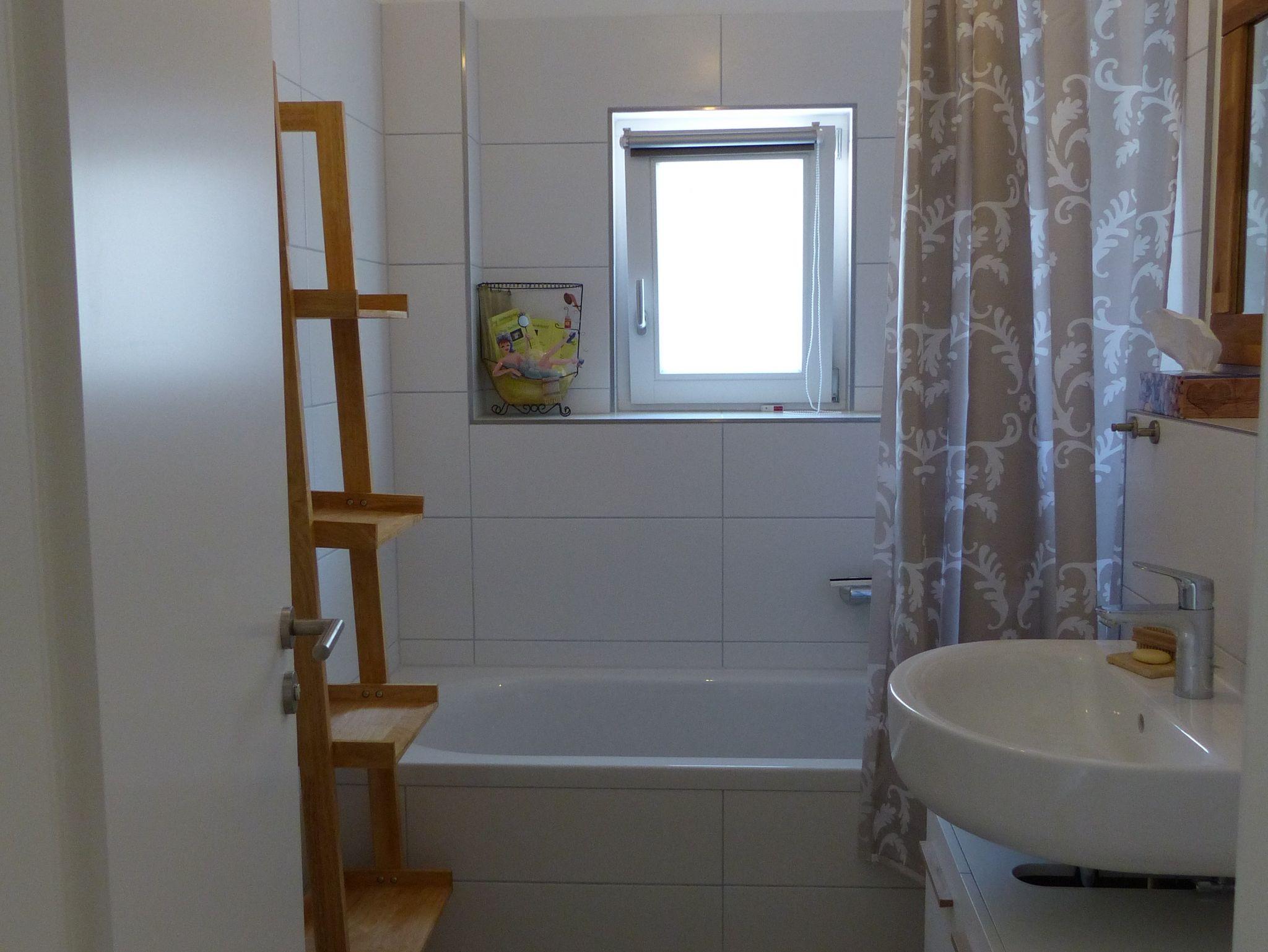 Die Wohnung verfügt über zwei Schlafzimmer, davon eines mit Doppelbett und eines mit zwei Einzelbetten. Bei Bedarf kann auch noch eine weitere Person auf der Schlafcouch im Wohnzimmer Platz finden.