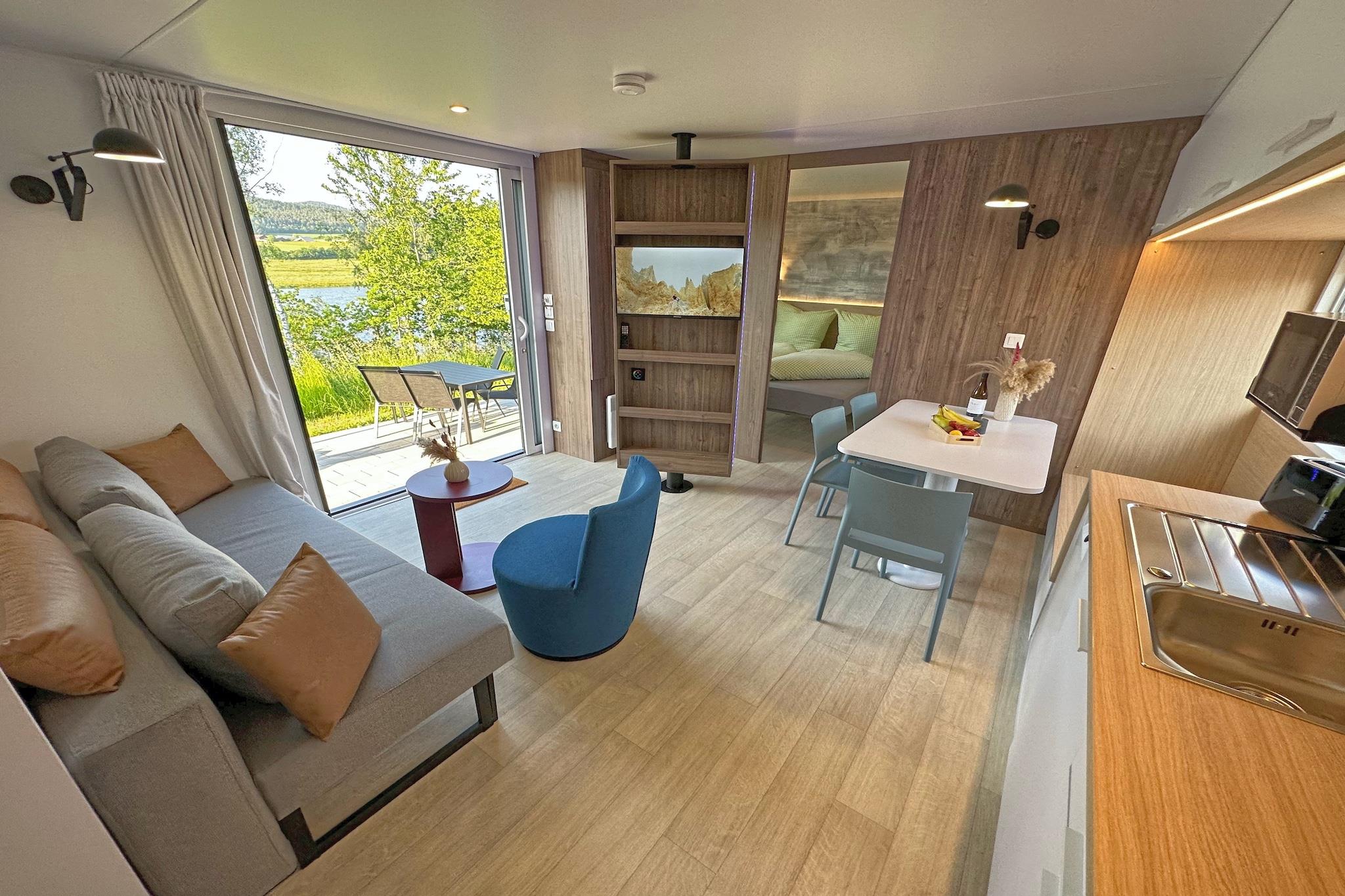 Velkommen til den fredelige ferieby Seeblick, beliggende ved bredden af søen Eixendorf i hjertet af Oberpfalz-skoven. Denne hyggelige lille hytte er ideel til par, familier eller venner, der søger en afslappende flugt i naturen. Det har et fuldt udstyret åbent køkken, en komfortabel stue/spisestue og to soveværelser, hver med sit eget private badeværelse, hvilket sikrer både komfort og privatliv. Træd udenfor til din private terrasse med en pejsgrill, havemøbler, parasol og liggestole, perfekt til måltider ved søen og til at slappe af under åben himmel. Faciliteterne inkluderer WiFi, tv, opvaskemaskine og privat parkering. Det omkringliggende Oberpfälzer Seenland byder på en rig blanding af aktiviteter: udforsk naturskønne stier til fods eller på cykel, nyd fiskeri, sejlads eller golf, og opdag nærliggende hede og bjerge. Uanset om du planlægger et roligt tilflugtssted, en aktiv ferie eller et familieeventyr, byder denne oase ved søen noget for enhver smag.