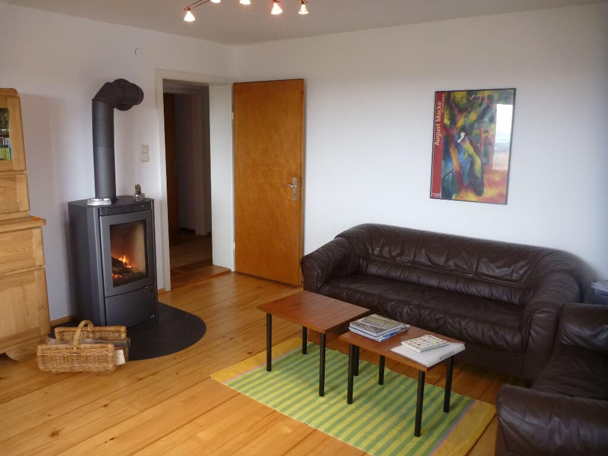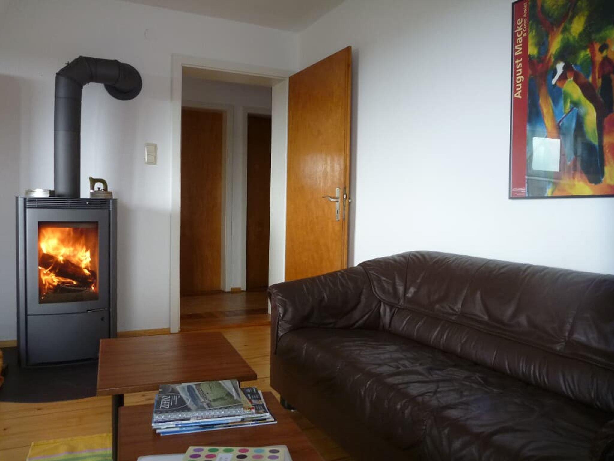 Besonderes Highlight: In der Erdgeschosswohnung sorgt ein Kaminofen mit Glasscheibe für wohlige Wärme und romantische Stimmung und kommt den Bedürfnissen von Hausstaubmilbenallergikern entgegen.