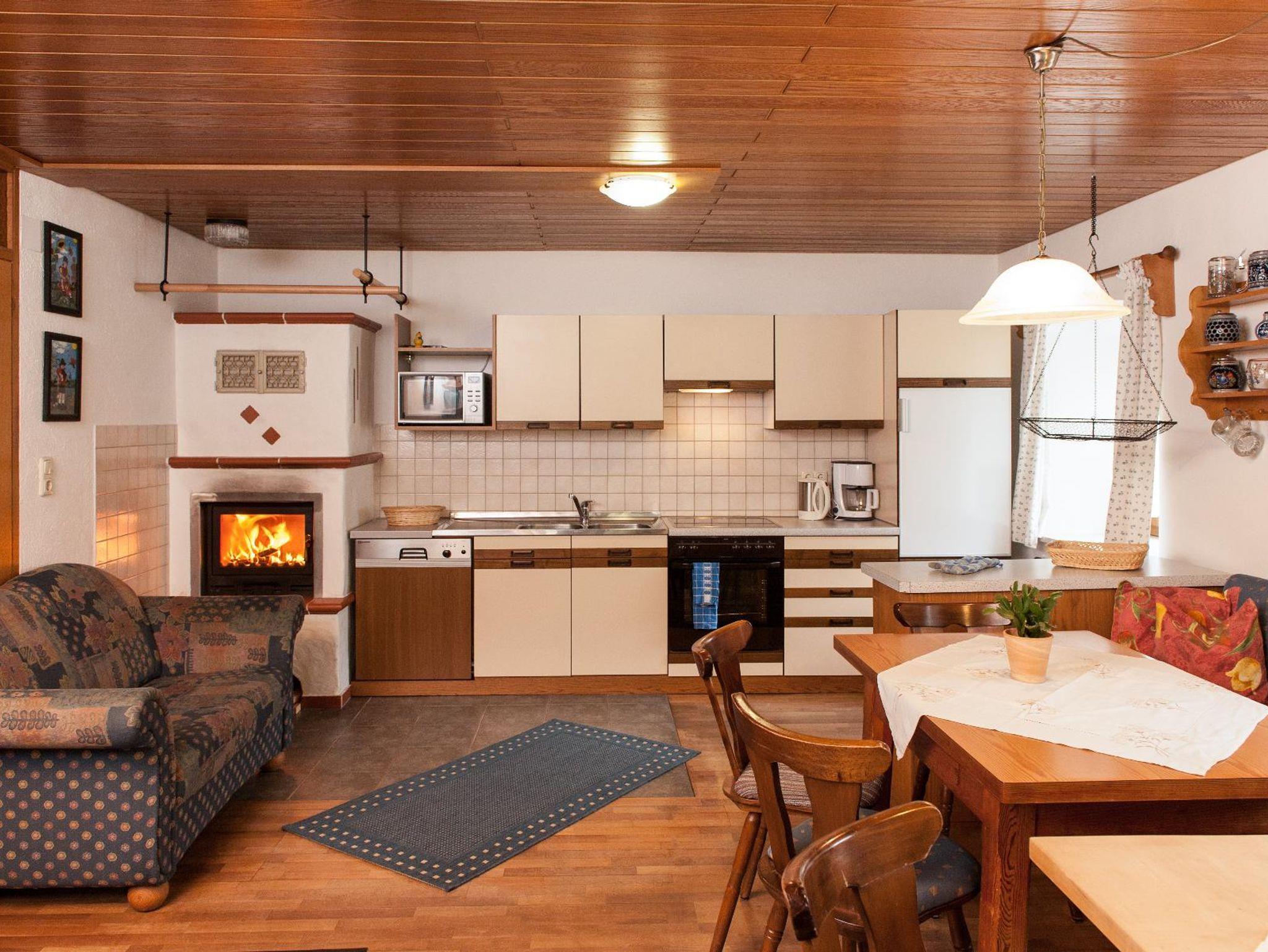 gemütlichen Wohnraum mit Küche, Geschirrspüler und Holzofen, Sat-TV und