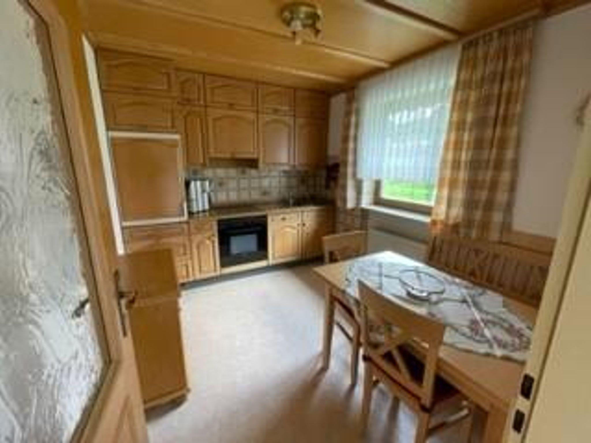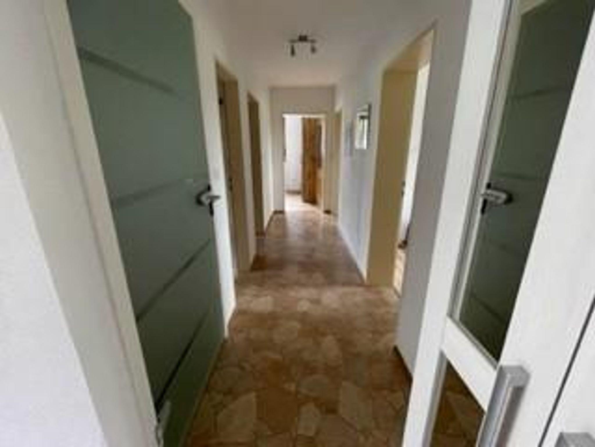 Die Ferienwohnung (85 m²) befindet sich im Erdgeschoss eines Einfamilienhauses. Sie besteht aus einem sehr großen, schön eingerichteten Wohn-/Eßbereich. Die Küche besteht aus einem 4 Plattenherd, Backofen, Kühlschrank, Kaffeemaschine, Wasserkocher und Toaster. Im Wohn-/Eßbereich befinden sich eine Sitzecke (Ledercouch) mit Fernseher und ein Eßtisch mit 4 Stühlen, sowie ein Sideboard. In den Schlafzimmern befinden sich Doppelbetten (1,80 m x 2,00 m), Nachtkästchen und ein Kleiderschrank. Das Einzelzimmer besteht aus 1 Bett (1 m x 2 m), Nachtkästchen und Schrank. Das Badezimmer verfügt über eine Badewanne, Dusche, WC und Waschbecken. Zusätzlich gibt es noch 1 separates WC.