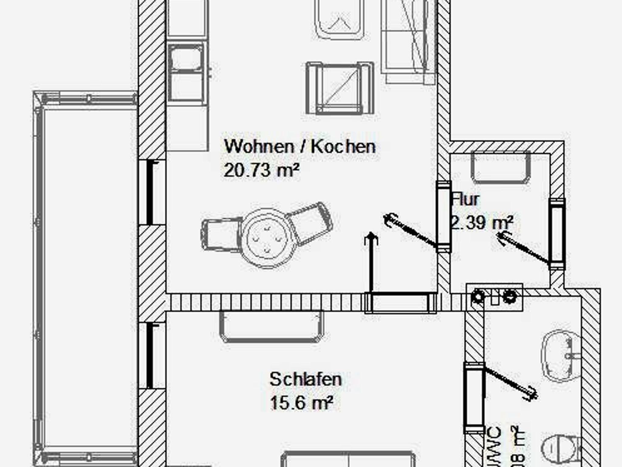 Die liebevoll eingerichtete Wohnung mit 48 m² im 2. Stockwerk, für 1 bis 3 Personen, besteht aus einem Wohnraum mit Zugang zum Balkon, großzügiger Couch und Fernseh-Sessel, Stehlampe, Flachbild-TV und DAB Radio. Die komplett ausgestattete Küchenzeile mit Essplatz, Kühlschrank inkl. Gefrierfach, Ceran-Kochfeld, Kaffeemaschine, Toaster, Wasserkocher und Mikrowelle(auf Anfrage).Das Schlafzimmer mit Zugang zum Balkon ist ausgestattet mit einem feststehendem Doppelbett mit Bandscheibenmatratzen( 1,8 x 2,0 Meter), Lattenrost (höhenverstellbares Kopfteil), dreitürigem Kleiderschrank, Spiegel mit Kommode und weiterm Stauraum. Die Nasszelle mit Dachfenster, Dusche, WC, Waschbecken, Föhn und Ablagemöglichkeiten rundet das Gesamtbild ab. Der großzügige Balkon bestückt mit gemütlichen Ruhemöbeln, Sonnenschirm und Wäscheständer lädt zu entspannten Abendstunden ein.