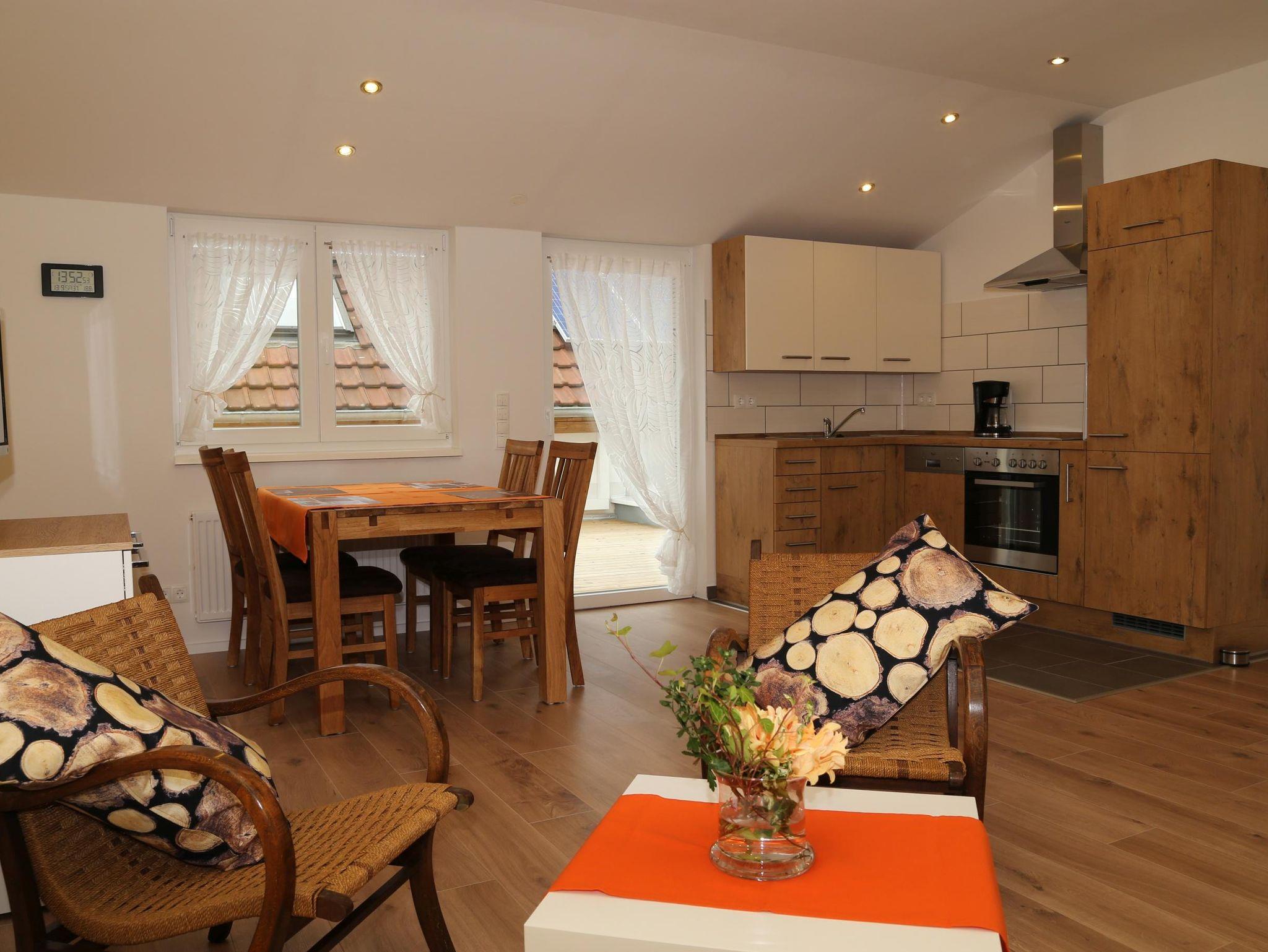Unsere gemütlichen und lichtdurchfluteten Nichtraucher-Fewo‘s befinden sich am ruhigen Ortsrand in Mitten der Weinberge am Fuße des Schlossberges. Wander- u. Radwege in unmittelbarer Nähe. Schlafzimmer mit Sternenblick; voll ausgestattete Einbauküche im Wohn-Essbereich.