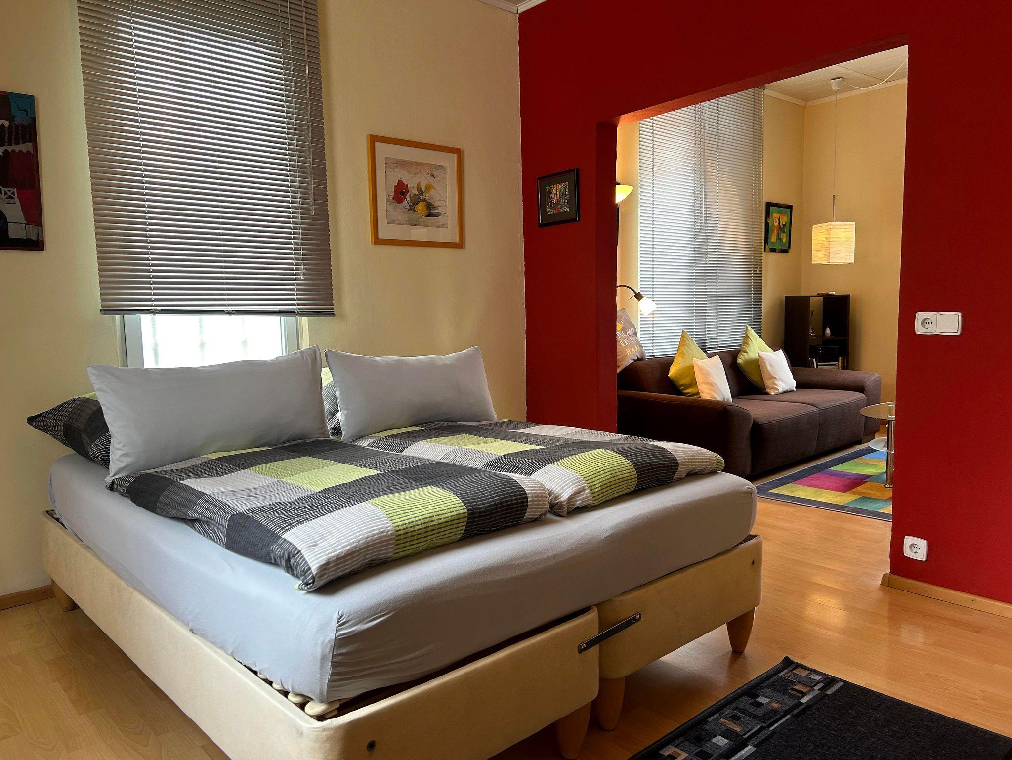 ? Die Nichtraucherwohnung bietet einen kombinierten Wohn-Schlafbereich, mit Sofa, Smart TV, Stereo auf der einen und bequemen Bett (H3 1,60x2,00m saisonal bezogen) auf der anderen Seite. Free Wi-Fi.