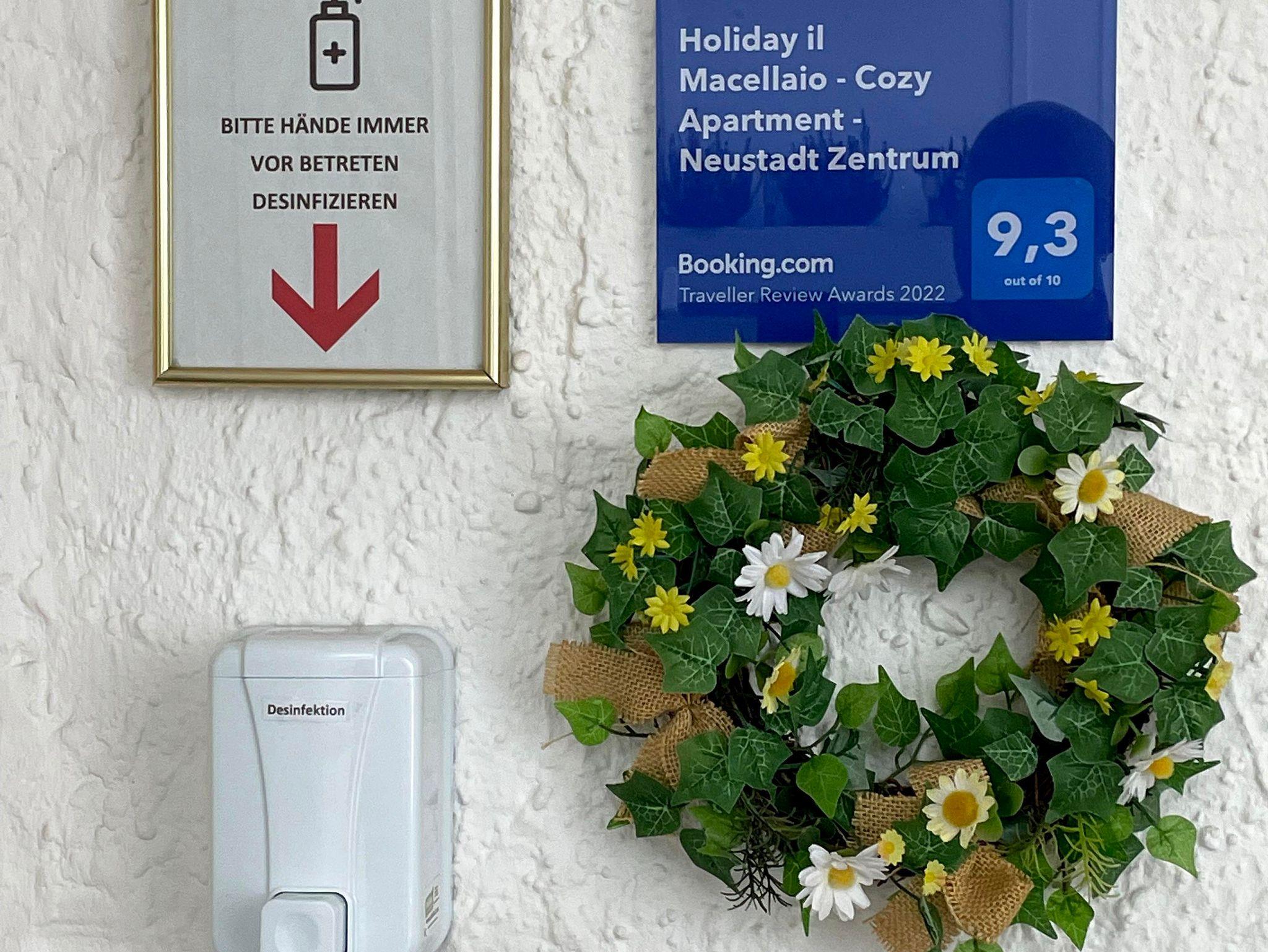 einer Fewo in aktuell frisch sanierter Umgebung und Parkplätzen direkt vor dem Haus. Idealer Ausgangspunkt um in 4-5 Gehminuten am Markplatz/Fußgängerzone oder der Altstadt zu sein oder Sie Neustadt und Umgebung zu Fuß, mit dem Rad oder ÖPNV erkunden wollen.