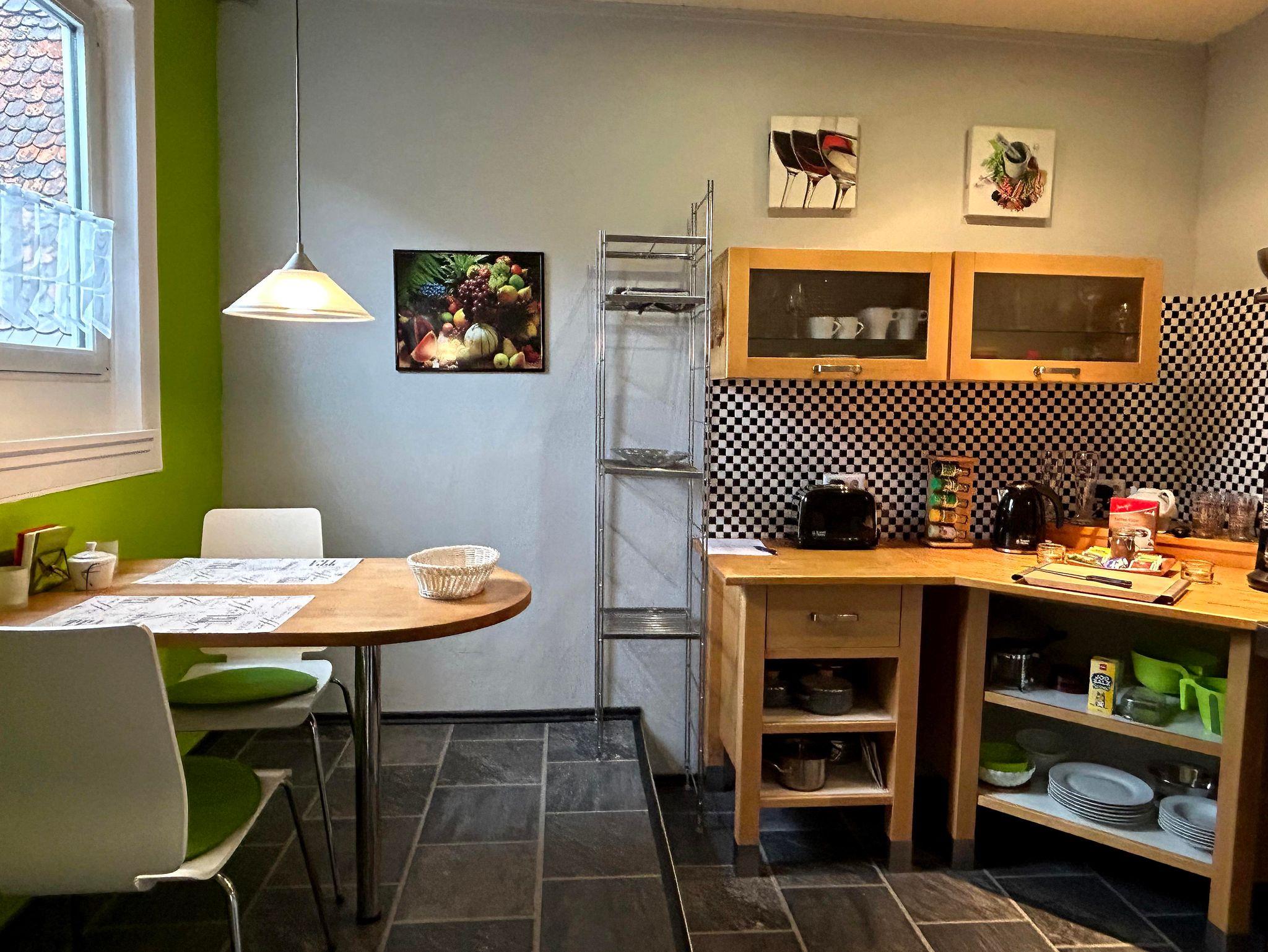 Fußläufige Entfernungen: ? Bäckerei für Frühstücksbrötchen im Vorderhaus ? Parkplätze 10m - 50m entfernt am Kohlplatz. ? EV Charger 50m - 200m entfernt ? Apotheke 30m ? Lidl Markt 250m ? Fußgängerzone, Marktplatz und Altstadt mit tollen Restaurants und Cafés ca 4 -5 Min ? HBF und Saalbau ca 6-7Min ? Das große Freibad erreichen Sie fußläufig in 8 Min und kurz danach sind Sie schon am Wolfsburgweg hoch zur berühmten Burgruine Wolfsburg.