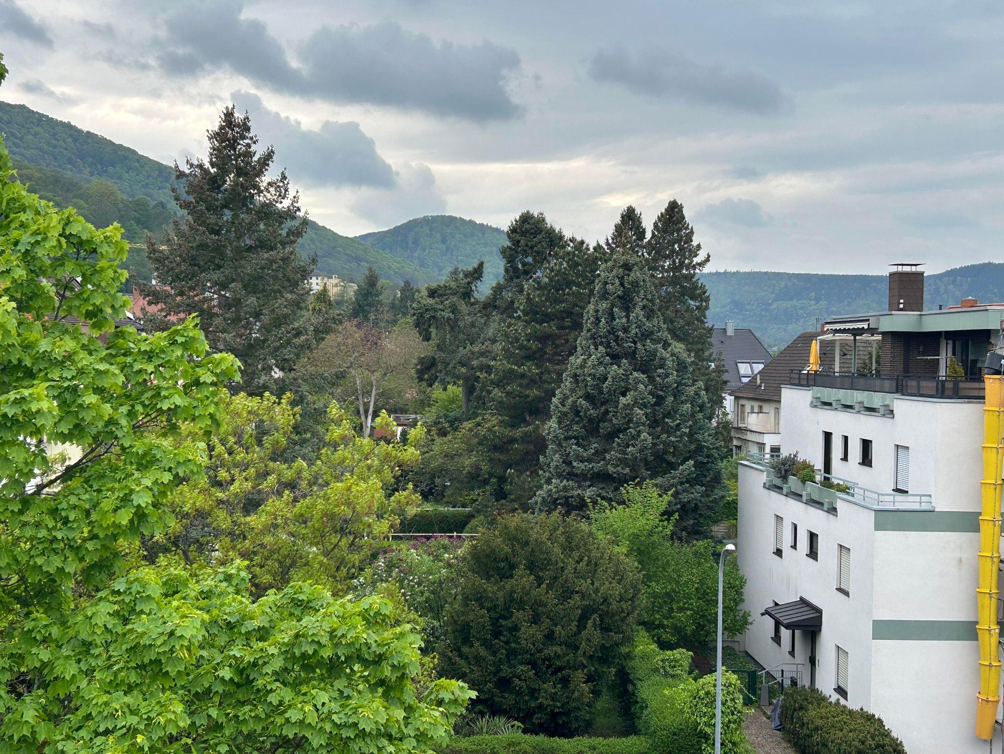 Ob Sonnenbad, Outdoor-Frühstück oder Tagesausklang mit einem guten Pfälzer Tropfen, der kleine Dachbalkon mit Holzdeck, Sitzbank und Markise punktet mit einem Rund-umblick von der Altstadt über den Haardtrand bis zum Hambacher Schloss.