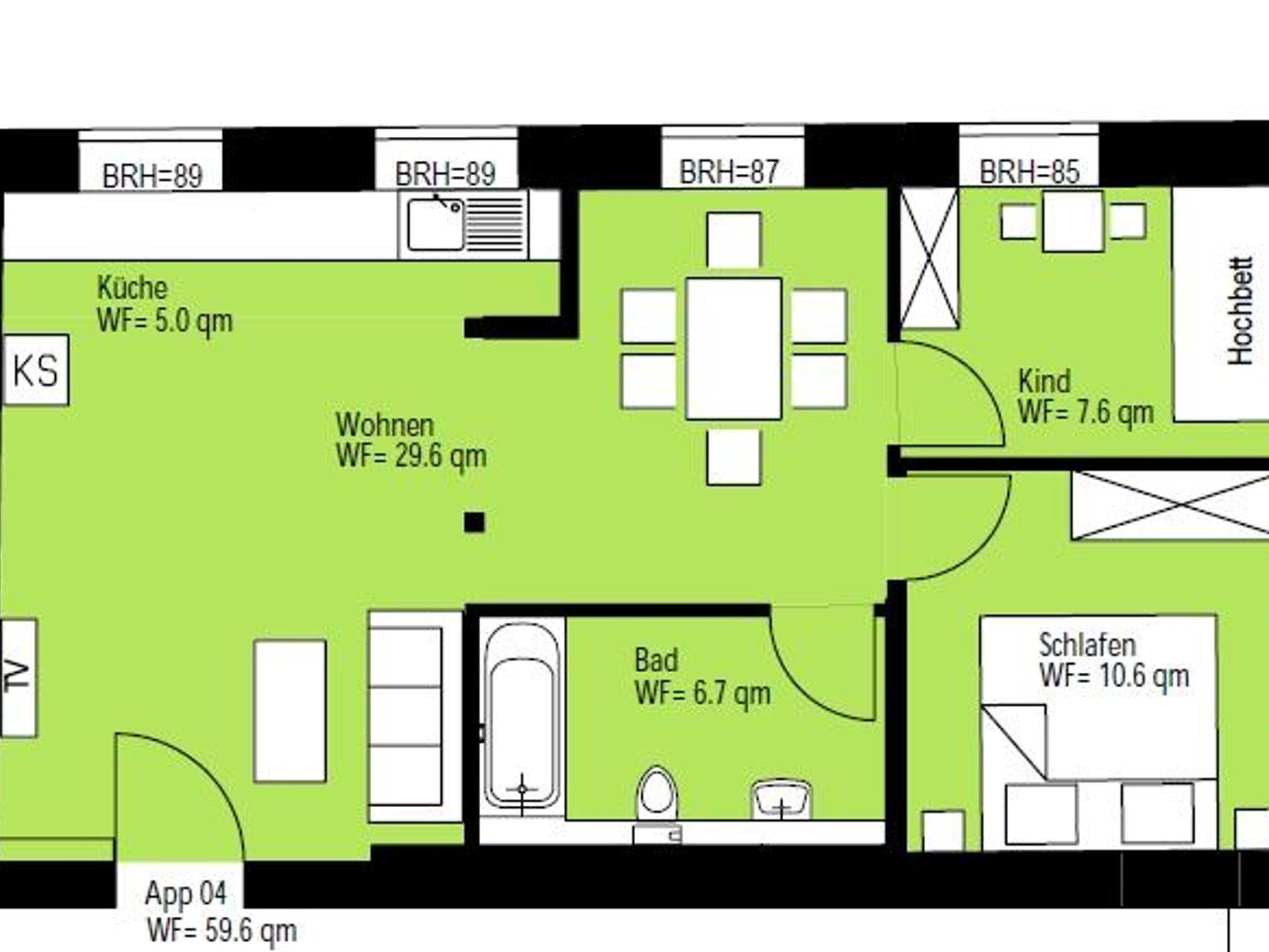 Ferienwohnung Dornfelder 60 m². Im 1. OG. 1 Schlafzimmer für 2 Personen im Doppelbett + 1 Schlafzimmer für 2 Personen (Kinder) im Etagenbett. Badezimmer mit Badewanne.