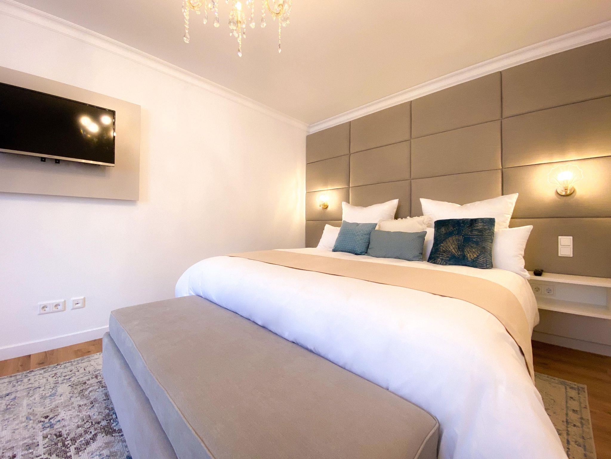 Ein wunderbarer Ort für Paare oder die kleine Familie Vom hellen Flur aus gelangen Sie zu Ihrem Schlafbereich mit mediterranem Ensuite-Duschbad, ausgestattet mit einem komfortablen Boxspringbett für maximalen Schlafkomfort, einem TV-Flatscreen und einem Kleiderschrank. Der Flur führt ebenso zum großzügigen Wohn-/Essbereich: Die Küchenzeile bietet zum einen den nötigen Platz und beinhaltet alle Utensilien zum Zubereiten einer Mahlzeit, falls Sie einfach und unkompliziert einen kompletten Tag im Winzerhof verbringen möchten – auch, wenn das Angebot an hervorragenden Gaststuben in der Umgebung das kaum zulässt.