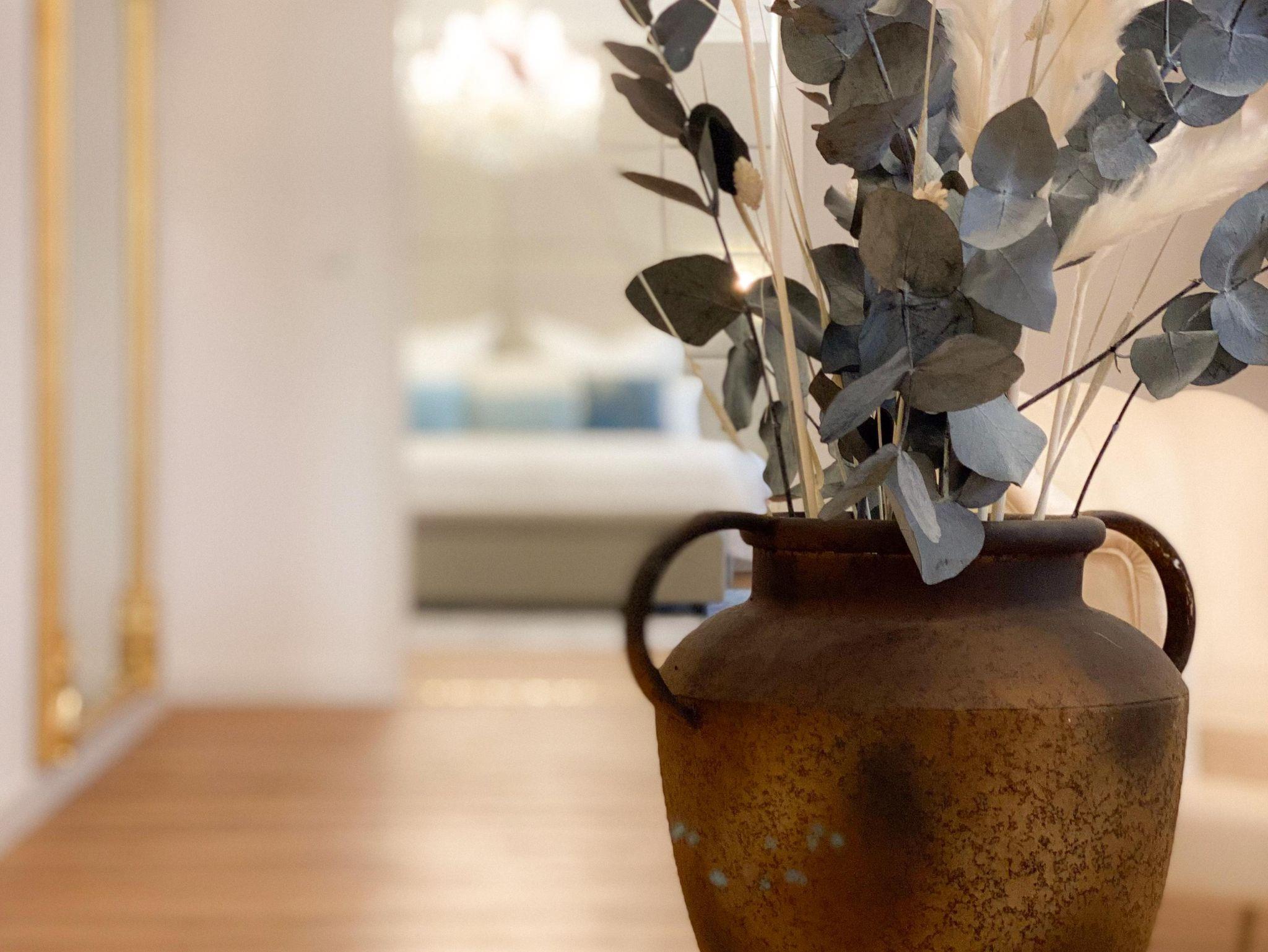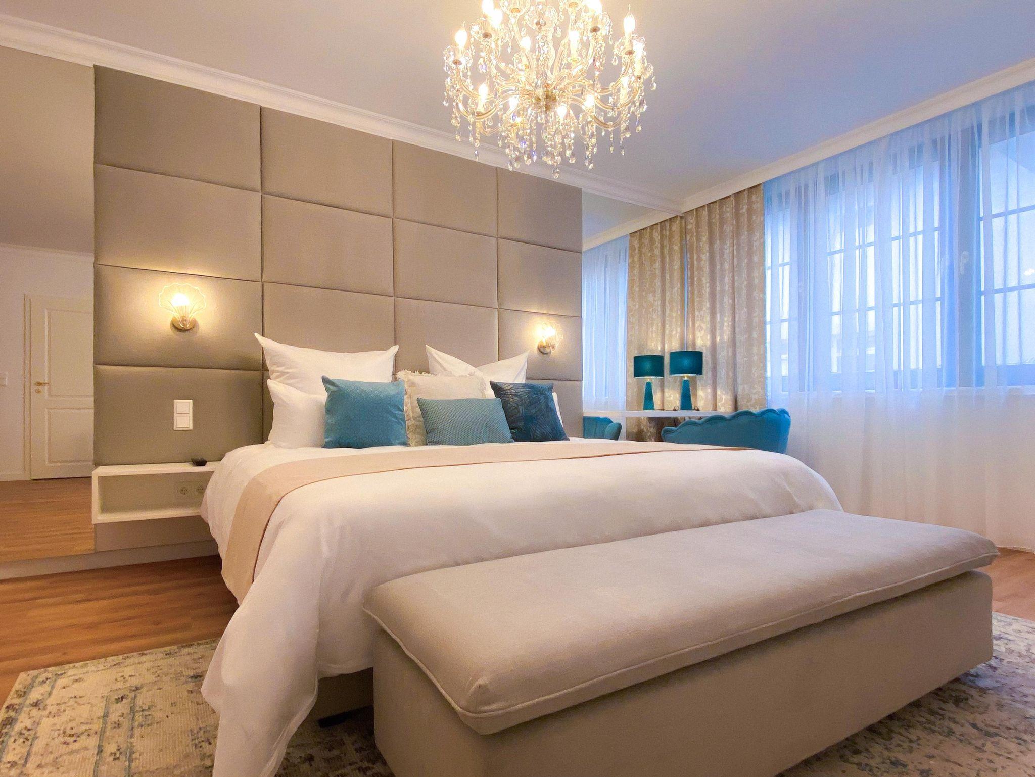 Ideal für alle, die Raum lieben Viel Platz: Das bietet unser rollstuhlgerechtes Grand Deluxe Apartment im Erdgeschoss – Bewegungsfreiraum in jedem liebevoll eingerichteten Zimmer. Das großzügige Schlafzimmer mit gemütlichem Boxspringbett bietet höchsten Komfort, ebenso integriert ist ein kleiner Arbeitsbereich.