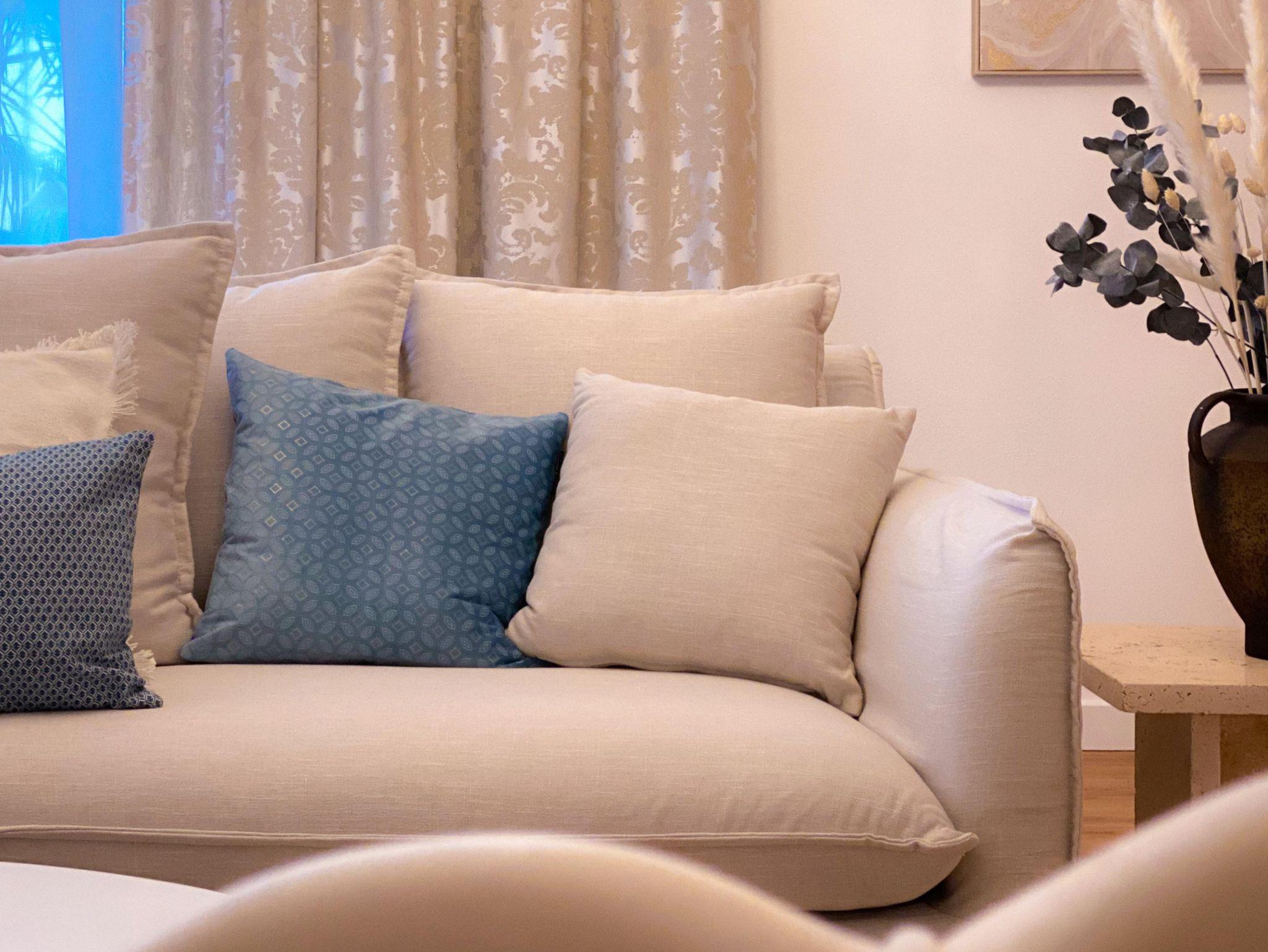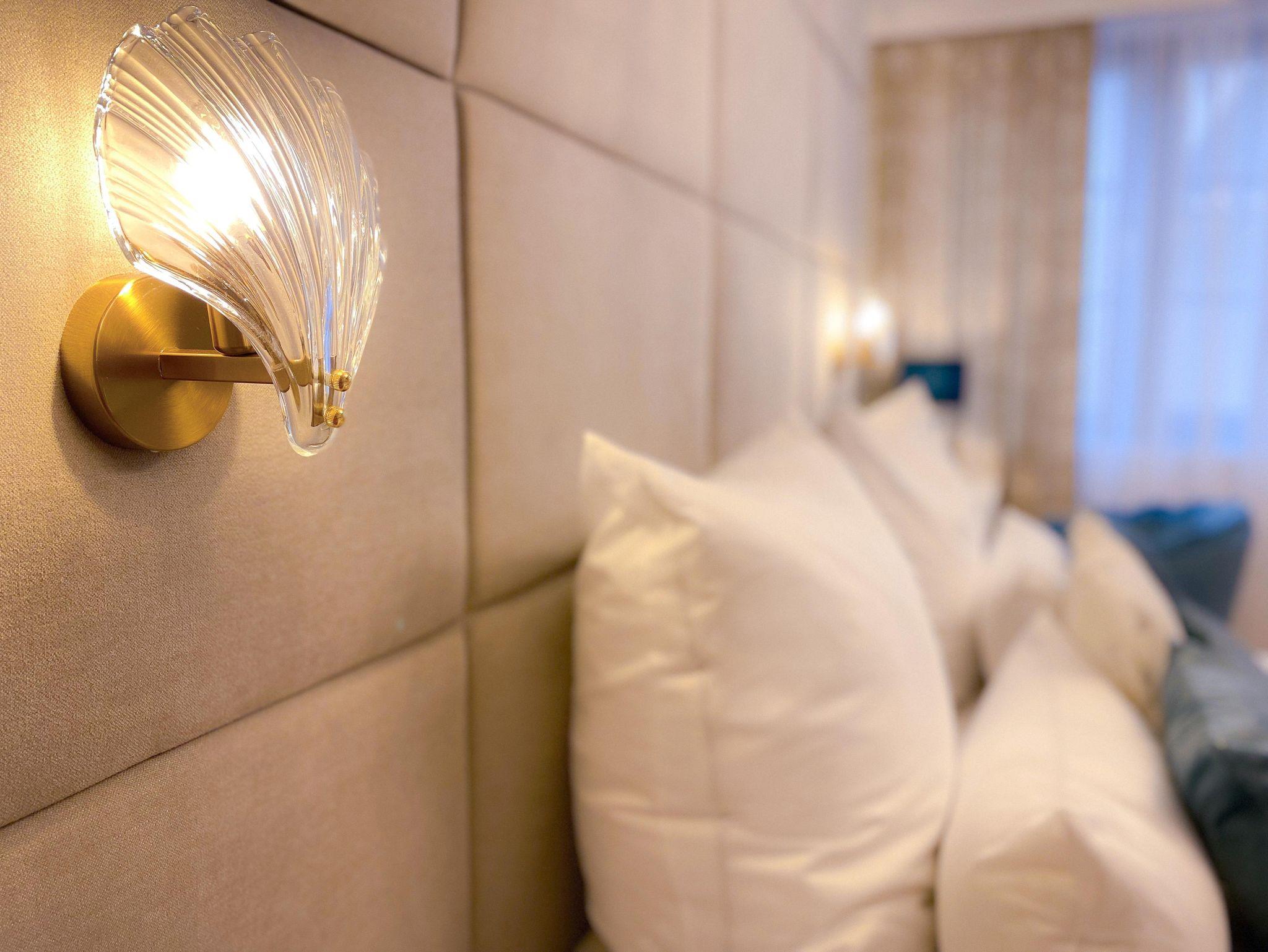 Auch in diesem Apartment befi nden sich sowohl im Wohn- als auch im Schlafbereich große TV-Screens.