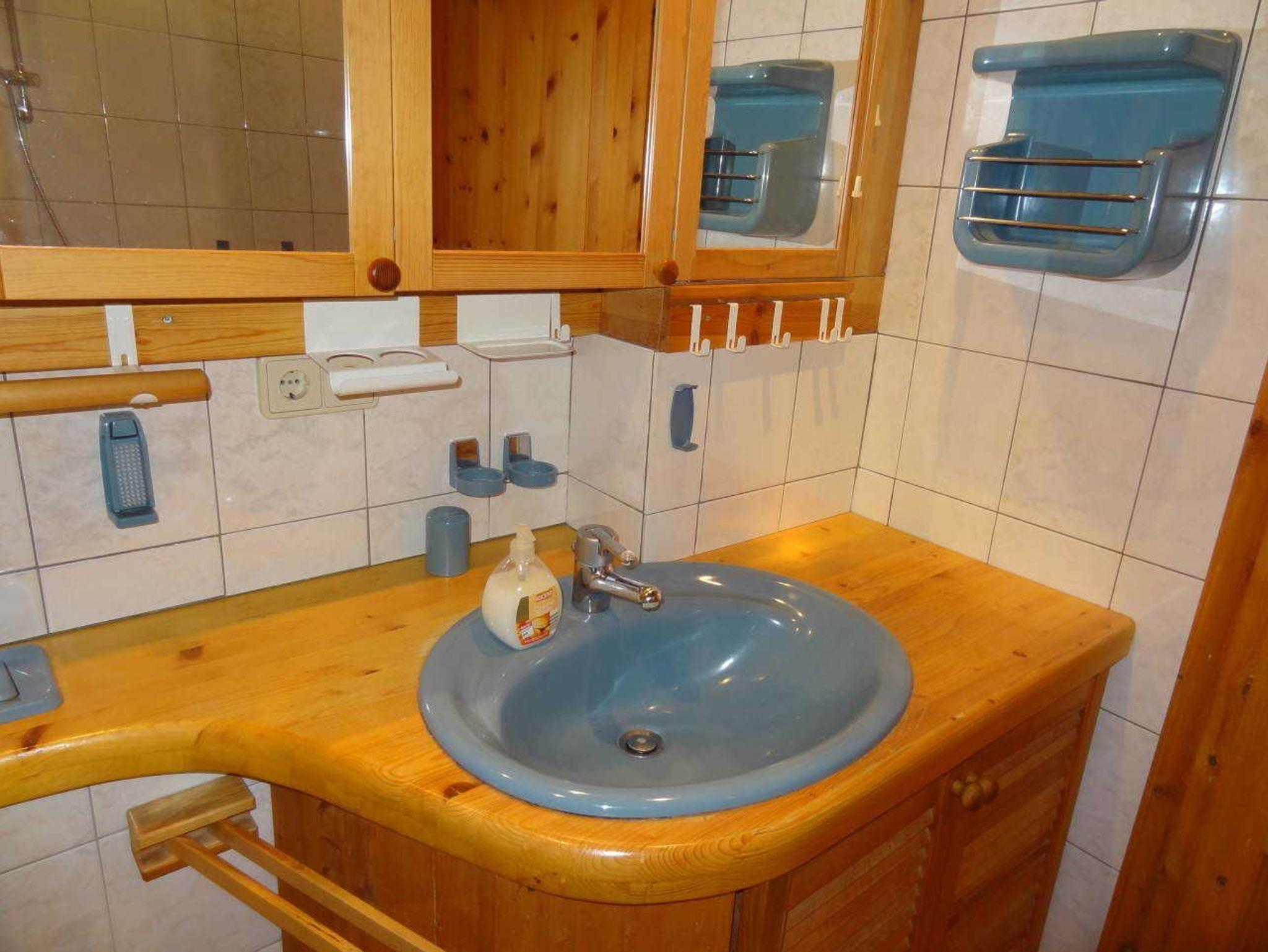 Das Badezimmer verfügt über eine Badewanne mit Duschvorrichtung.