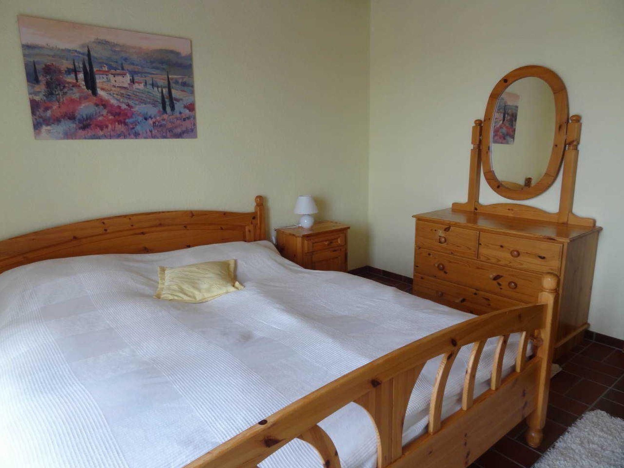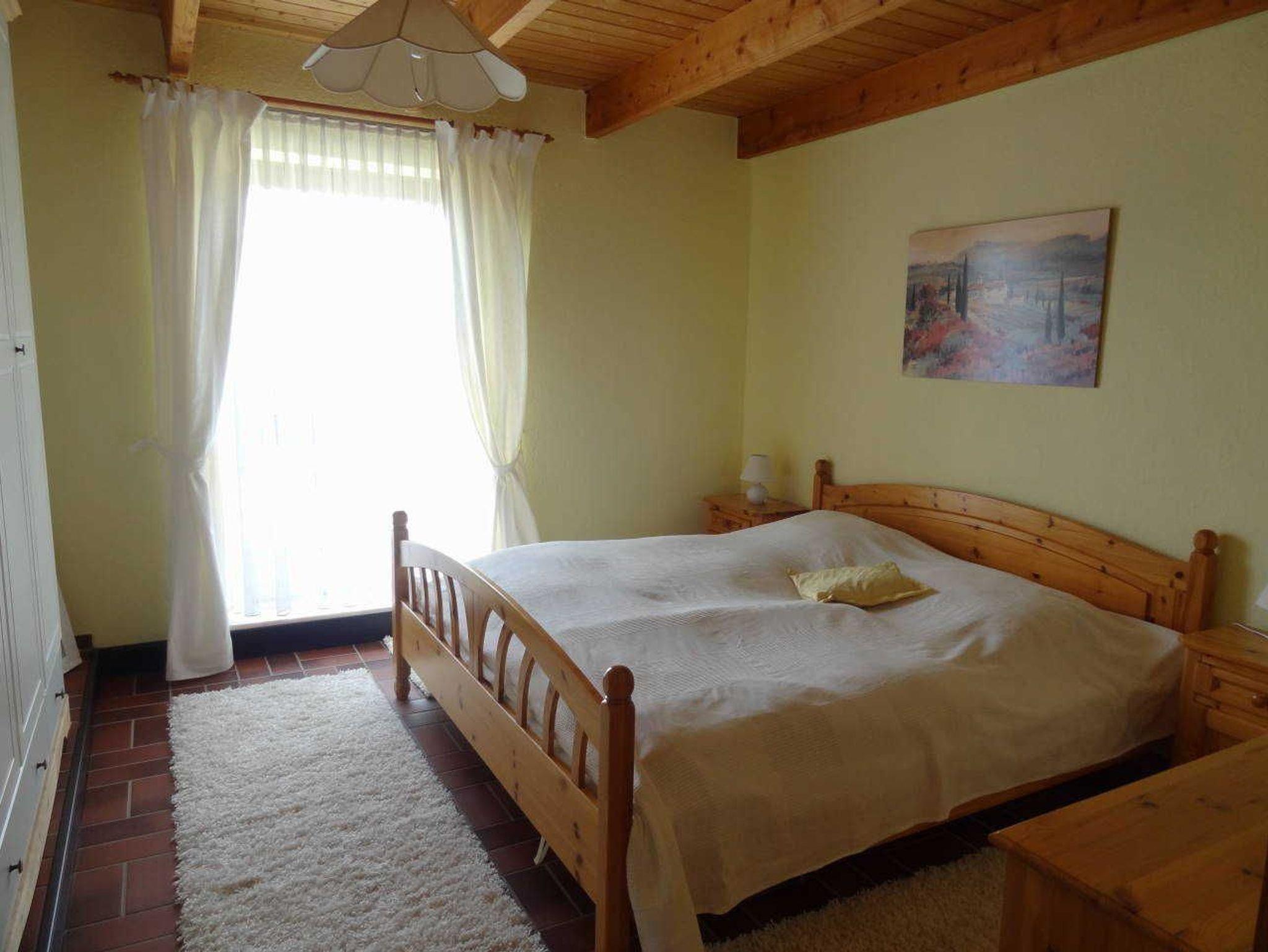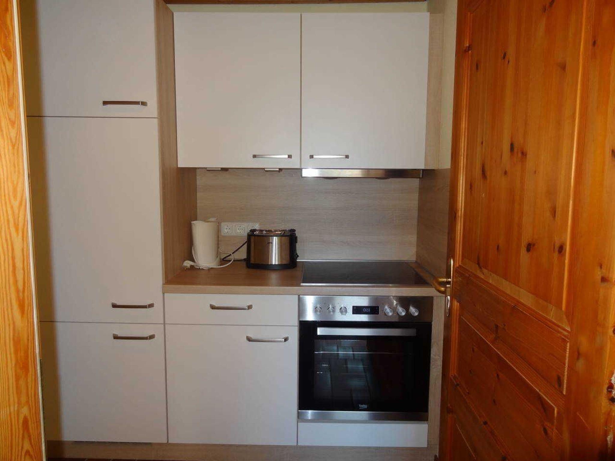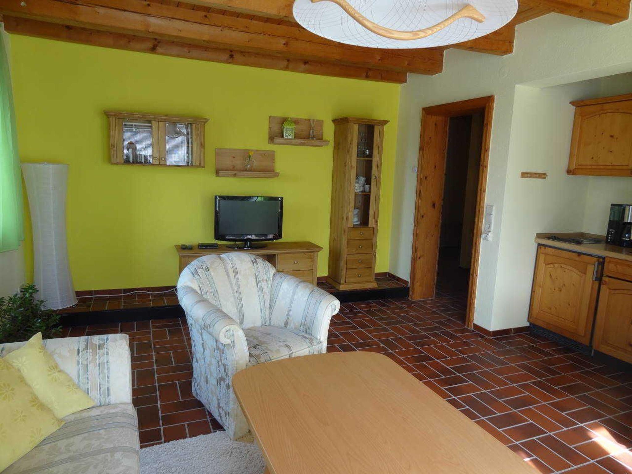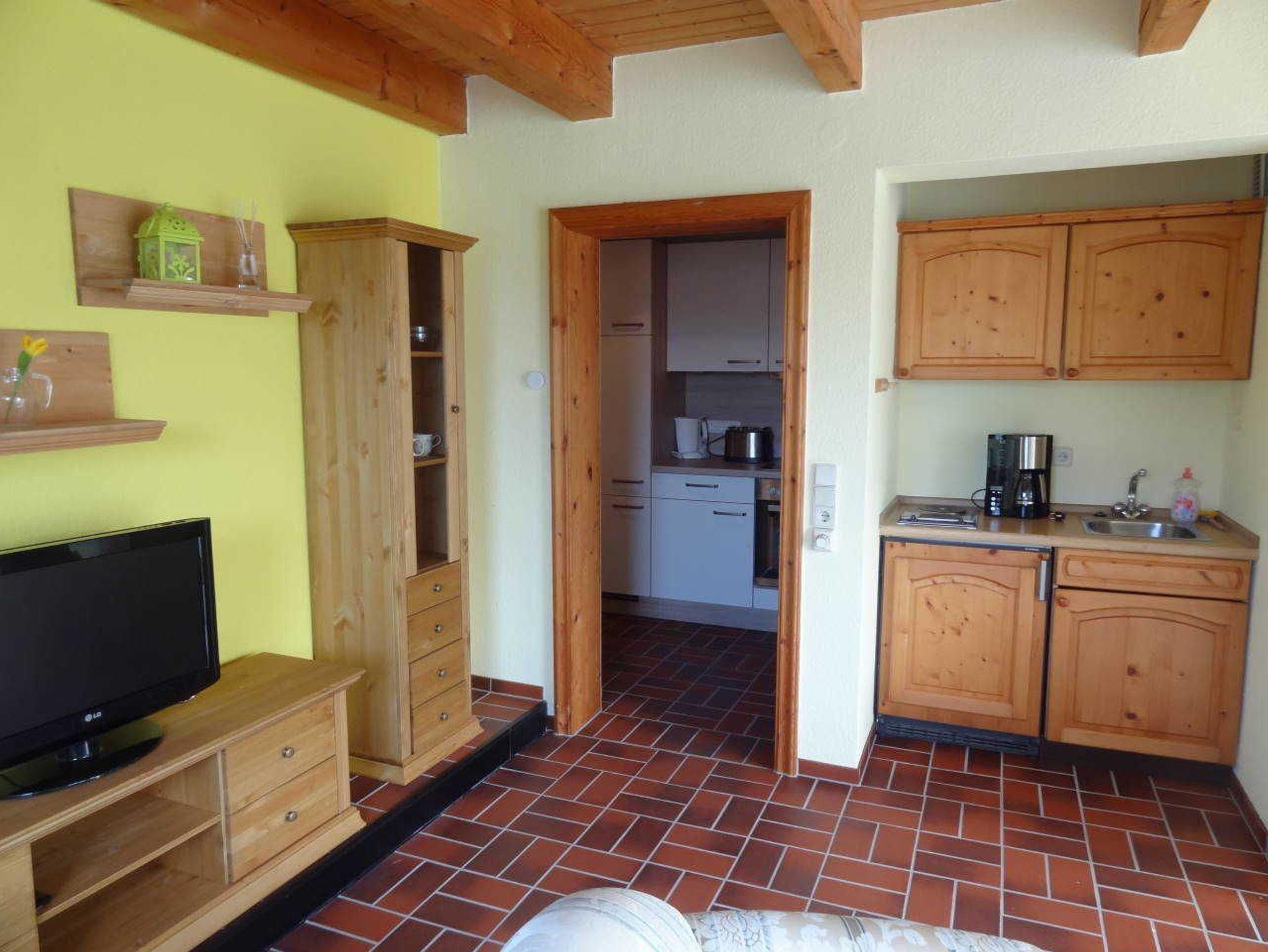 Die 2-Zimmer Einliegerwohnung verfügt über eine Terrasse, Wohnzimmer mit Couch, Sat-TV und Wlan. Eine kleine Küchenzeile mit Herd und Backofen befindet sich auf dem Flur. Das Schlafzimmer ist mit einem Doppelbett und großem Kleiderschrank ausgestattet.