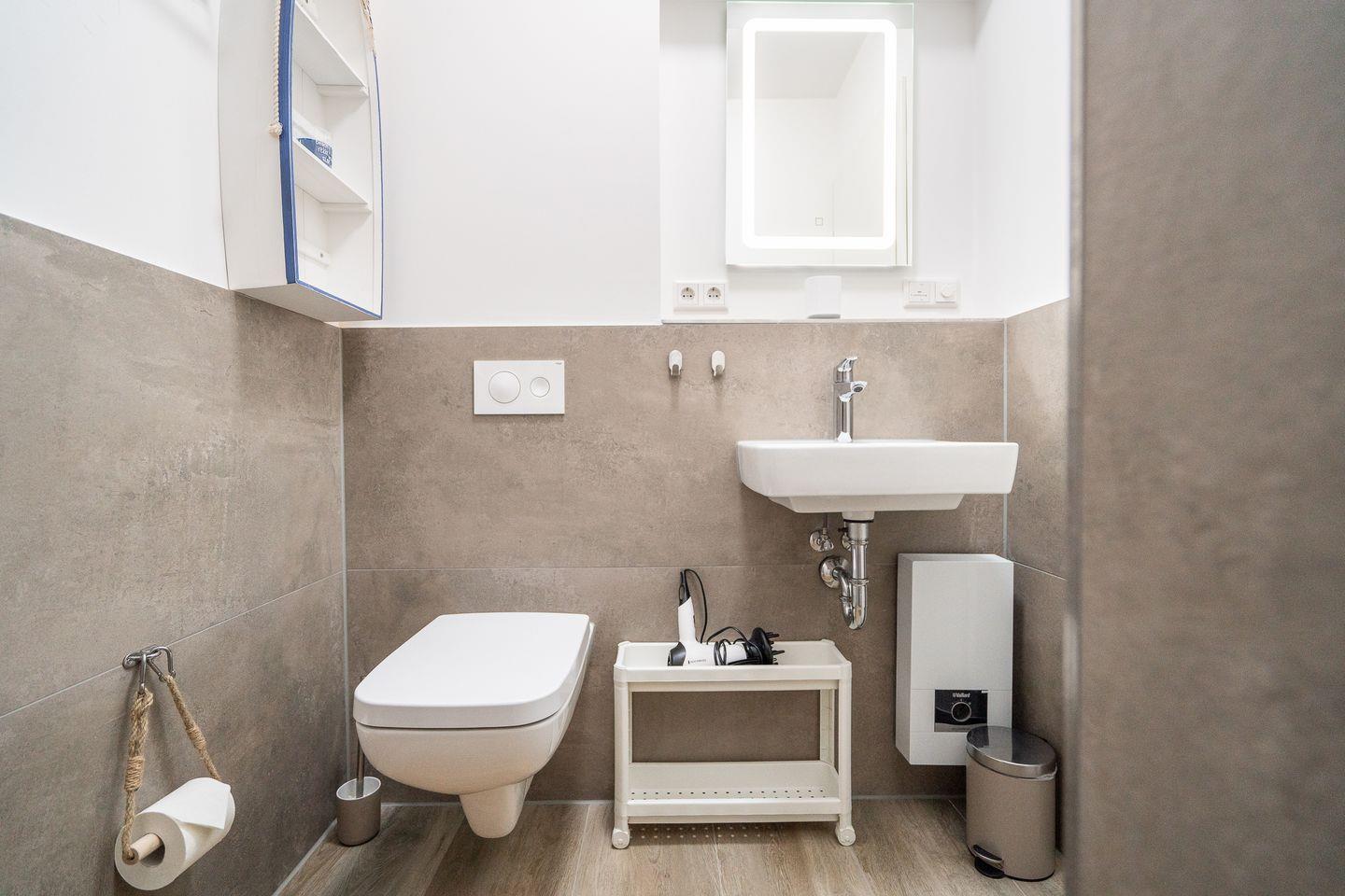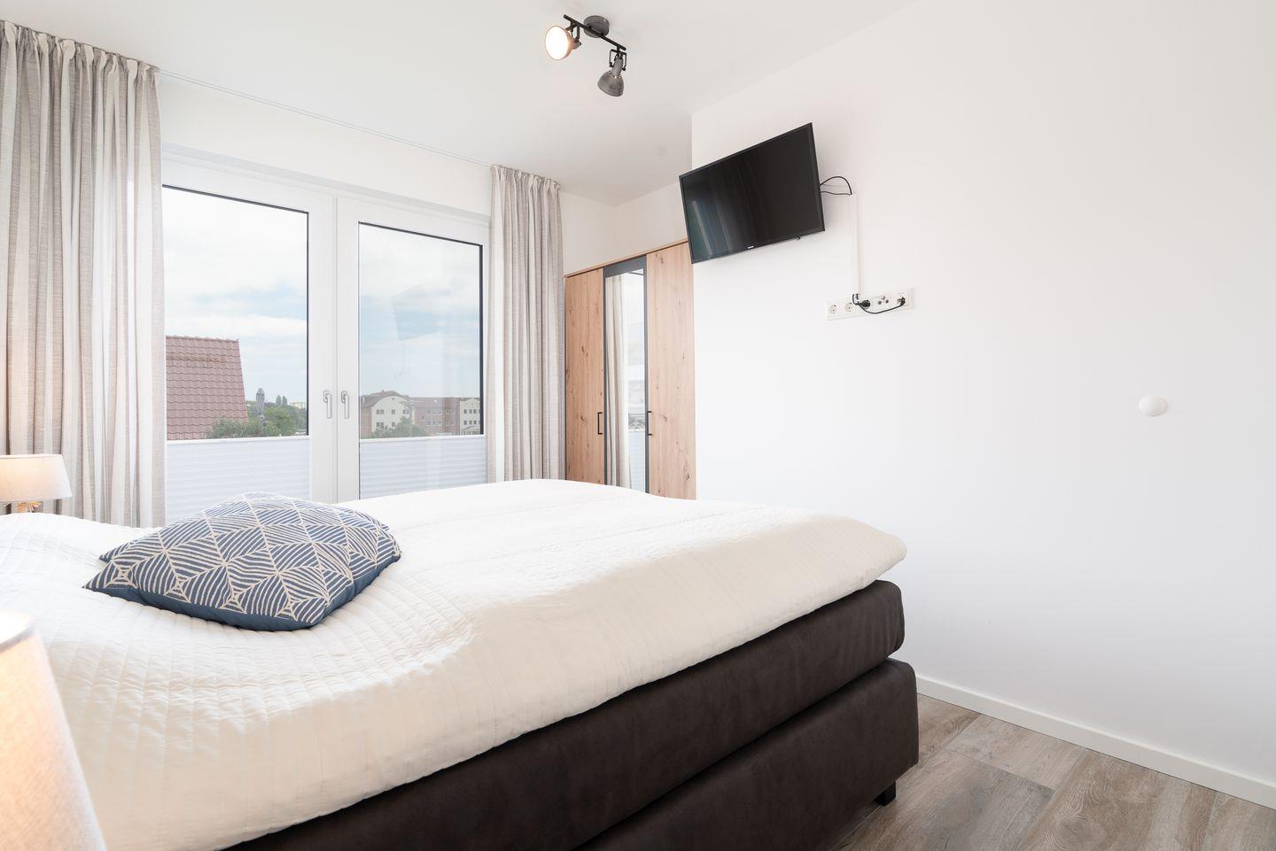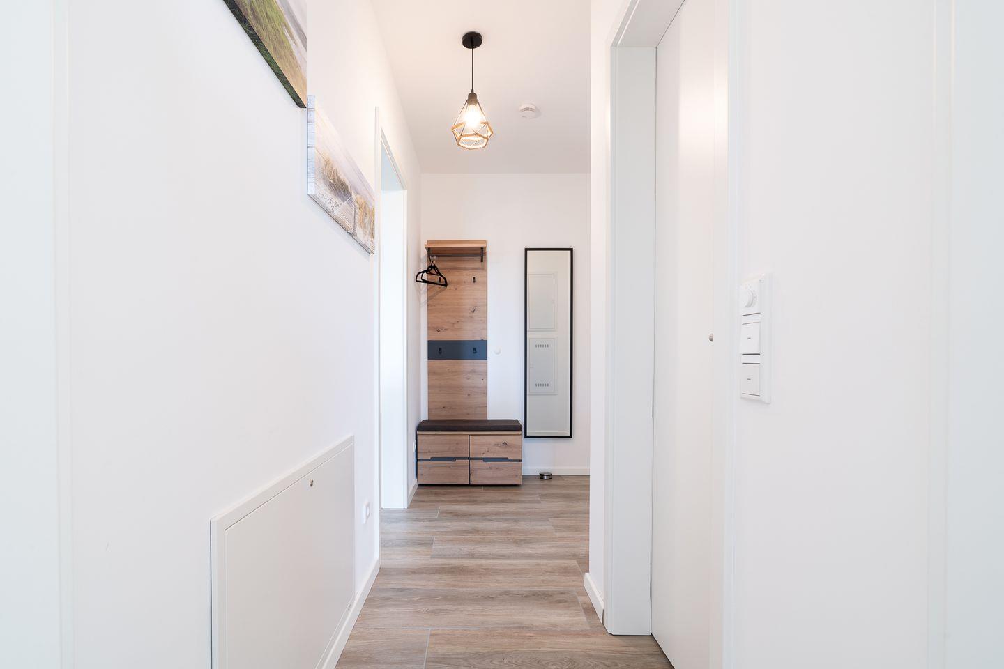 Herzlich Willkommen in der 2-Raum-Ferienwohnung „Steife Brise Nr. 2“ in exklusiver Lage von Neustadt in Holstein. Die ca. 55 m2 große, moderne Ferienwohnung liegt im EG eines in 2023 erbauten Mehrparteienhauses und ist in fußläufiger Entfernung zur „ancora Marina“, dem größten privaten Yachthafen an der Ostsee. Die hochwertig ausgestattete Wohnung verfügt über einen kombinierten Wohn- und Essbereich mit Zugang zum Balkon, sowie einem Schlafraum. Der großzügige Balkon geht über Eck. Die mit Backofen, Herd und Geschirrspüler voll ausgestattete, moderne Küche ist in den schönen kombinierten Wohn- und Essbereich integriert. Hier kann man den Tag bei einem Glas Wein oder gemeinsamen Spiele- oder TV-Abenden ausklingen lassen. Der Schlafraum ist mit einem bequemen Doppelbett eingerichtet und verfügt zudem noch über ein TV. Das Sofa mit Liegefunktion im Wohnbereich bietet einen weiteren Schlafplatz. Das hochwertige Bad ist mit einer begehbaren Dusche ausgestattet. Ein Parkplatz in der hauseigenen Tiefgarage ist inklusive. Stellplatz für Ihre E-Bikes auf Anfrage verfügbar.