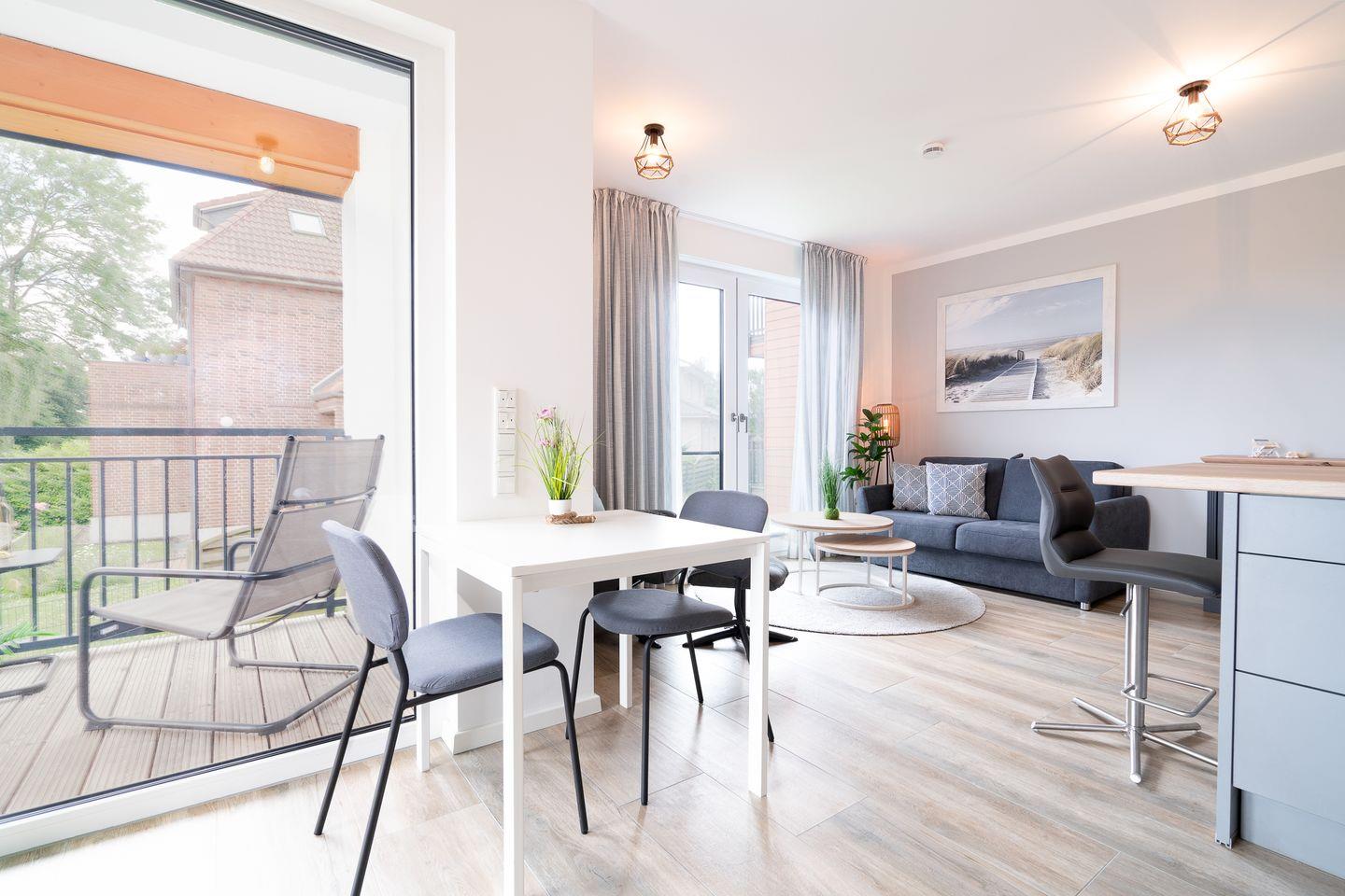 Herzlich Willkommen in der hochwertig ausgestatteten 2-Raum-Ferienwohnung „Steife Brise Nr.2“! Sie liegt in fußläufiger Entfernung zur „ancora Marina“ und verfügt über einen kombinierten Wohn- und Essbereich mit Zugang zum Balkon, sowie 1 Schlafraum. Die voll ausgestattete Küche ist in den kombinierten Wohn- und Essbereich integriert. Der Schlafraum ist mit einem bequemen Doppelbett ( 1,80m x 2,00m ) eingerichtet. Das hochwertige Bad ist mit einer begehbaren Dusche ausgestattet. Parkplatz und WLAN inklusive.