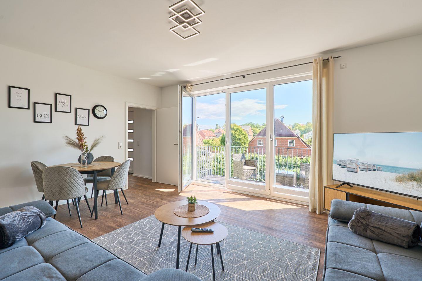 Neu in der Vermietung: Die frisch renovierte 3-Zimmer-Wohnung „Auszeit Neustadt“ bietet auf über 75 m² modernen Wohnkomfort in gemütlicher Atmosphäre und ist ideal für einen erholsamen Familienurlaub an der Ostsee. Nur 500 Meter vom malerischen Hafen in Neustadt in Holstein entfernt, überzeugt die Wohnung mit einem sonnigen Balkon, auf dem sich die Urlaubstage entspannt ausklingen lassen. Das große Schlafzimmer ist mit hochwertigen Wohlfühlmatratzen für erholsamen Schlaf ausgestattet und verfügt zusätzlich über einen eigenen TV. Im Wohnbereich stehen zwei komfortable Schlafcouchen (je 160x200 cm) zur Verfügung, außerdem gibt es ein kleines Zimmer mit einer Kinderschlafcouch (140x140 cm) sowie eine weitere Schlafcouch für Kinder gleicher Größe. Damit bietet die Wohnung Platz für bis zu vier Erwachsene und zwei Kinder. Das helle Tageslichtbad verfügt über eine große Badewanne und eine Dusche und lädt zum Wohlfühlen ein. Die neue, großzügige Küche ist komplett ausgestattet, inklusive Backofen und Mikrowelle, und bietet beste Voraussetzungen für gemeinsames Kochen und Genießen. Mit ihrer modernen Einrichtung, der Nähe zum Hafen und den vielfältigen Schlafmöglichkeiten ist die Ferienwohnung „Auszeit Neustadt“ die perfekte Wahl für Familien, die Komfort, Gemütlichkeit und Ostsee-Urlaubsflair verbinden möchten.