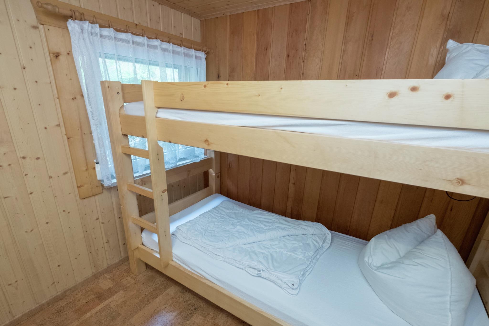 Stueetage: (Indgang , gang, åbent køkken(brødrister, komfur(Komfur med to kogeplader, elektrisk), kaffemaskine, mikrobølgeovn, køleskab(+ fryser)), stue / spisestue(Fjernsyn, spisebord, kakkelovn(træ), DVD-afspiller, radio, stereoanlæg), soveværelse(dobbelthøjseng), soveværelse med gennemgang(2x enkeltseng), badeværelse(bruser, håndvask, toilet)) tremmeseng, vaskemaskine(deles med andre gæster), varme(elektrisk, træ), terrasse(privat, 20 m2), have(delvist indhegnet, 500 m2), cykelopbevaring, havemøbler, grill(trækul), parkering, liggestole, Parasol, Puslepude, sandkasse, cykler til rådighed, barnestol