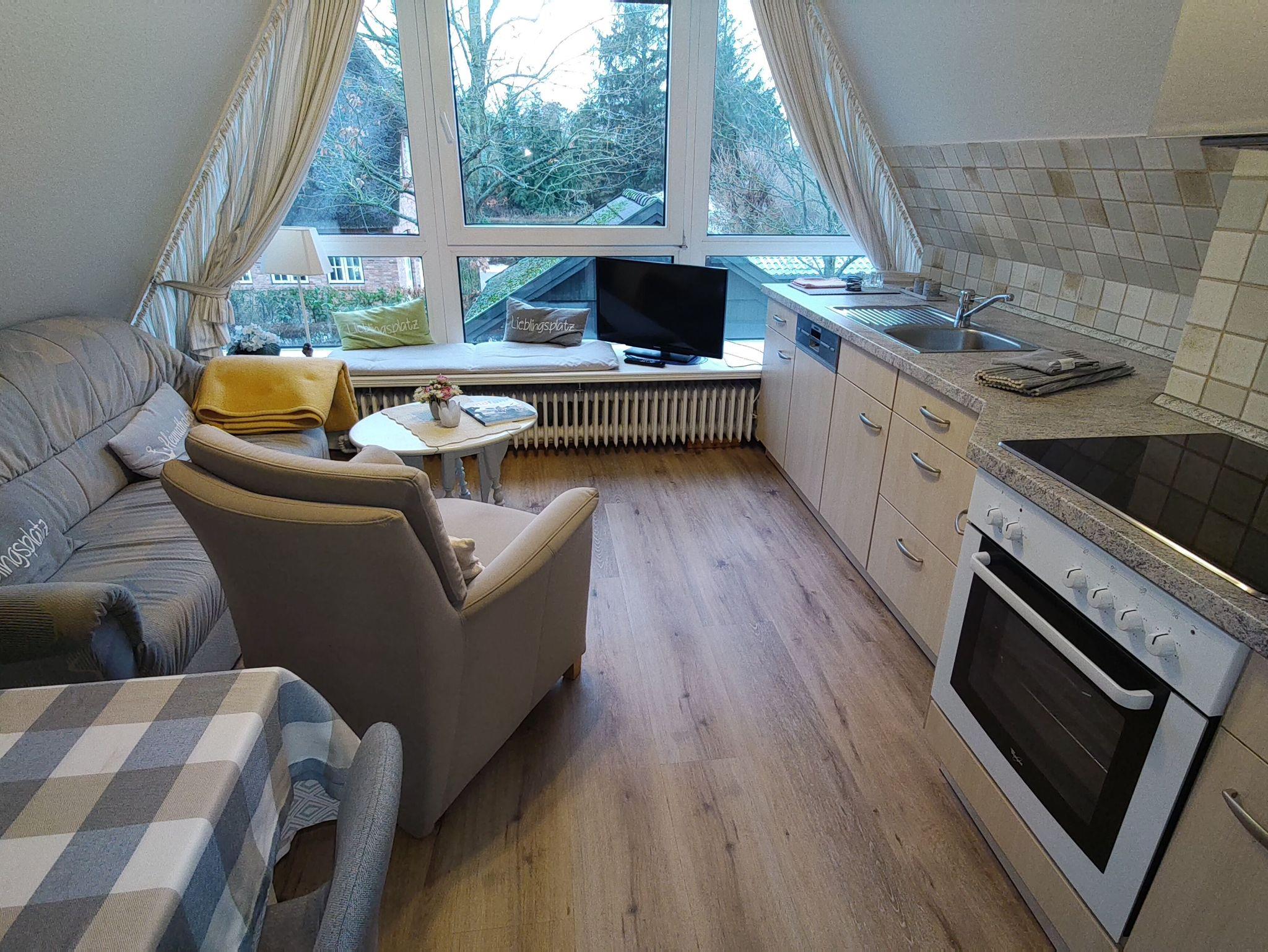 Die gemütliche, 35 m² große Obergeschoßwohnung in Nieblum bietet Platz für 2 Personen. Das Objekt verfügt über ein Wohnzimmer mit integrierter Küche und einem Essplatz, ein Schlafzimmer mit Doppelbett und ein Duschbad. Man kann sich auch in dem schönen Wintergarten aufhalten, der gemeinschaftlich genutzt wird.
