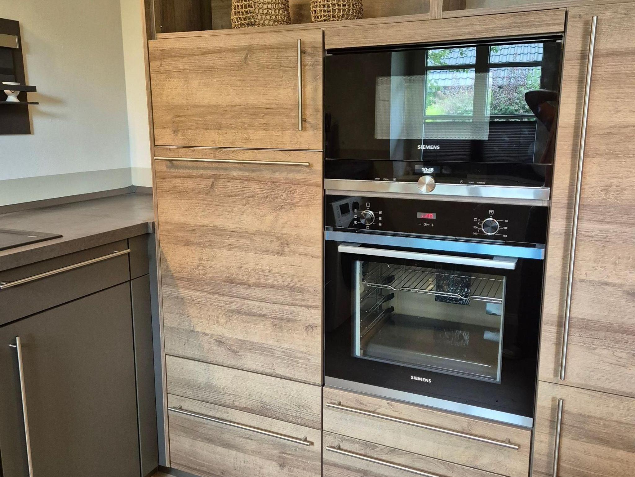 Küche / Haushalt: Backofen, Bügelbrett und -eisen, Filterkaffeemaschine, Gefrierfach, Geschirrspüler, Mikrowelle mit Grillfunktion.