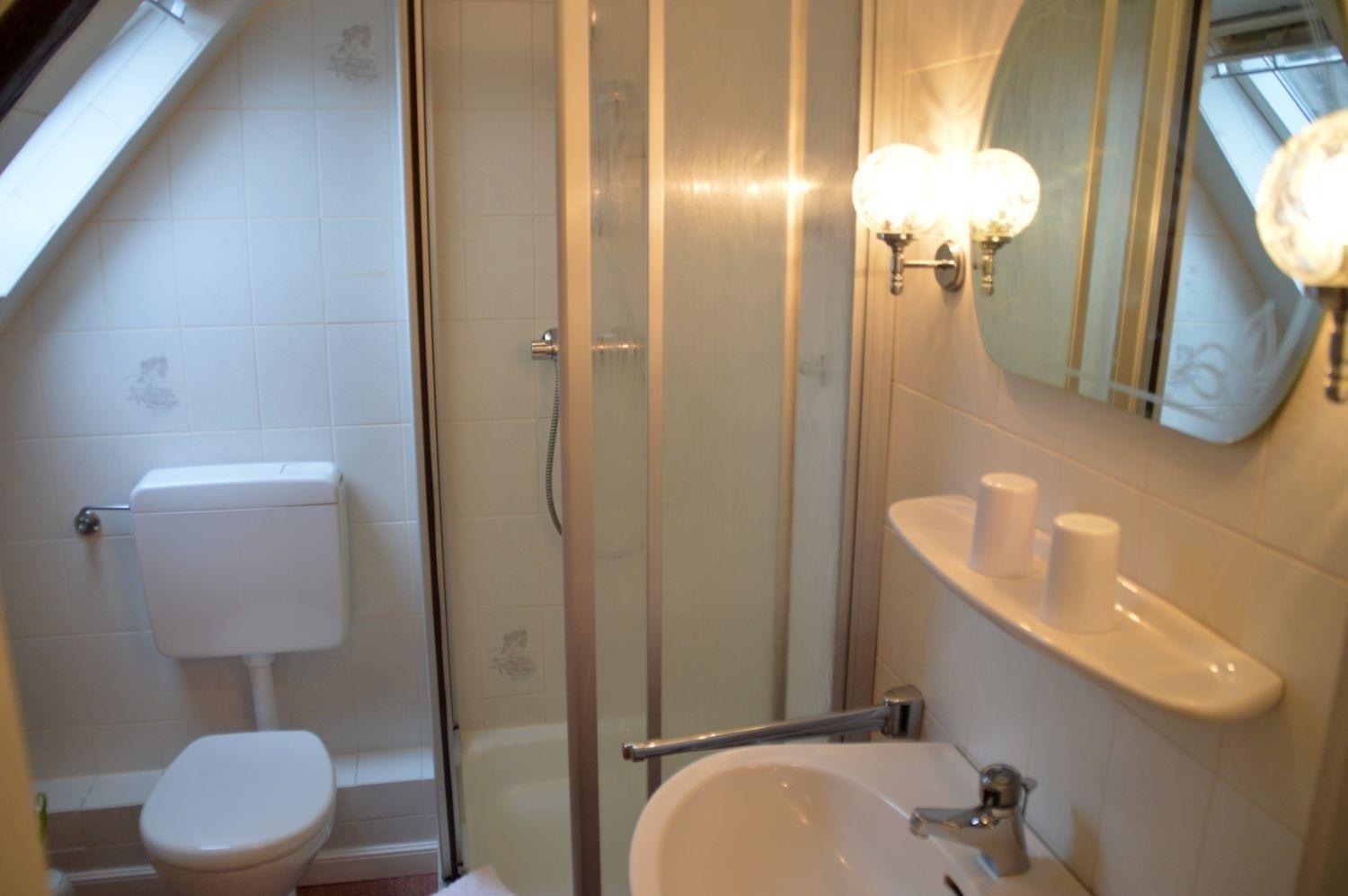 Ihre 1 Zimmer Ferienwohnung befindet sich im 1. Obergschoss. Das helle und freundliche Wohn- & Schlafzimmer hat Zugang zu Ihrem eigenen Südbalkon. Der Wohnbereich mit seinen gemütlichen Ohrensesseln, Flachbild-SAT-TV, und Radio runden das Bild ab. Wohn-/Schlafzimmer ist mit einem Doppelbett ausgestattet. Eine moderne Küchenzeile (komplett ausgestattet) und das Badezimmer mit Duche/WC gehören ebenfalls zur Ausstattung. Eine Unterstellmöglichkeit für Fahrräder ist vorhanden. Alle Fenster der Ferienwohnung sind mit Doppelverglasung(Isolierglas) ausgestattet. Waschmaschine und Trockner stehen Ihnen gegen eine Gebühr zur Verfügung.