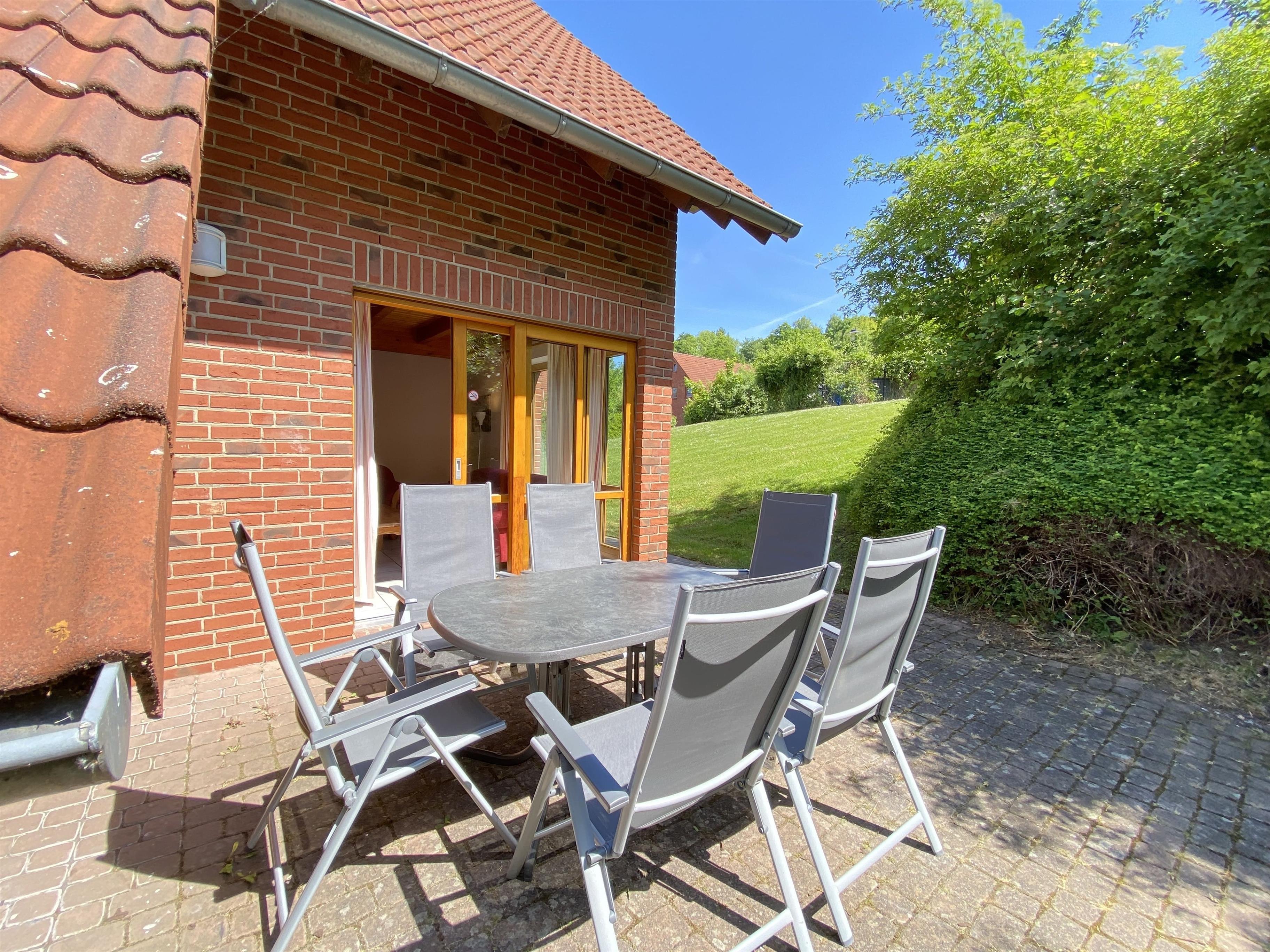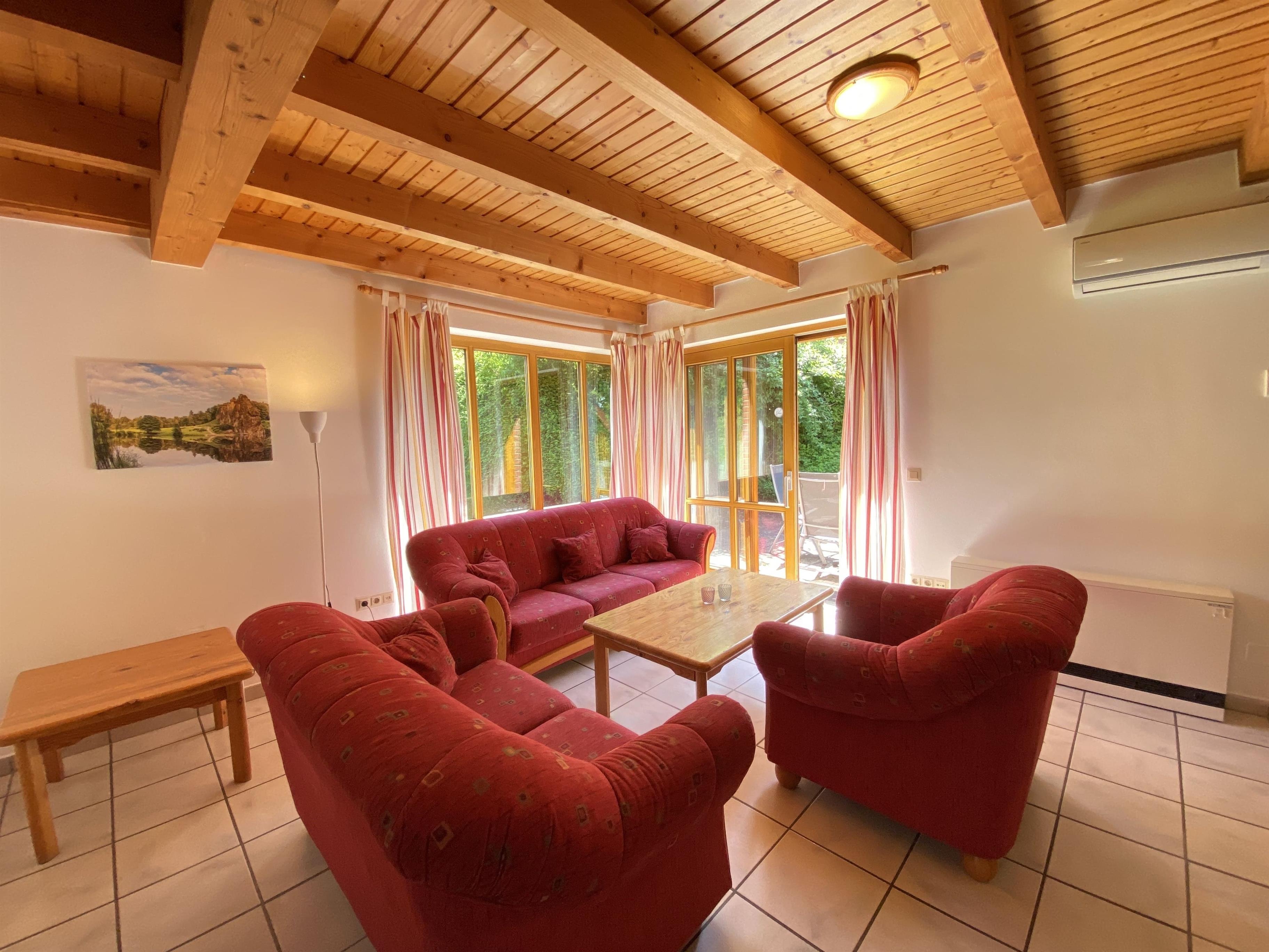 Der Park besteht aus 15 gemütlichen Doppelhäusern und einem Haupthaus mit modernen Ferienwohnungen. Dieses Ferienhaus (Haus Nr. 27) bietet Platz für 7 Personen und überzeugt durch großzügige, helle Räume, einen eigenen Eingang, eine Terrasse mit Grill sowie einen Kaminofen für gemütliche Abende. Die voll ausgestattete Küche mit Spülmaschine und der zentrale Esstisch sorgen für Komfort und gemeinsame Erlebnisse.