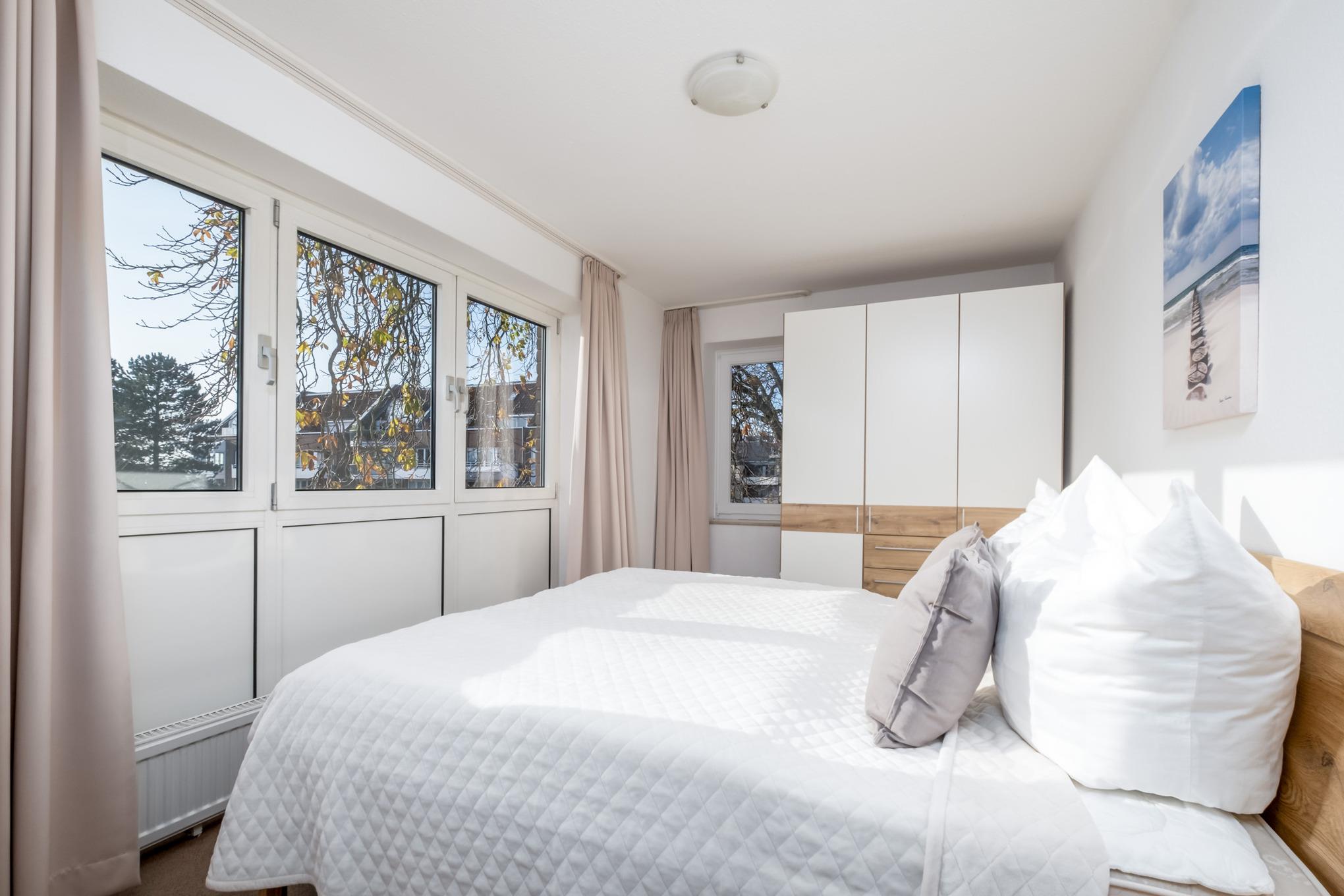Der separate Schlafraum der Ferienwohnung verfügt über ein Doppelbett (2 x 90 cm x 200 cm).