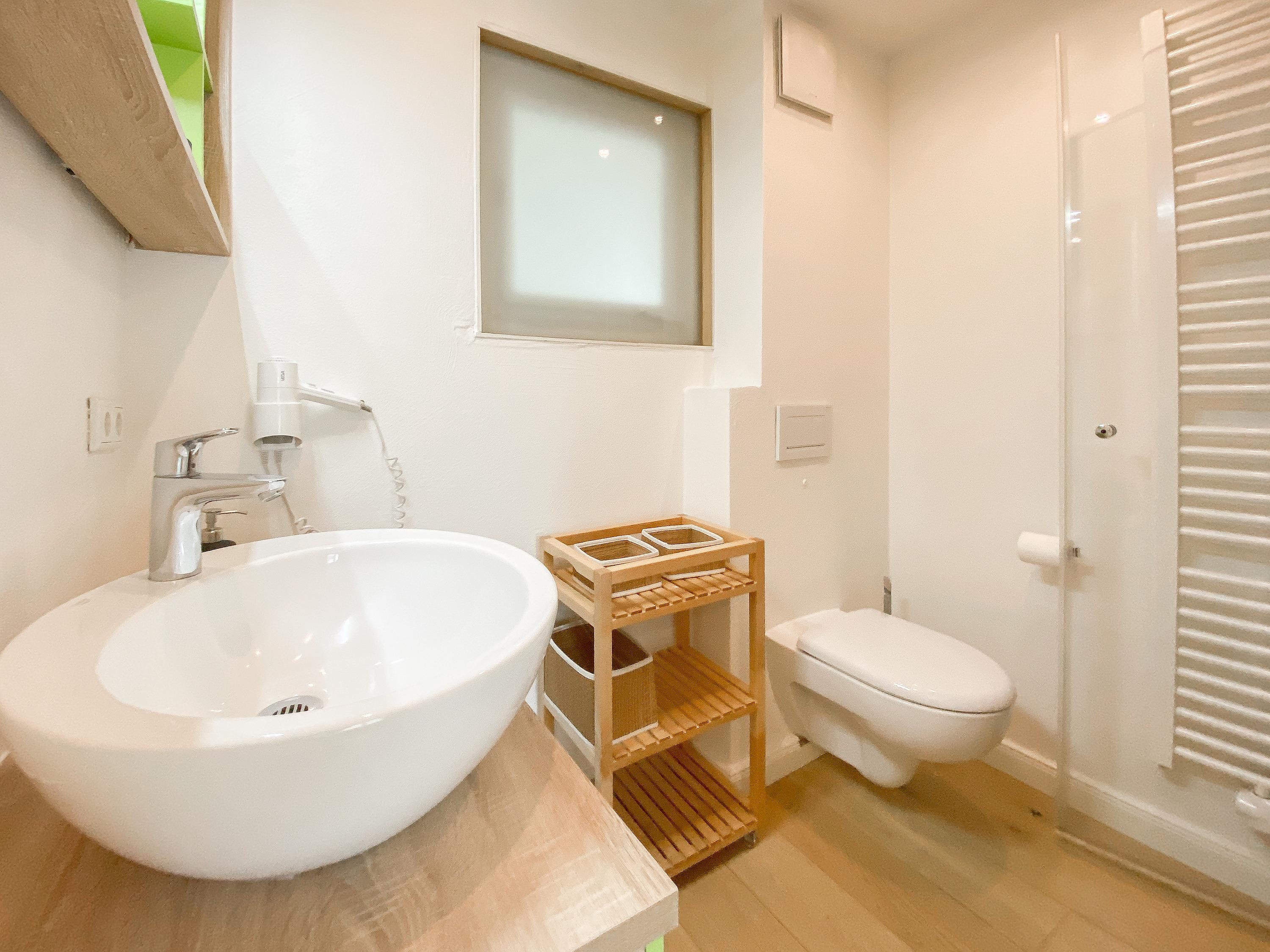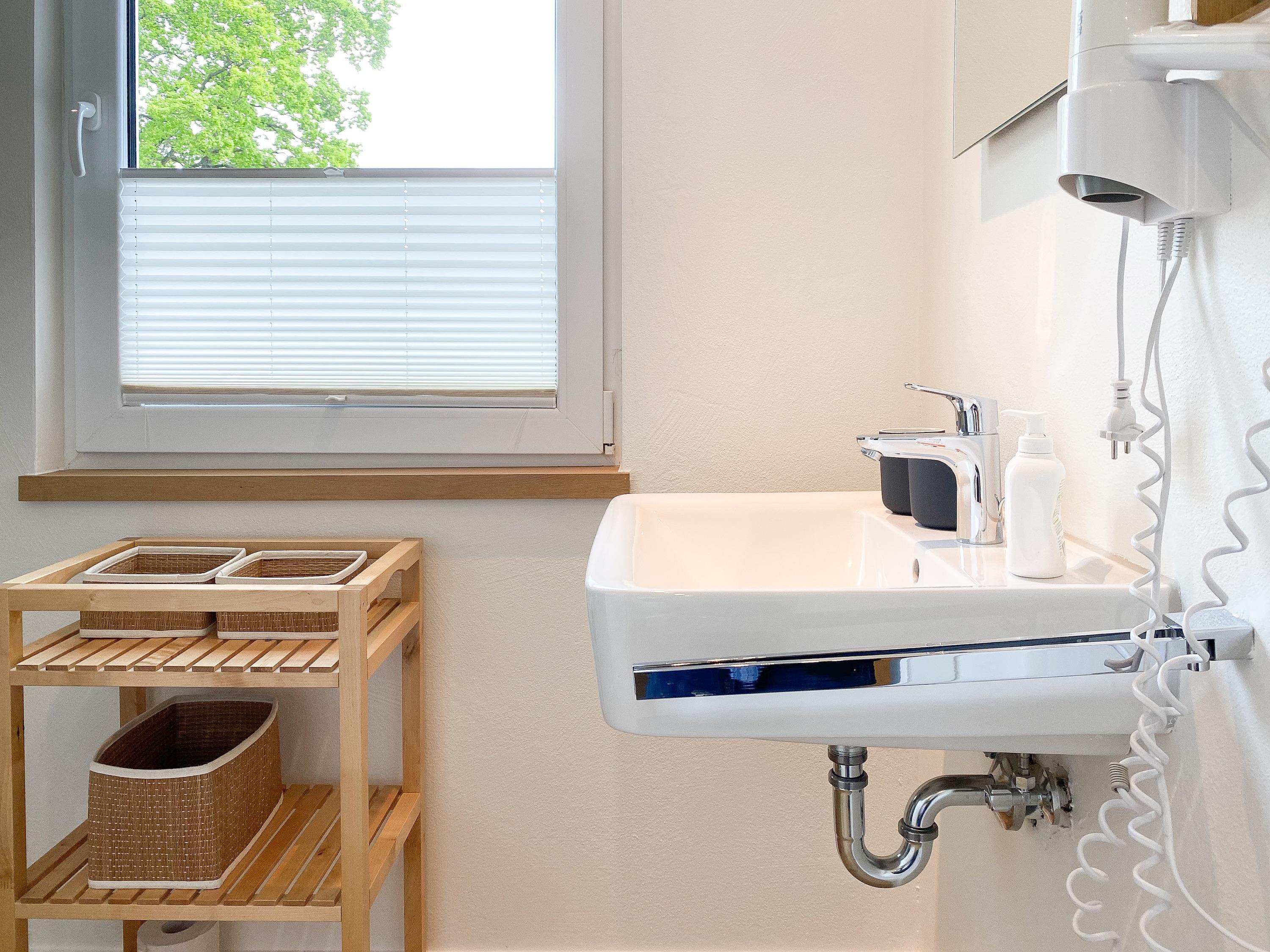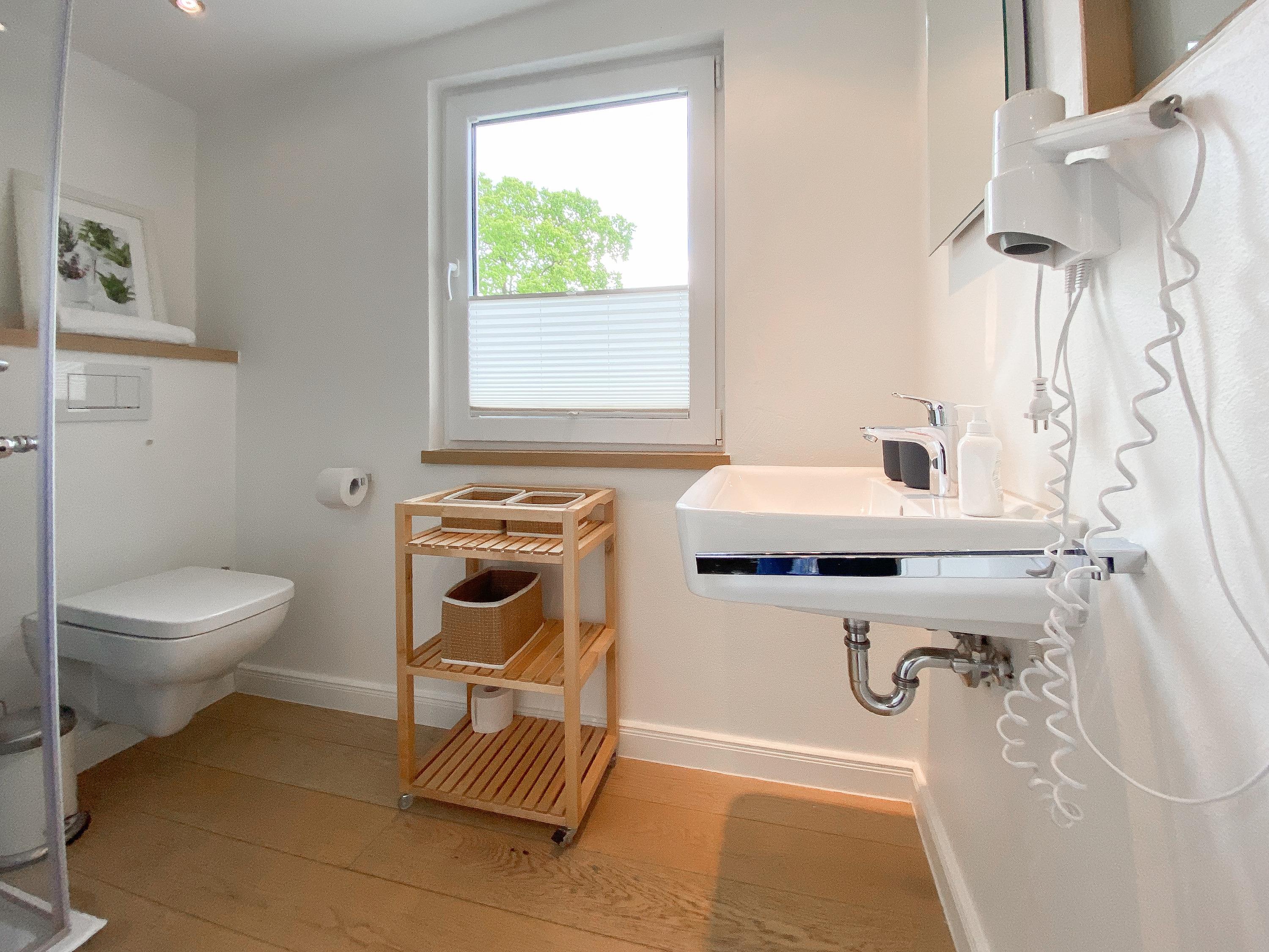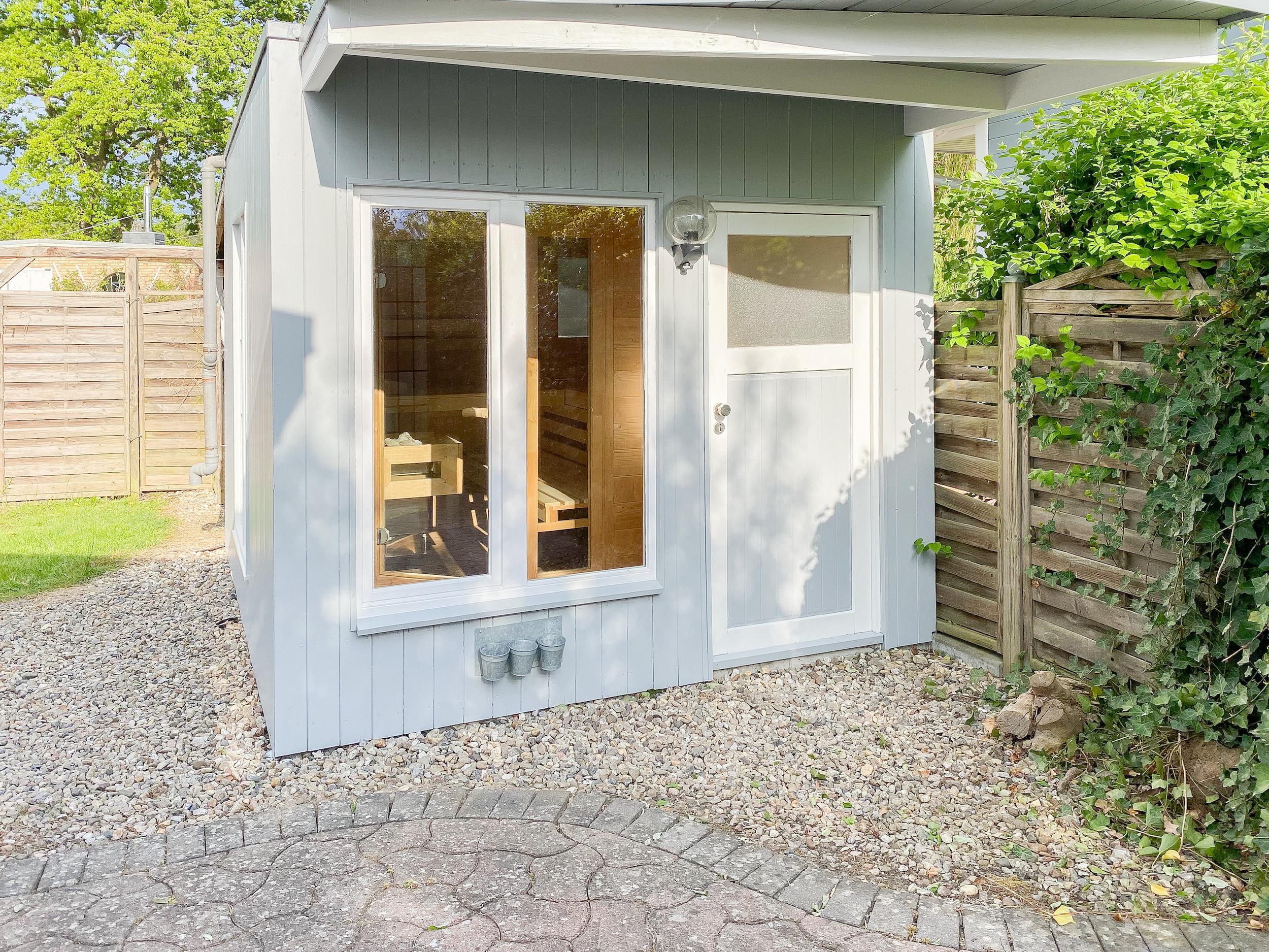 Waschmaschine und Trockner sind im separaten Waschraum untergebracht, der vom Garten zu erreichen ist. Zwei Parkplätze befinden sich auf dem Grundstück. Eine Fahrradunterstellmöglichkeit befindet sich hinter dem Saunahaus.