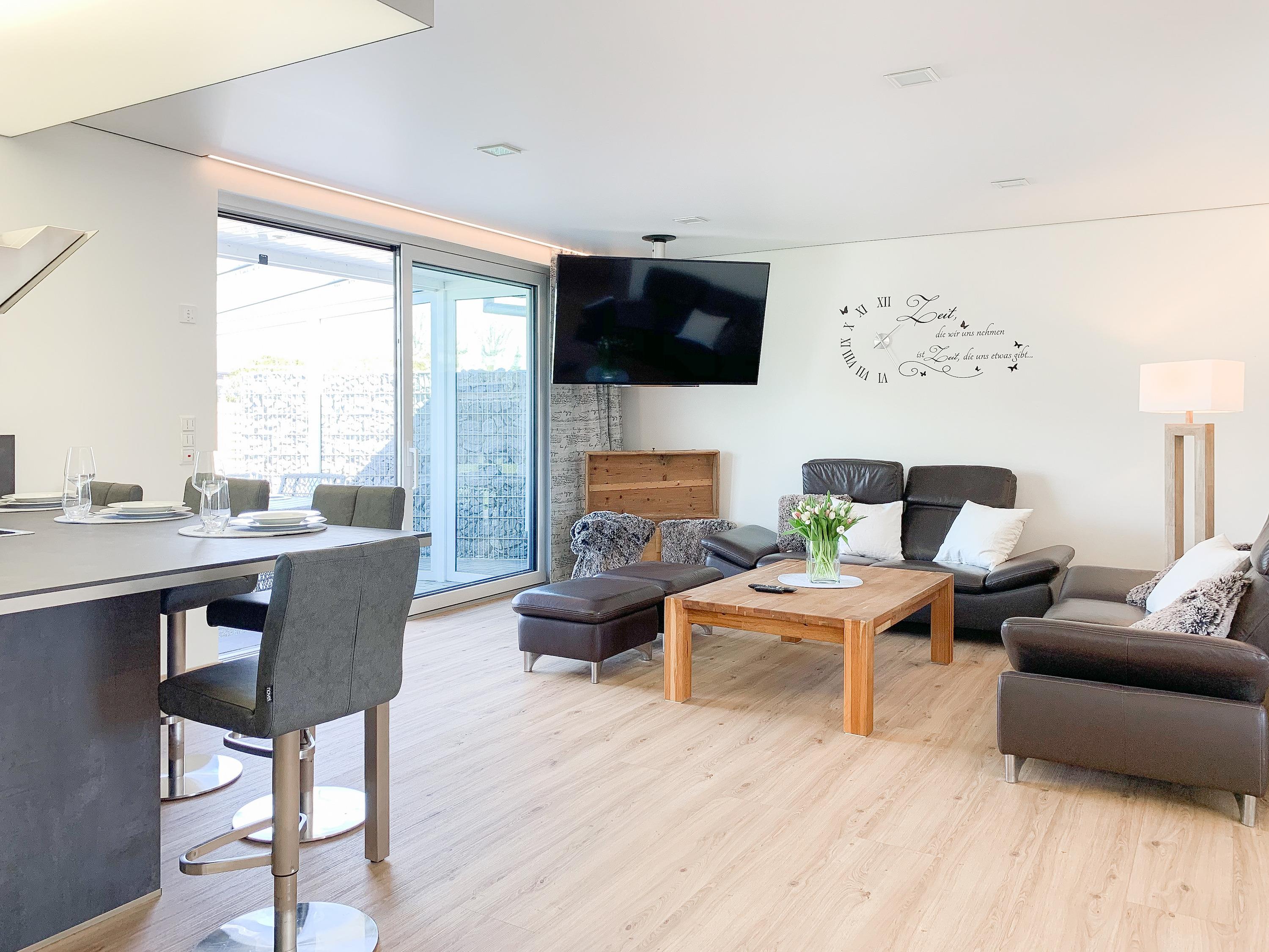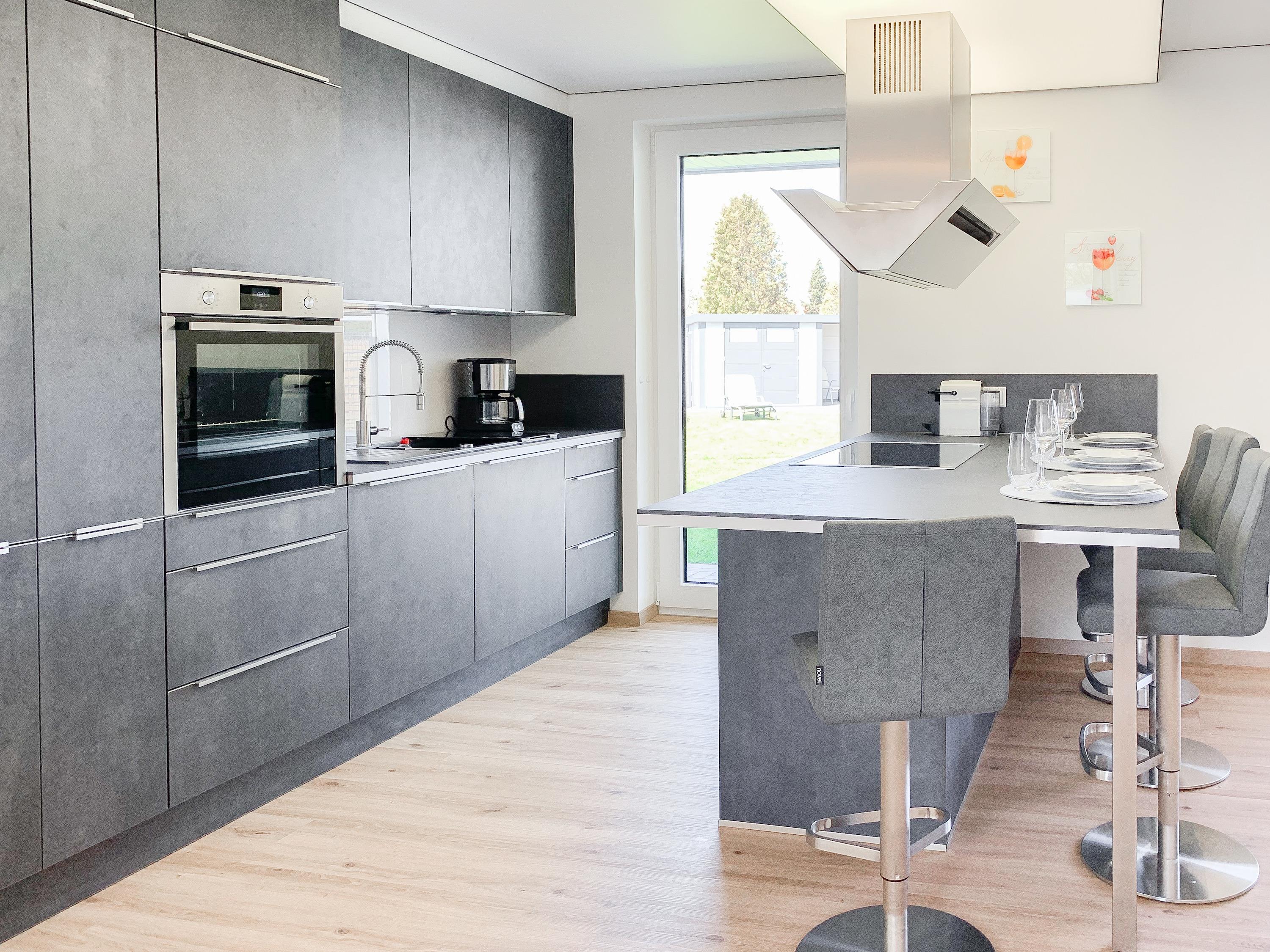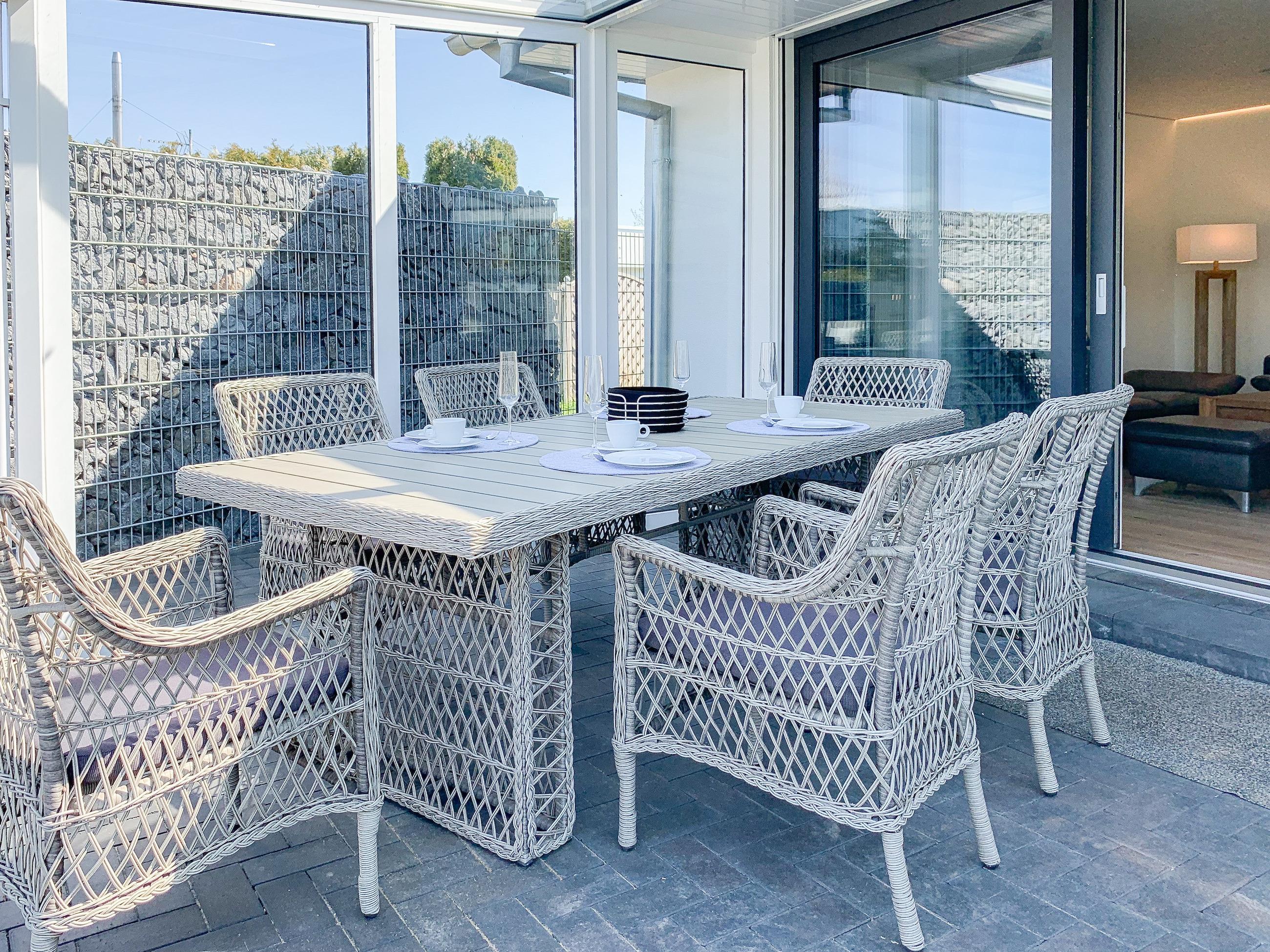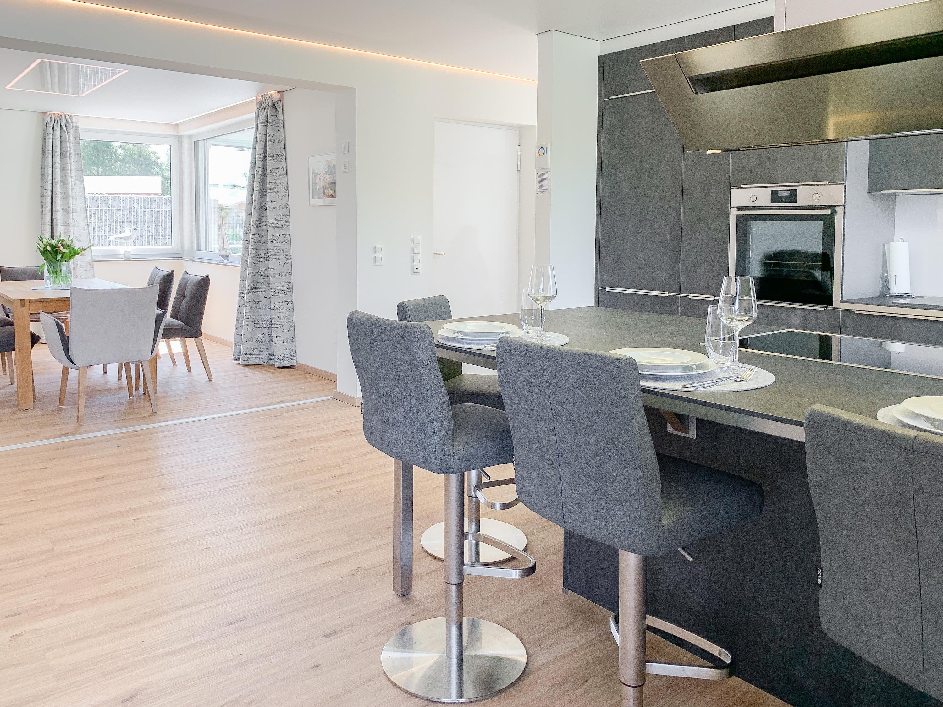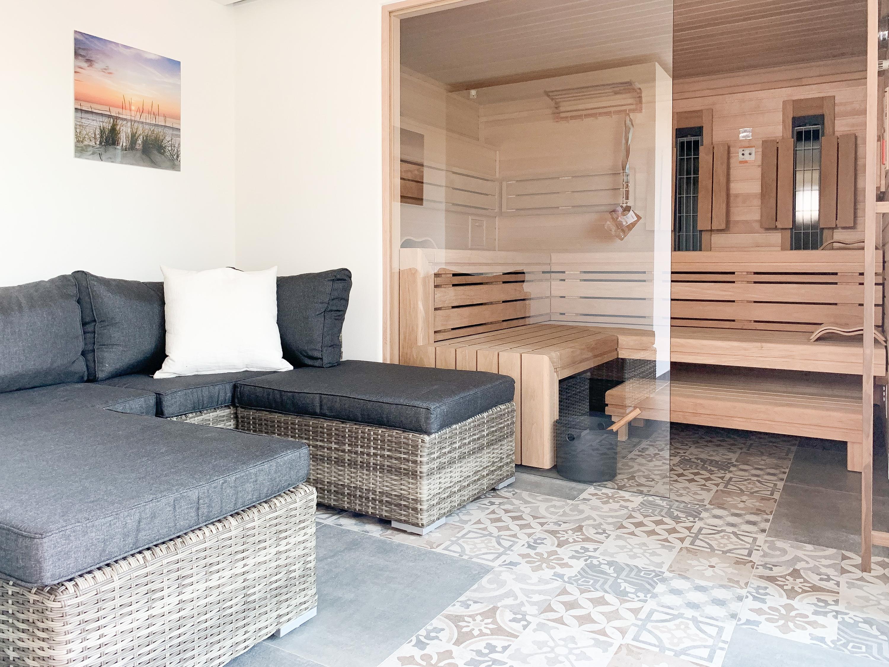 Das Ferienhaus Wolke 7 bietet auf 130 qm zeitgemäßen Luxus auf einer Ebene. Die hochwertige Ausstattung, das großzügige, umzäunte Gartengrundstück und der traumhafte Wellnessbereich mit großer Sauna und Gartenzugang, machen das Haus zu etwas Besonderem. Es gibt zwei geräumige Schlafzimmer mit Doppelbetten, TV, Gartenzugang und zwei Duschbädern ensuite. In einem der Bäder ist der Saunabereich integriert. Es stehen zwei Zustellbetten und ein weiteres Bad mit Badewanne und integriertem Waschtrockner zur Verfügung. Mittelpunkt des Hauses bildet die top ausgestattete, großzügig angelegte Küche mit Kochinsel, Barbereich und direktem Gartenzugang. Der anschließende Wohnbereich mit vorgelagerter Terrasse und offenem Wintergarten ist ebenfalls äußerst geräumig und mit einem XXL TV und einer Bluetooth Anlage ausgestattet. WLAN steht selbstverständlich zur kostenlosen Nutzung zur Verfügung. Der Essbereich bietet ausreichend Platz für 6 Personen und läßt sich mittels zweier Schiebetüren vom Wohnbereich trennen und bietet somit eine weitere Möglichkeit zur Unterbringung der Zustellbetten.