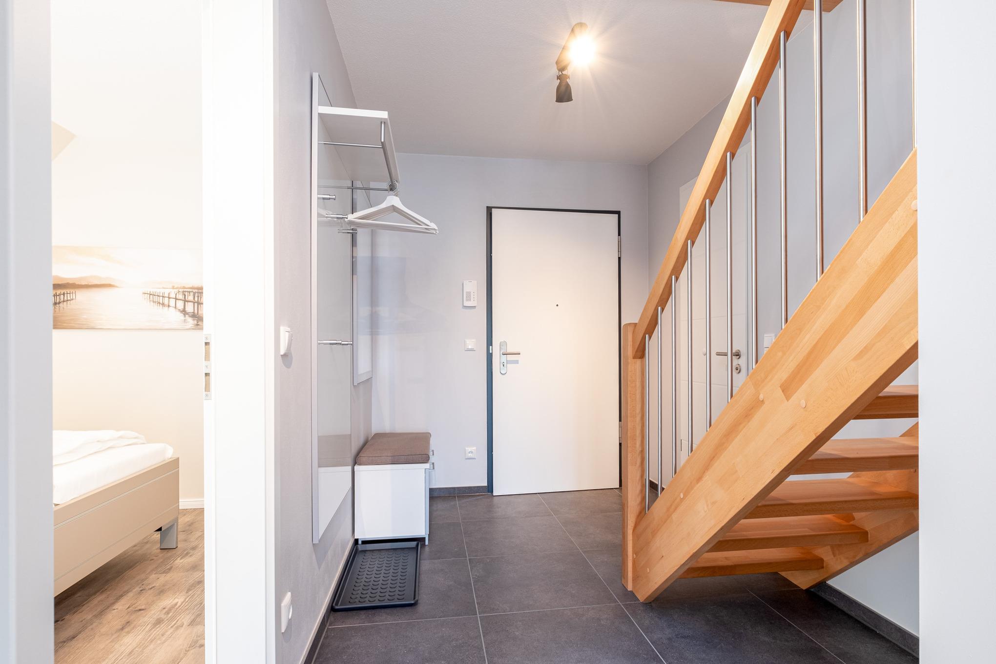 Von der Diele führt eine Treppe ins Dachgeschoss des Appartements.
