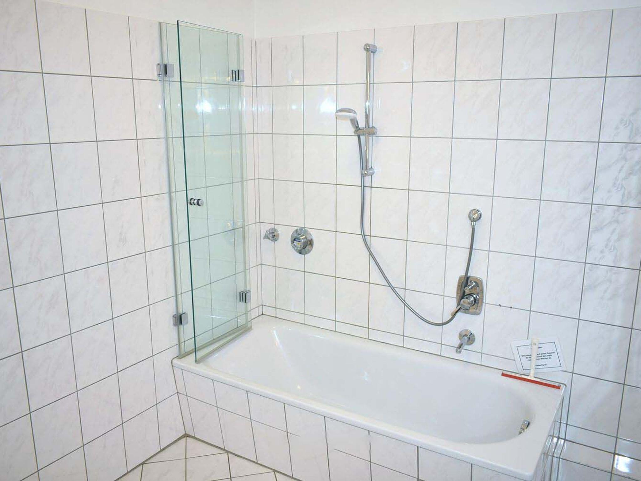Bad 1: Badewanne, Duschkabine, Spiegel, Waschbecken, Waschbecken, WC